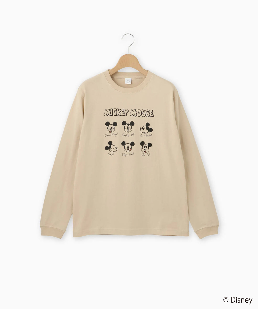 世界中で愛されているディズニーの人気キャラクター、ミッキーデザインのさまざまな表情を切り取った、遊び心たっぷりのロングTシャツ。
