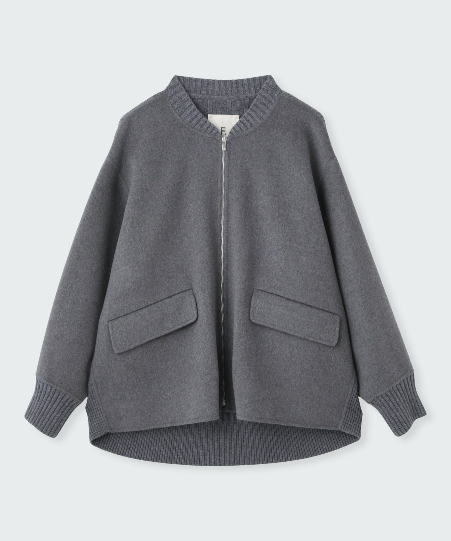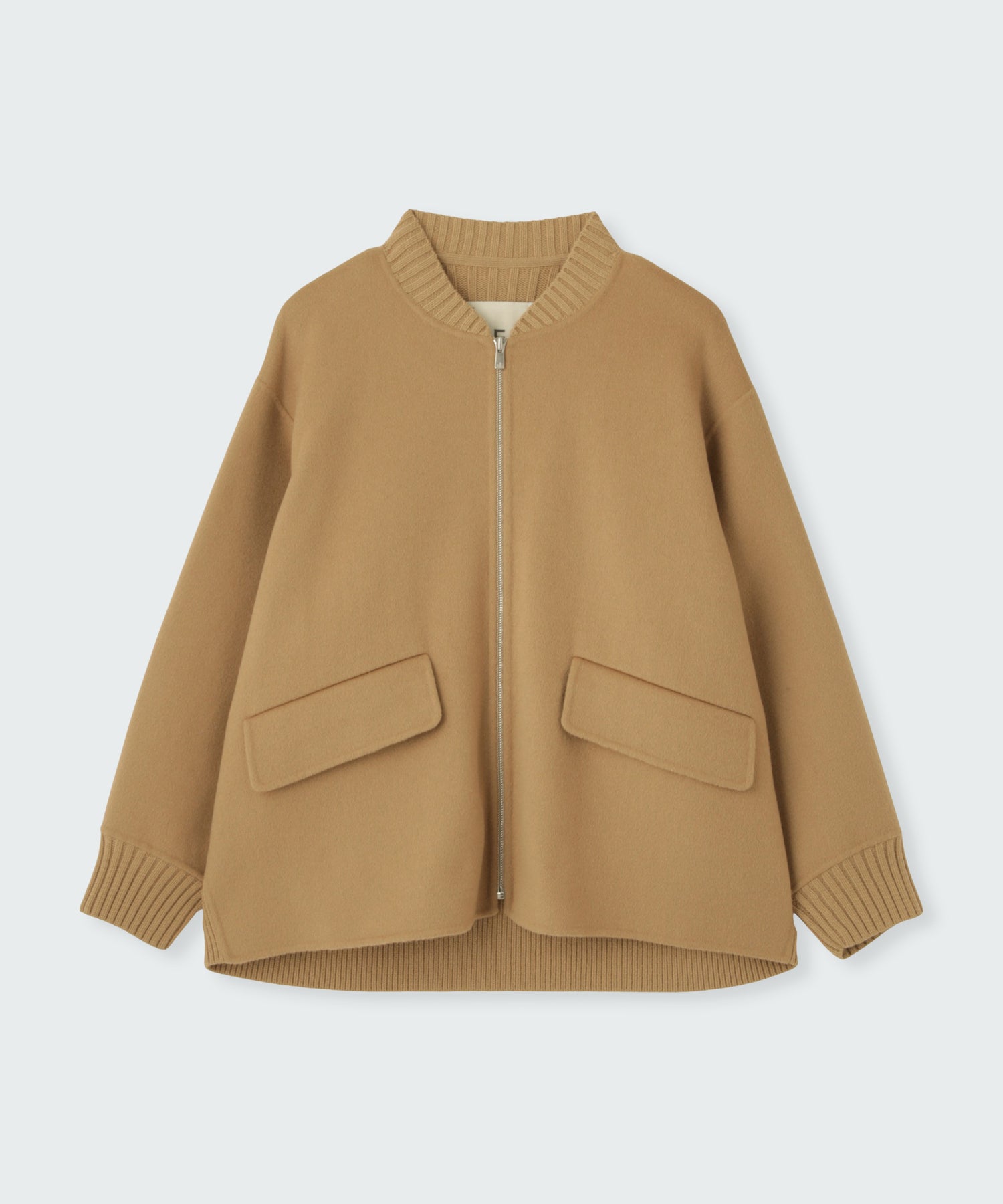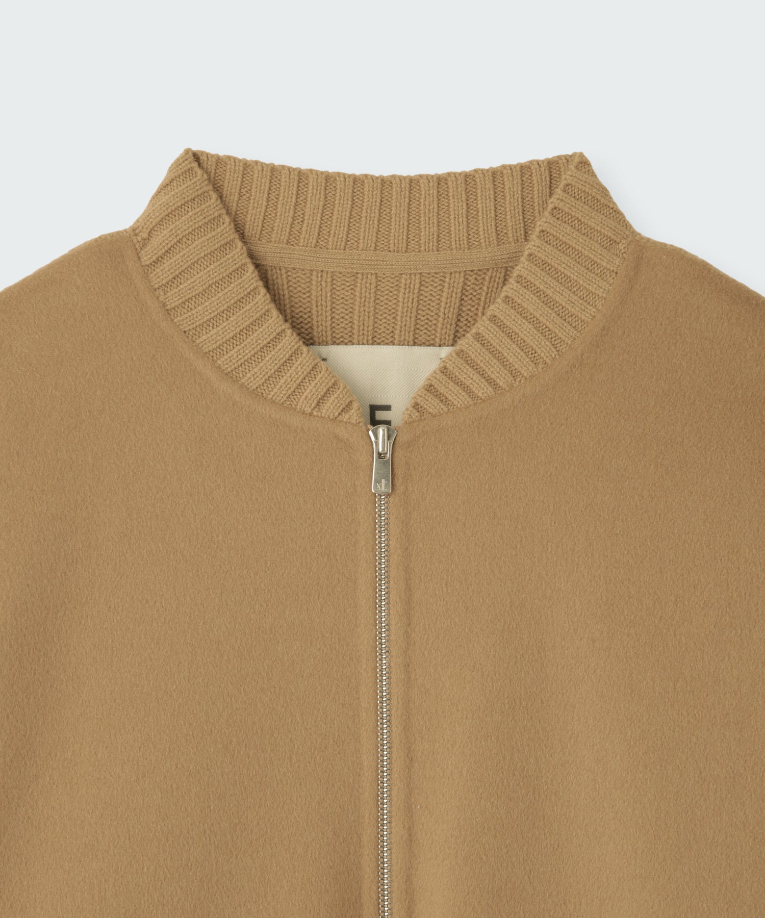 ウール×カシミヤのコート素材とローゲージリブニットをドッキングしたブルゾン。