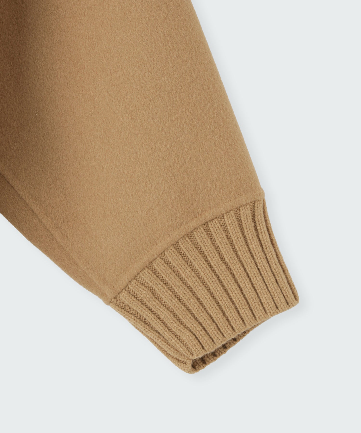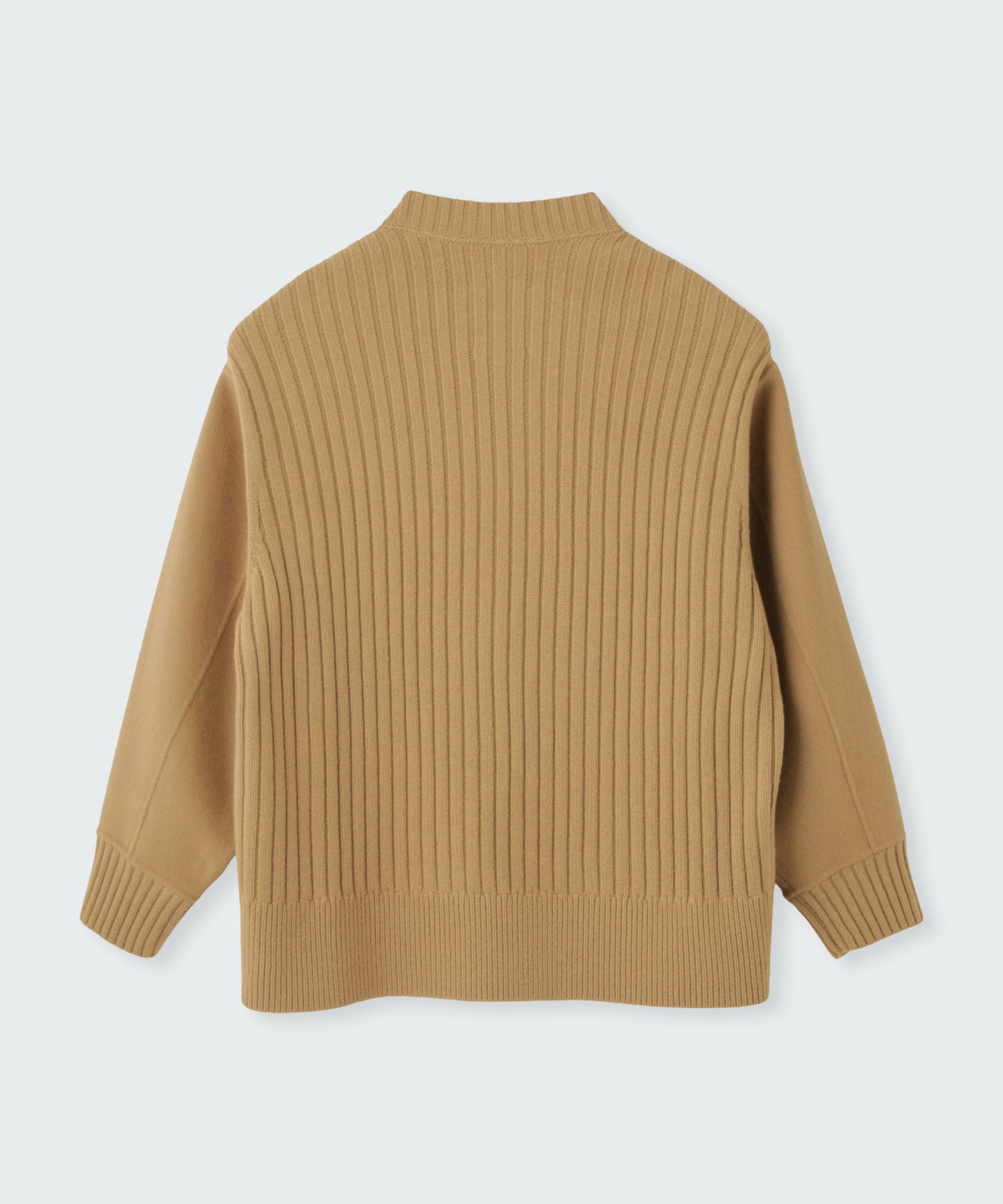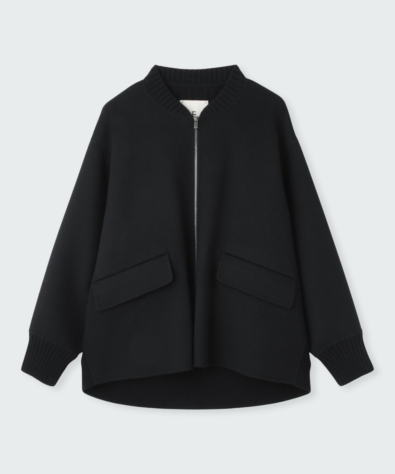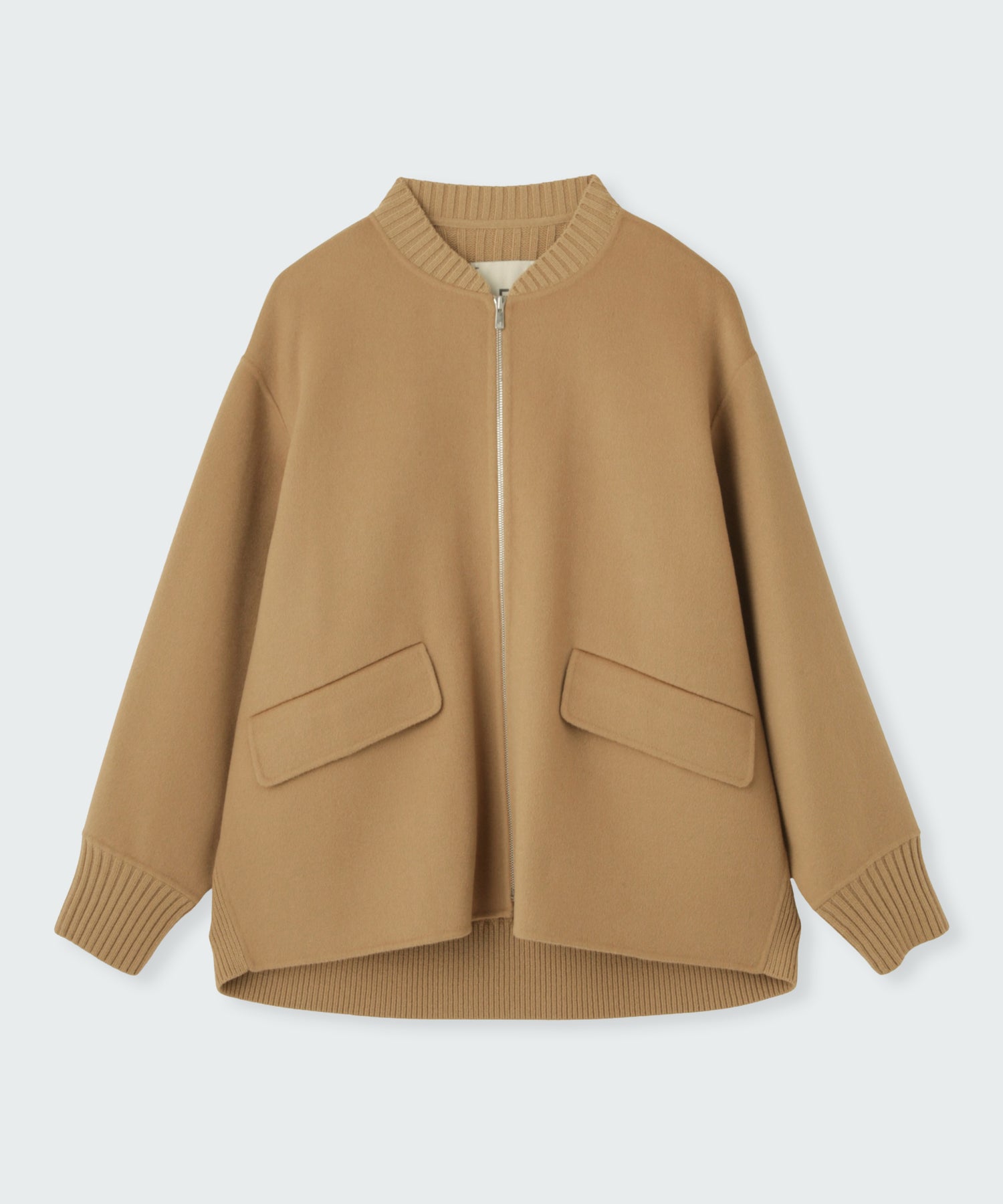 ウール×カシミヤのコート素材とローゲージリブニットをドッキングしたブルゾン。