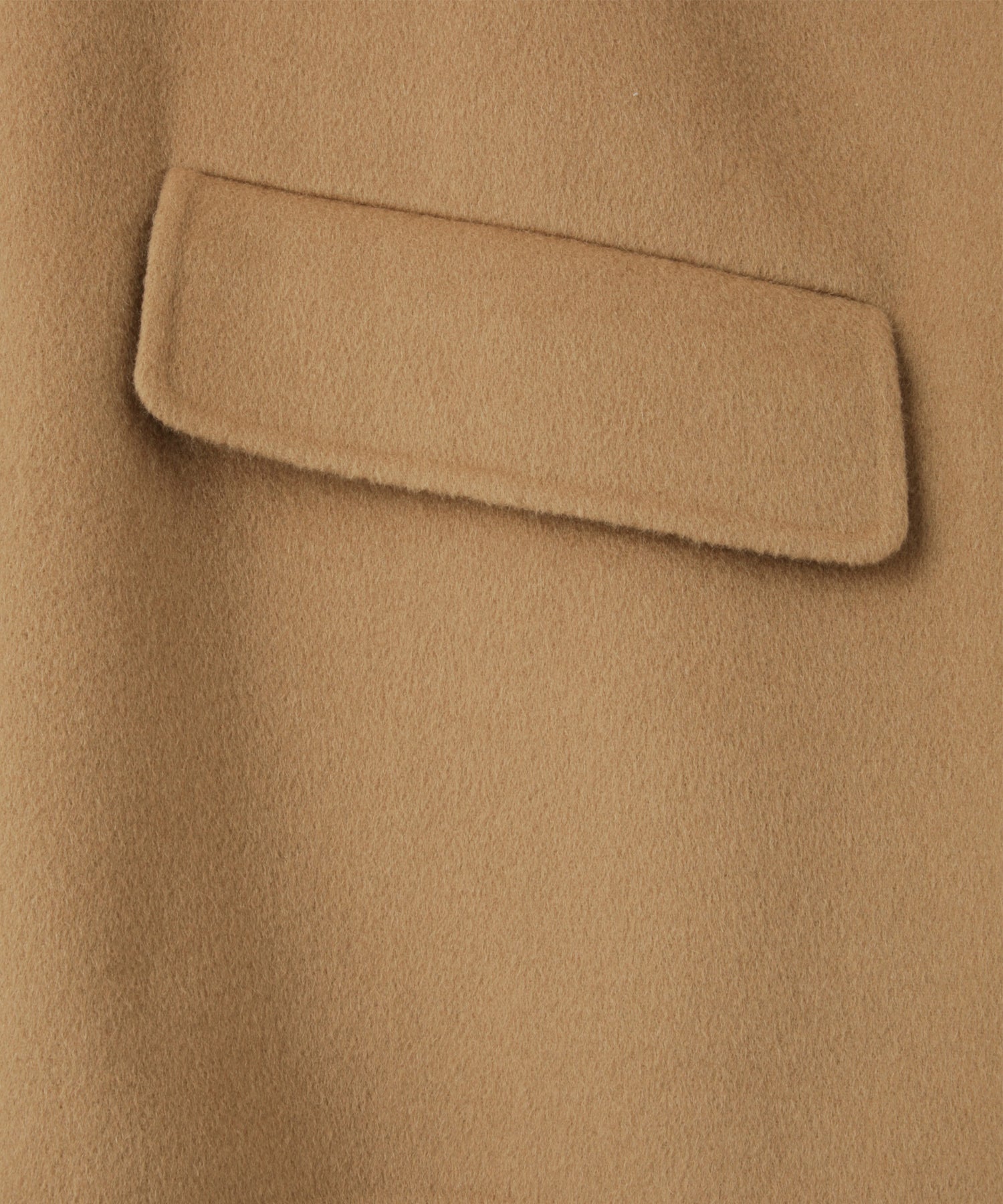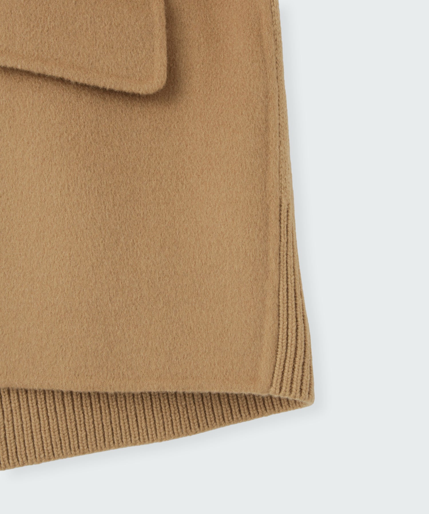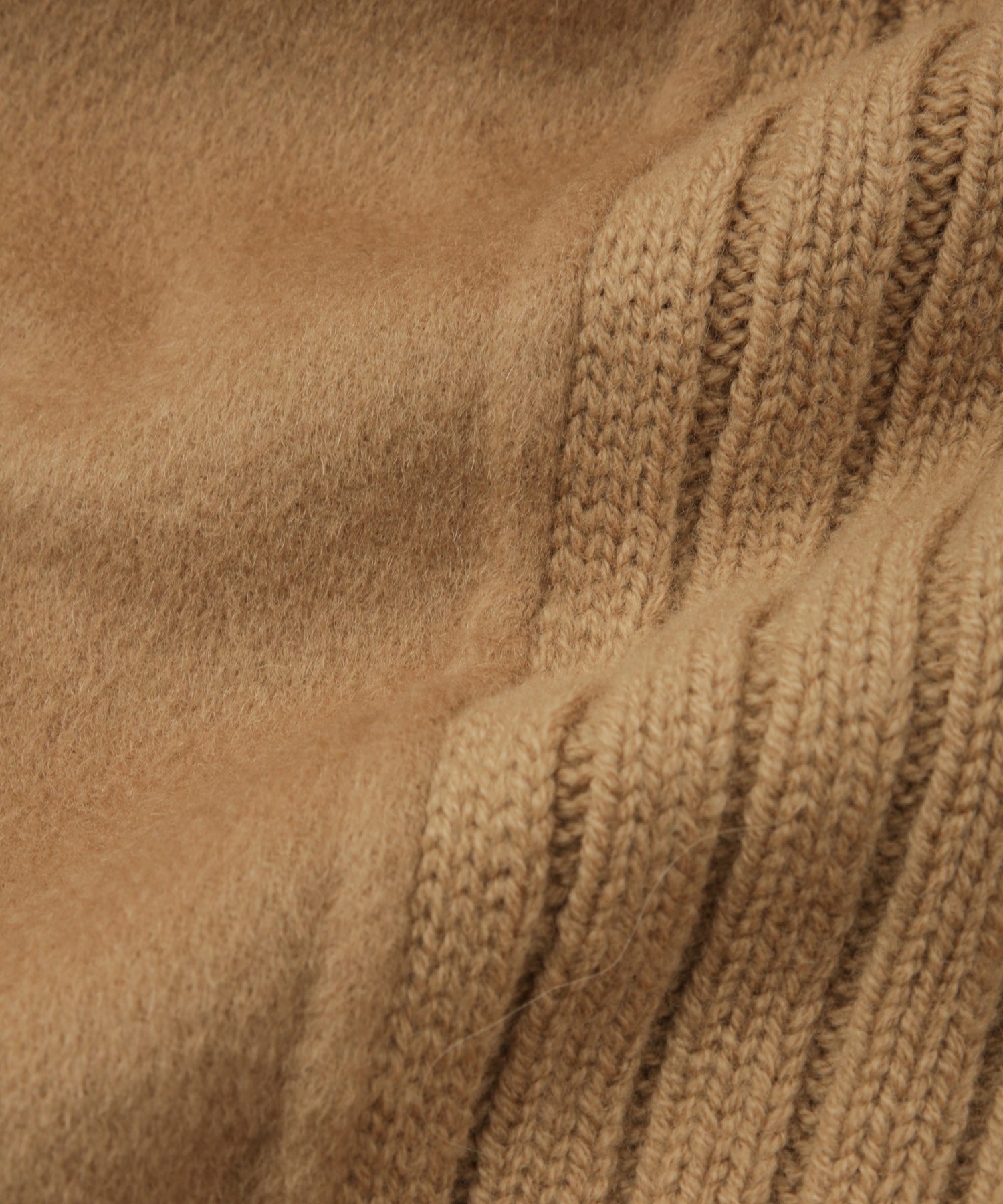 ウールとカシミヤの高品質コート素材と、ローゲージリブニットのドッキング素材。