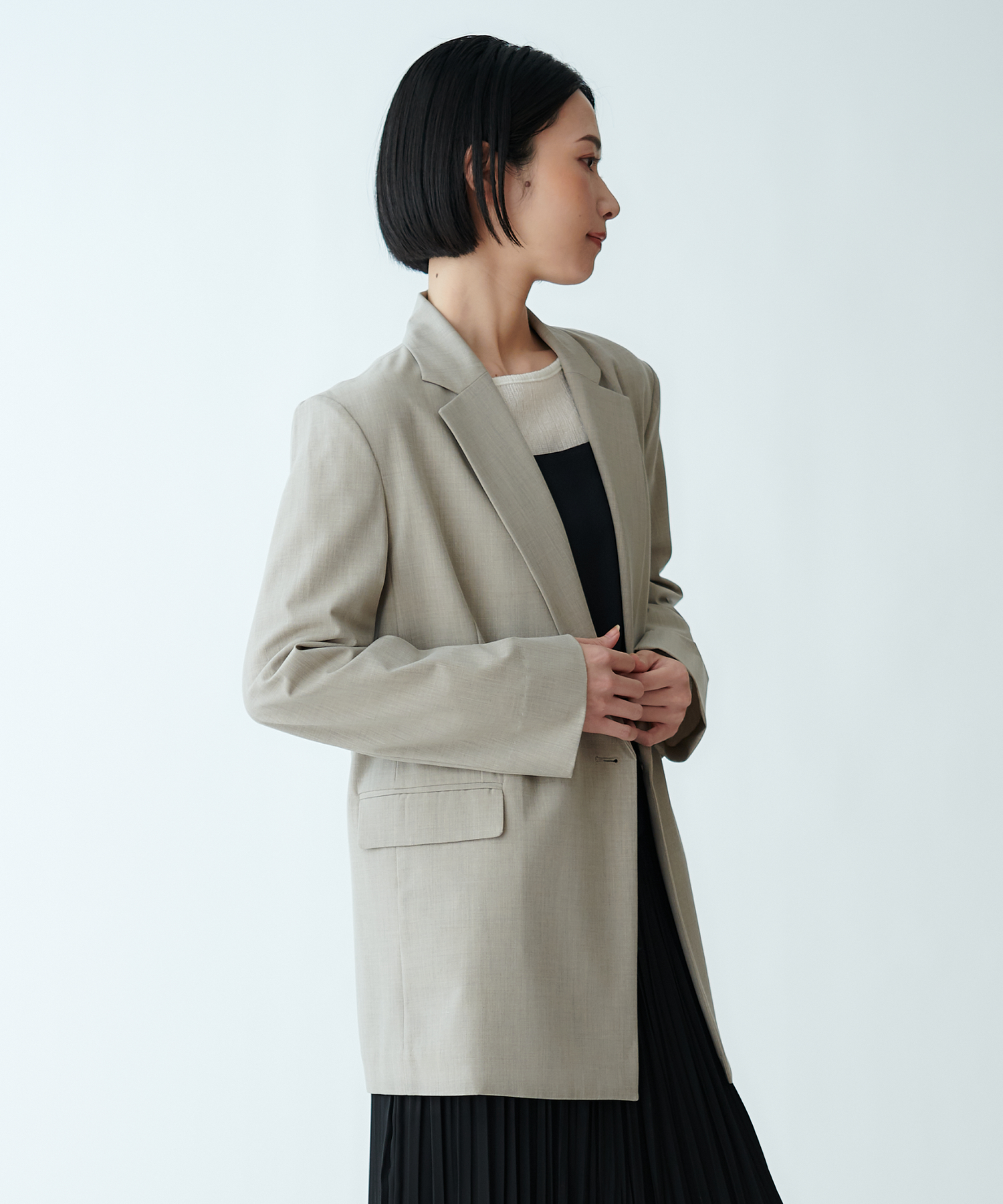 軽やかな素材感でさらりと羽織れるため、オンにもオフにも活躍。
