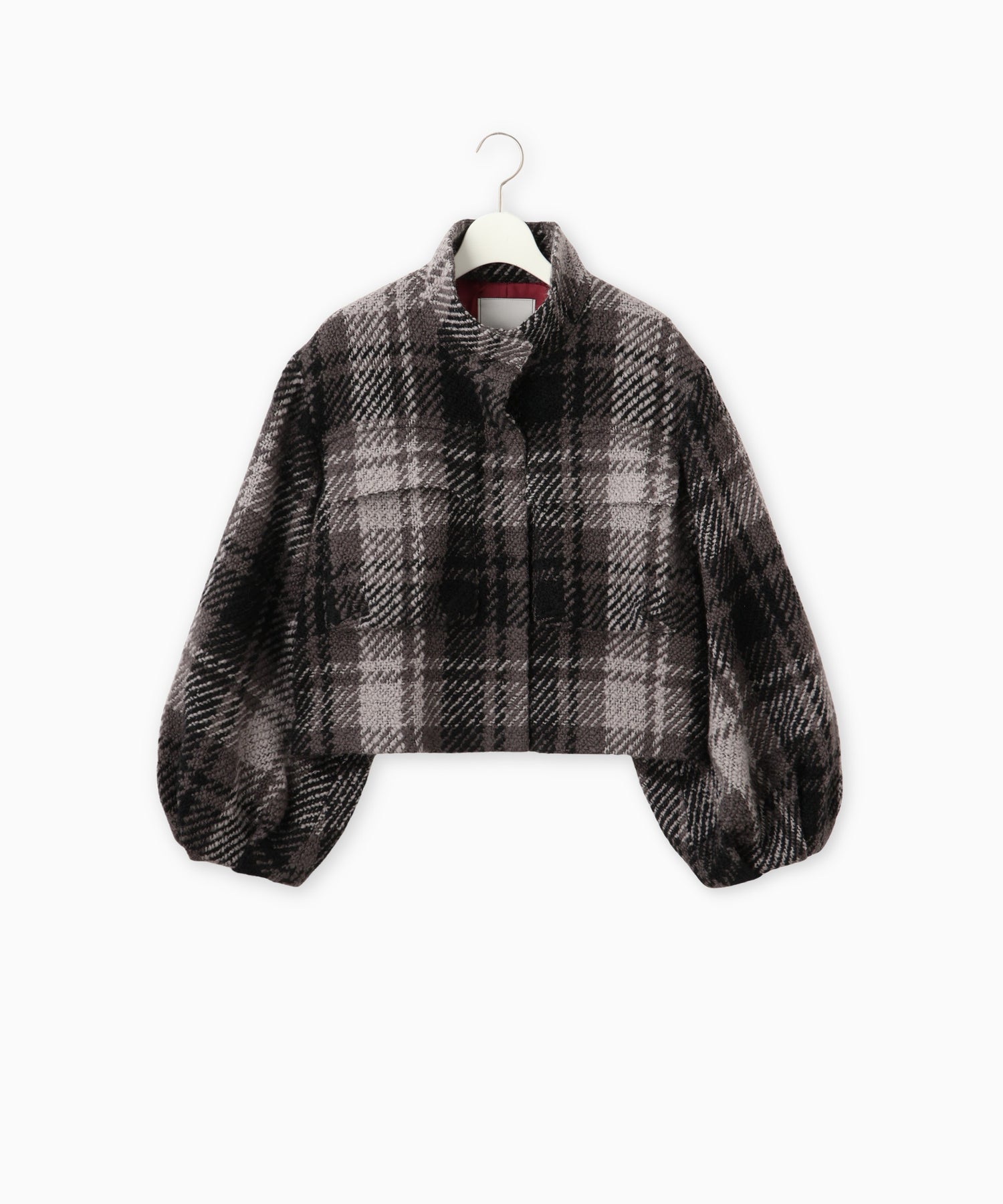 スタンドカラーが顔まわりをシャープに見せ、ショート丈ならではの軽さとスタイリッシュな雰囲気を兼ね備えたアウター。