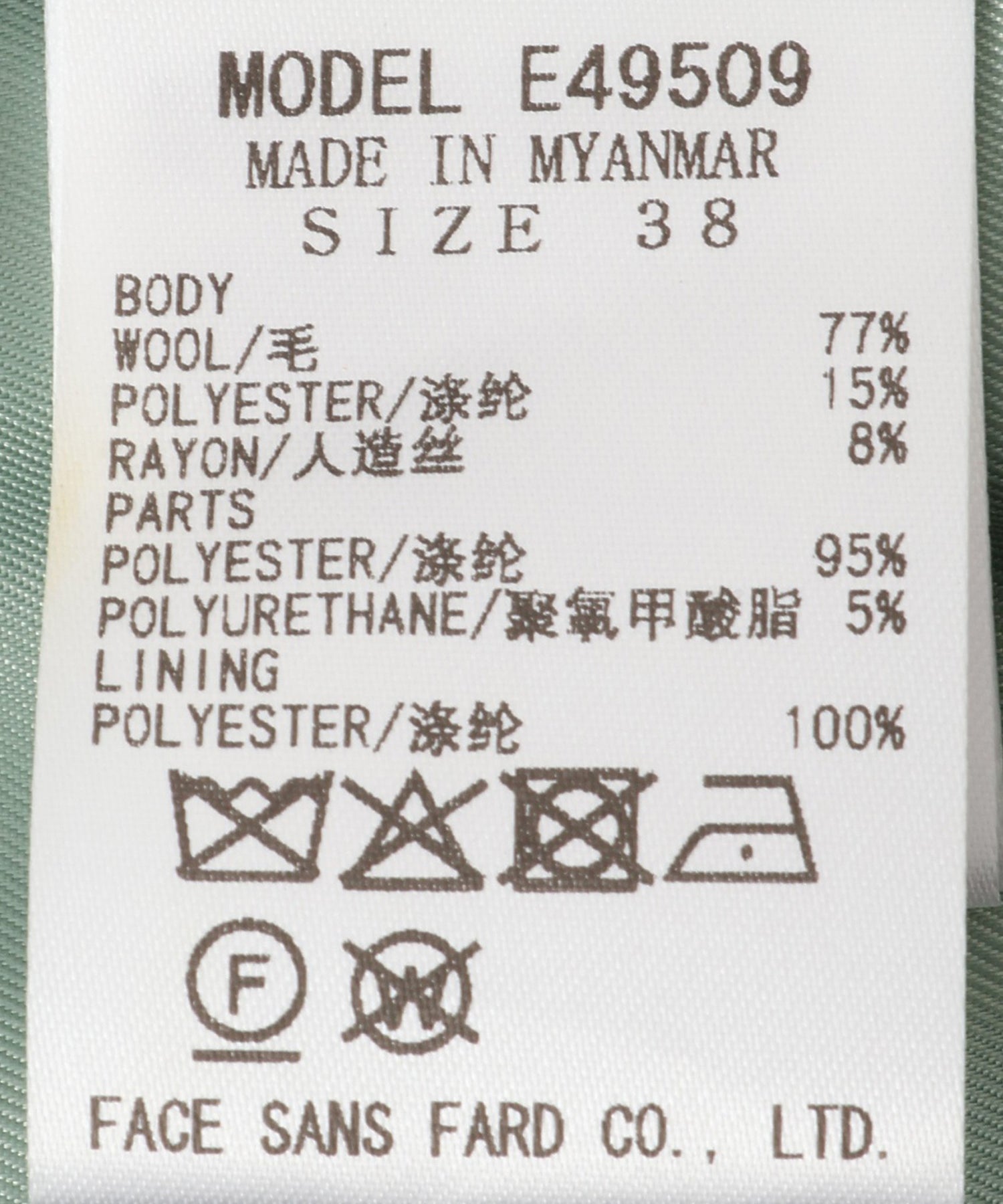 【素材】表地:毛77% ポリエステル15% レーヨン8%
