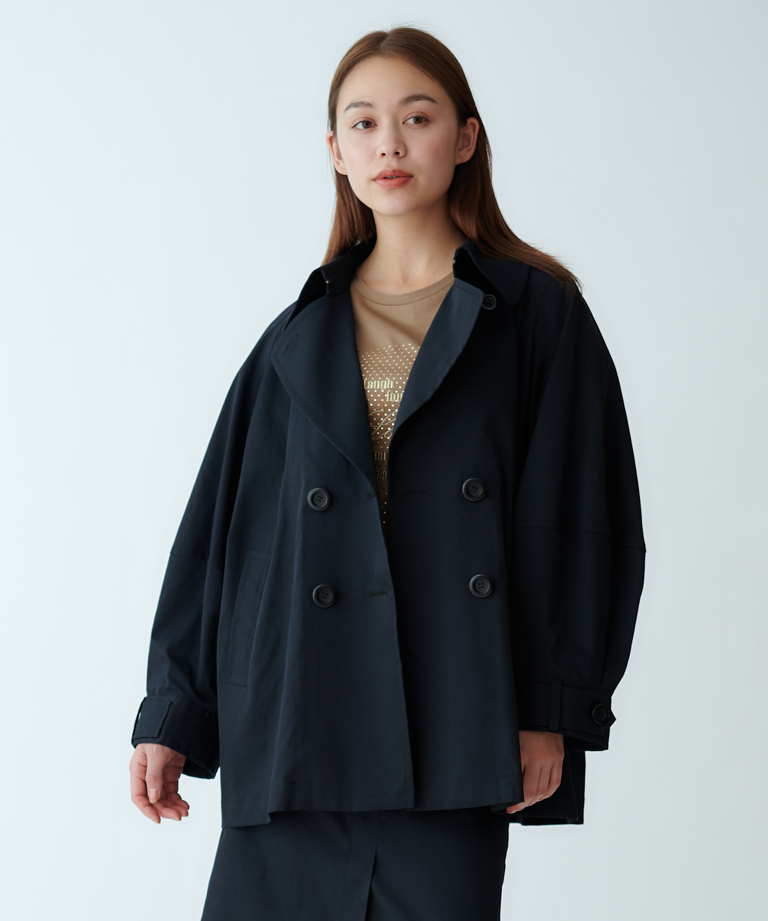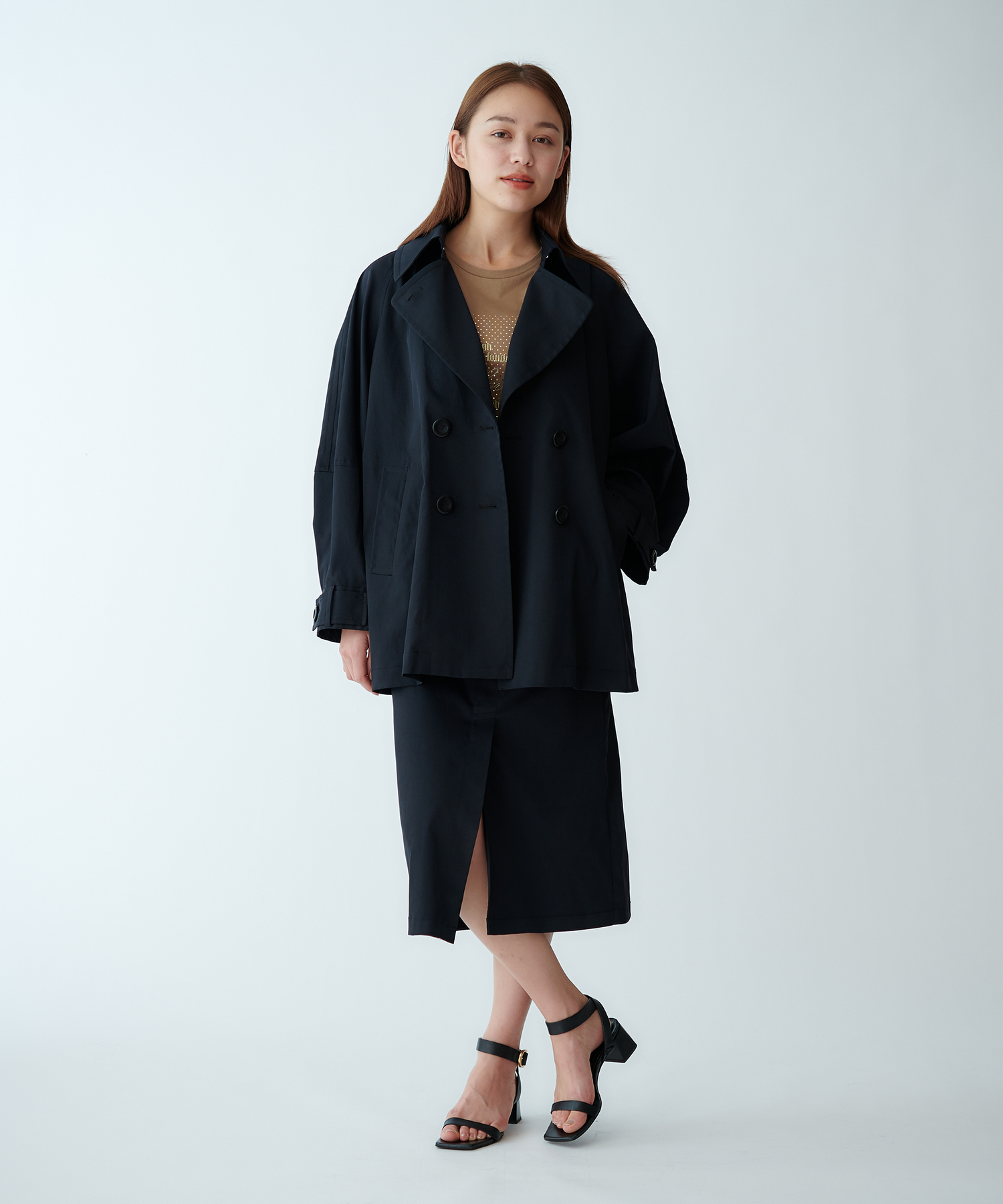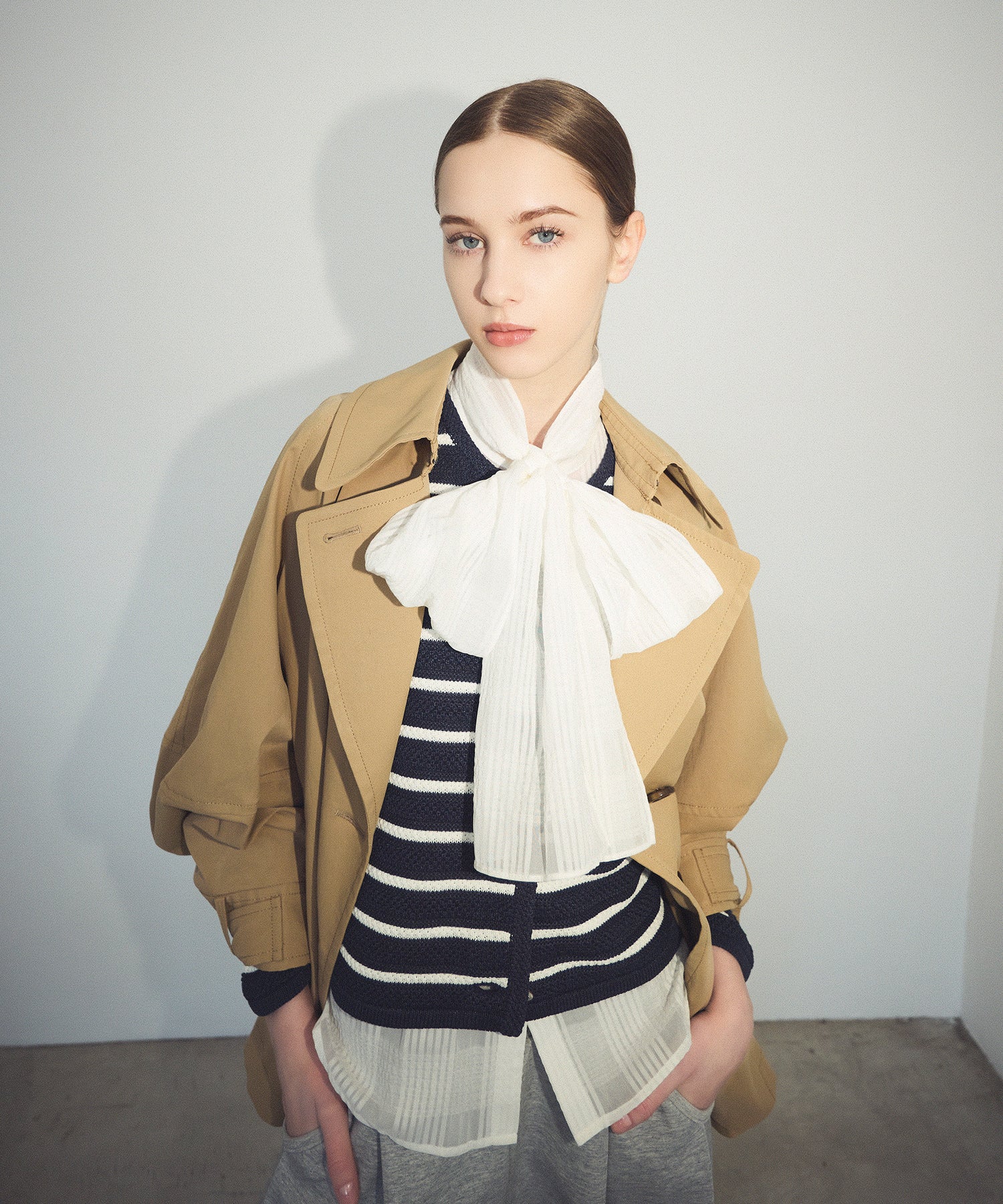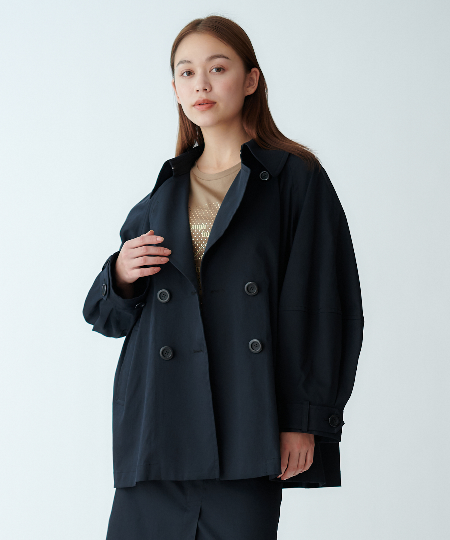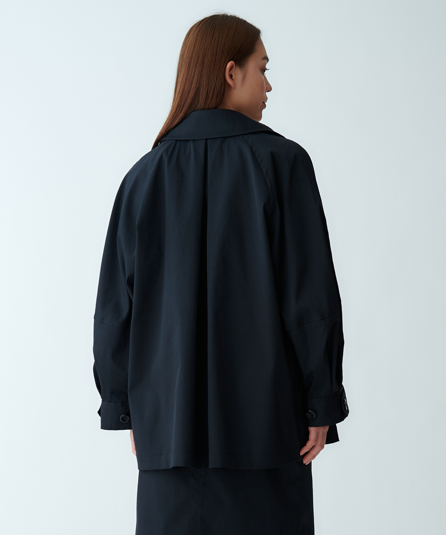 トレンチコートのディテールをベースに、袖にタックを入れてボリュームを持たせた一枚。