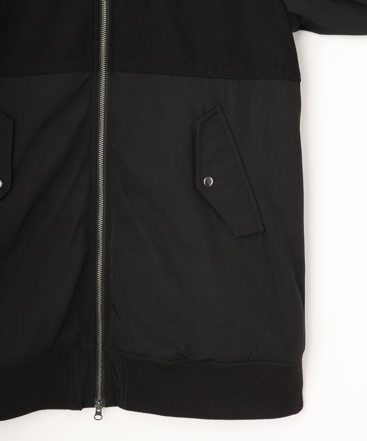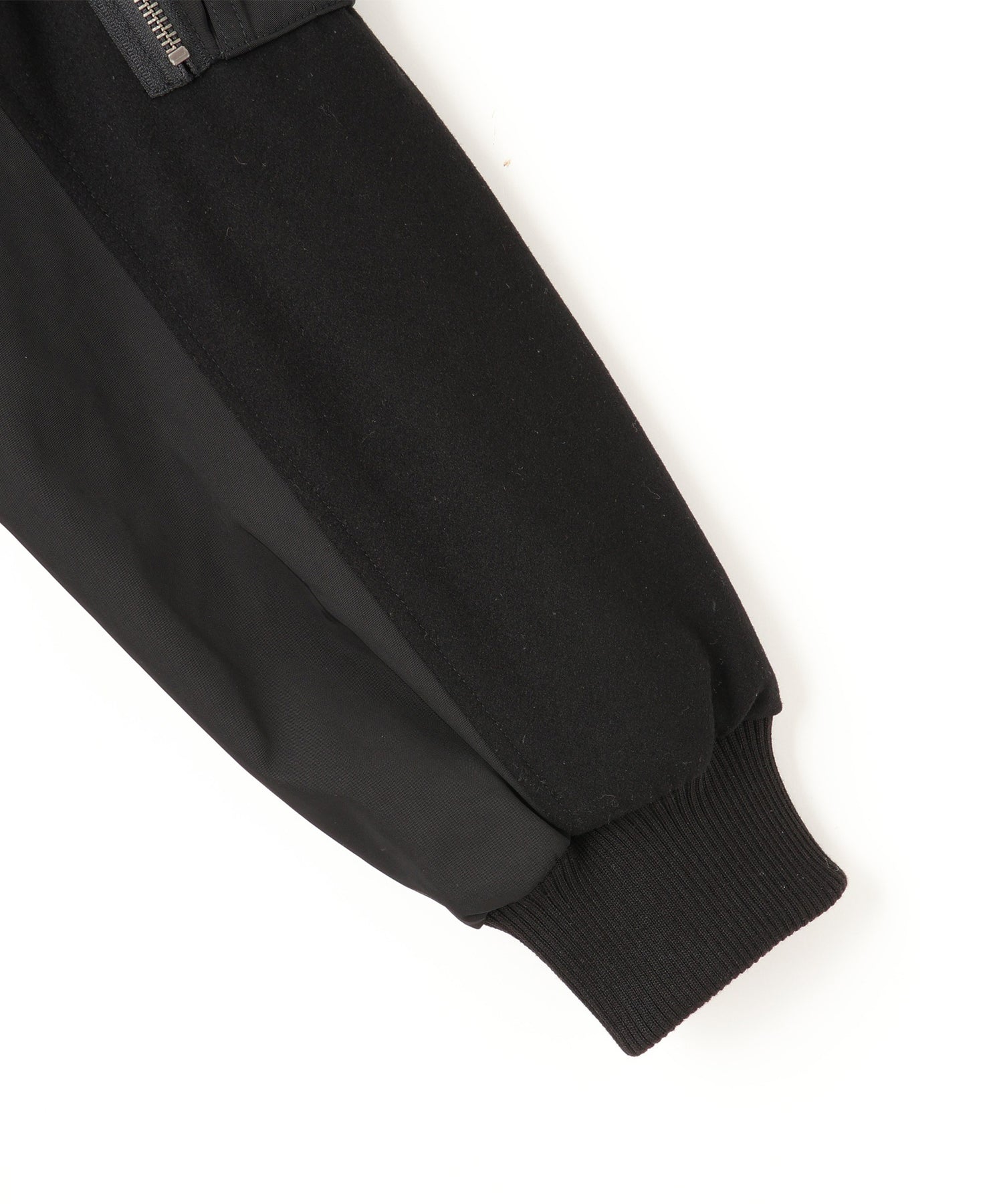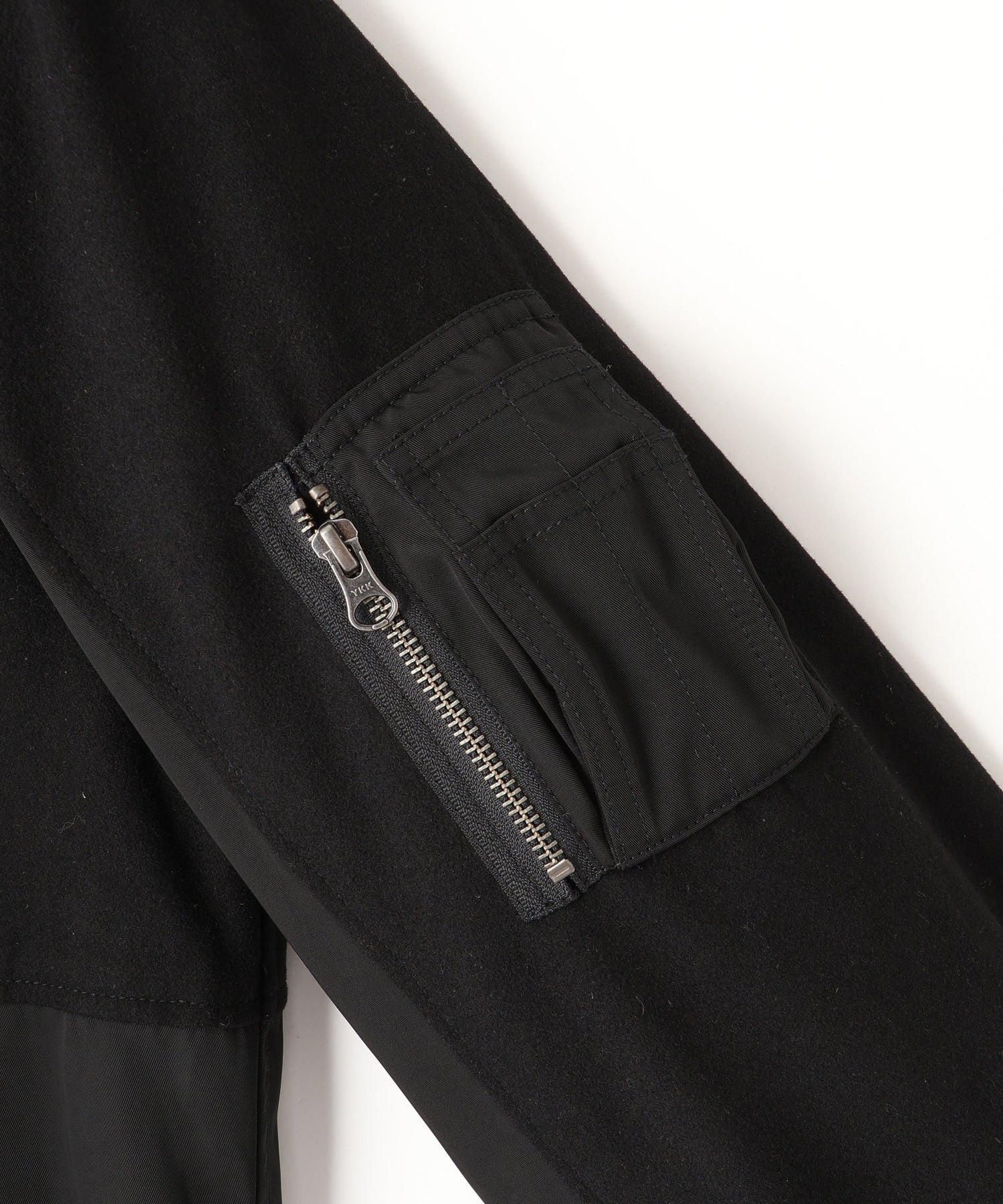 ライトメルトンとツイル素材を組み合わせたコンビデザインが印象的なアウター。