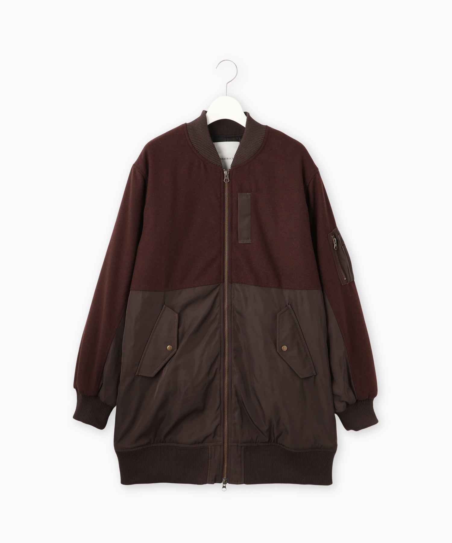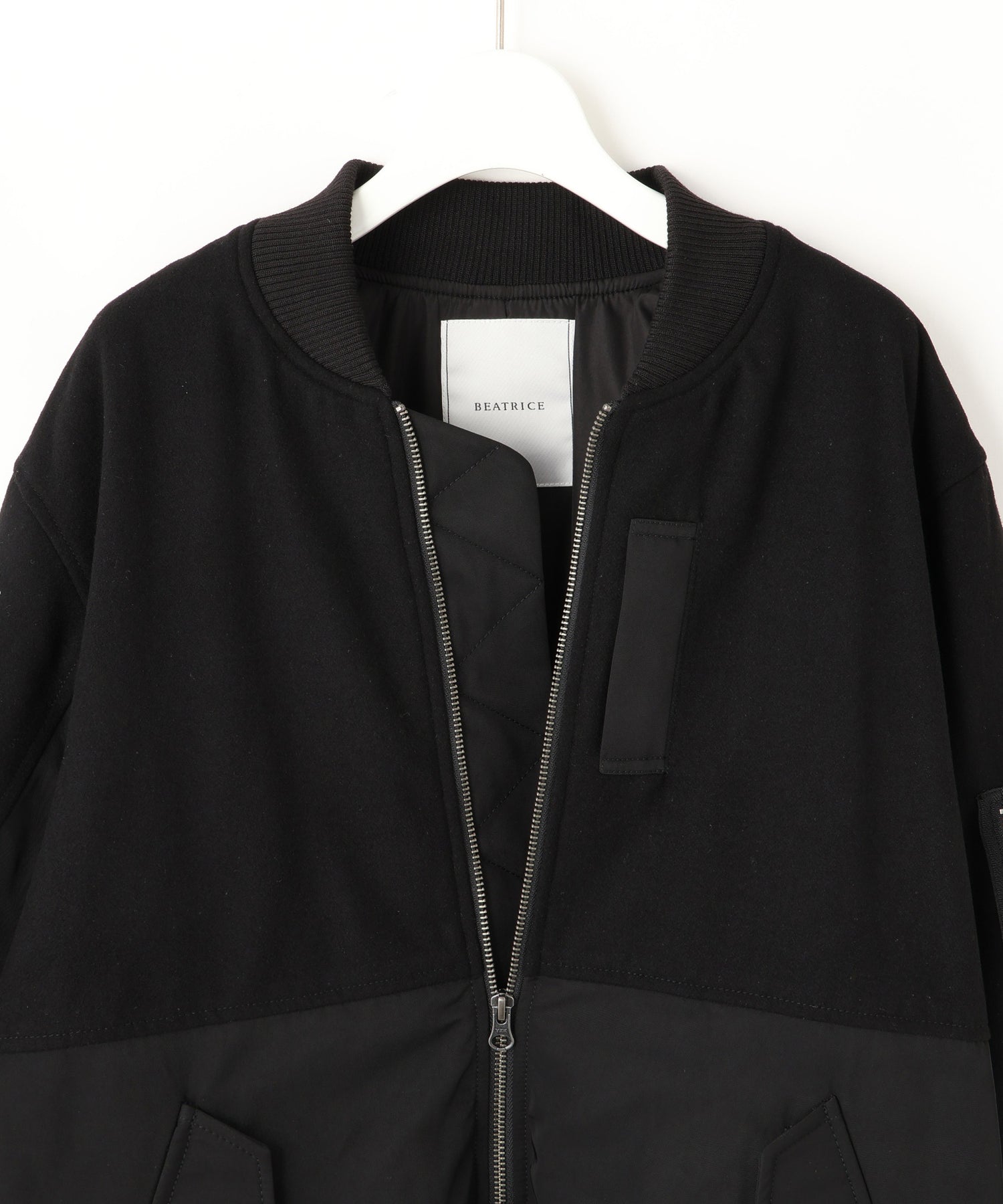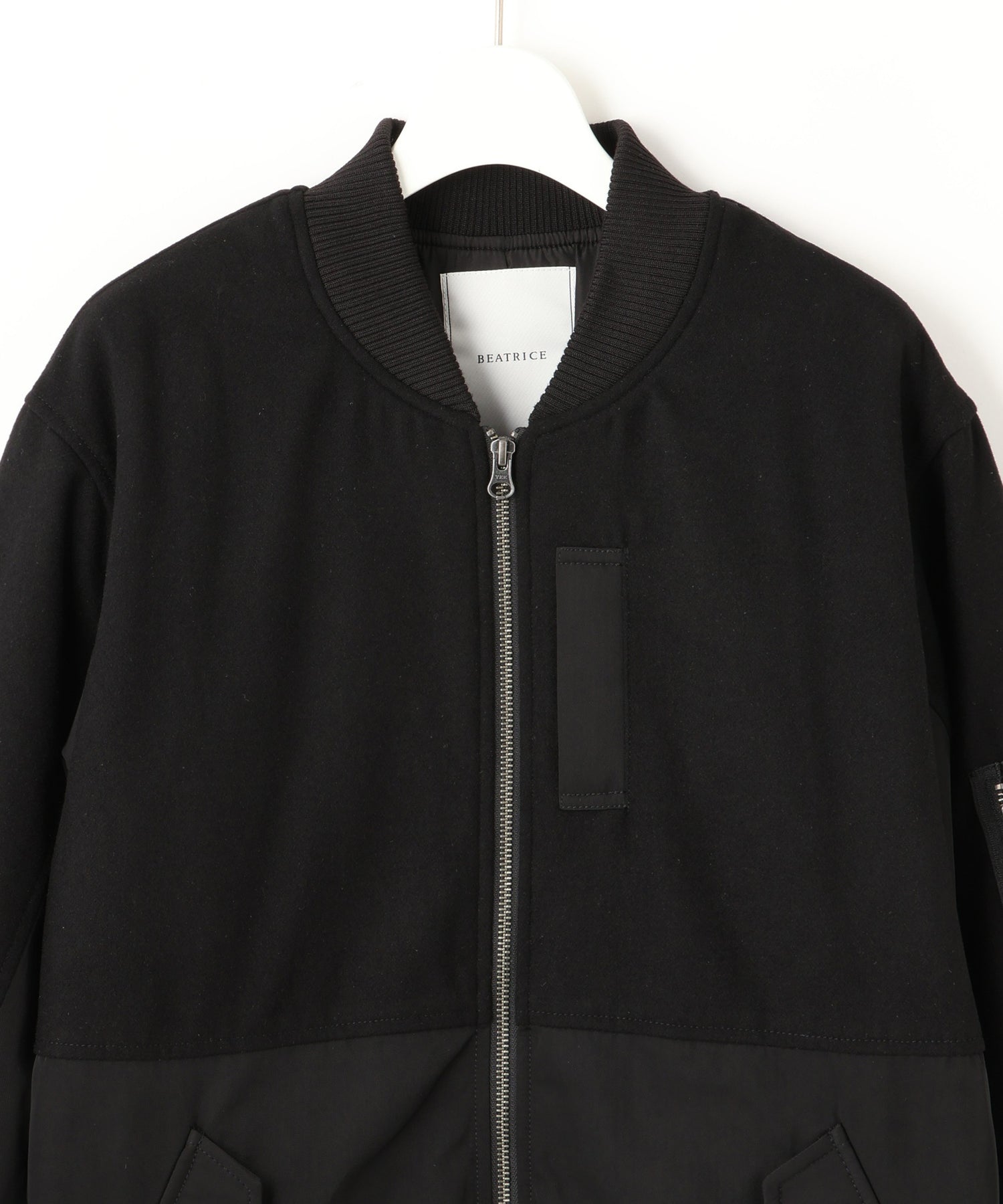 ライトメルトンとツイル素材を組み合わせたコンビデザインが印象的なアウター。