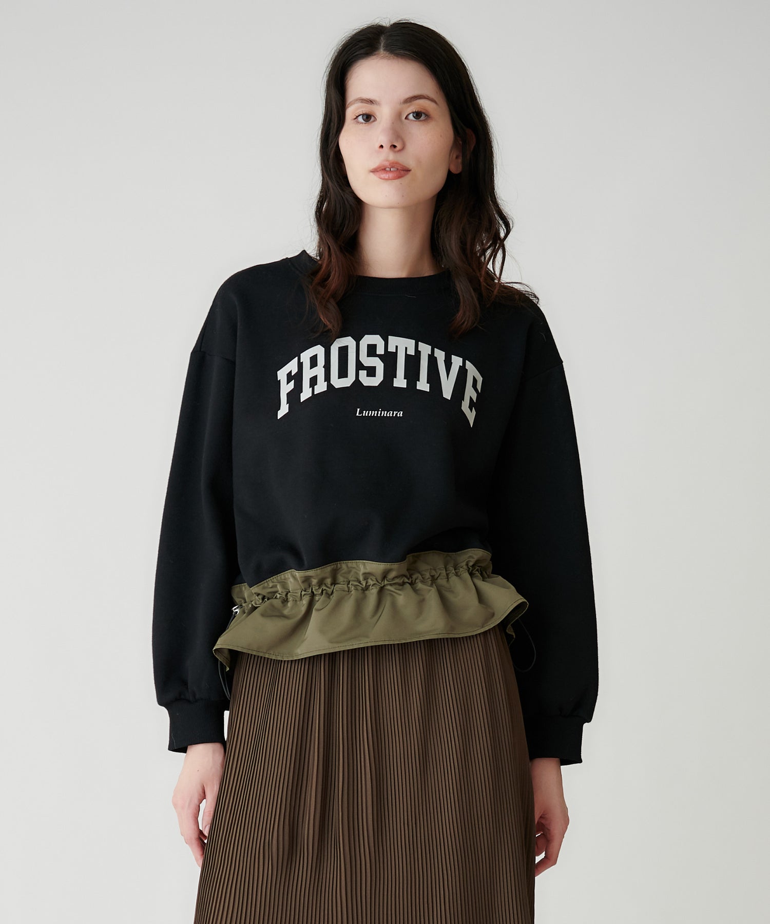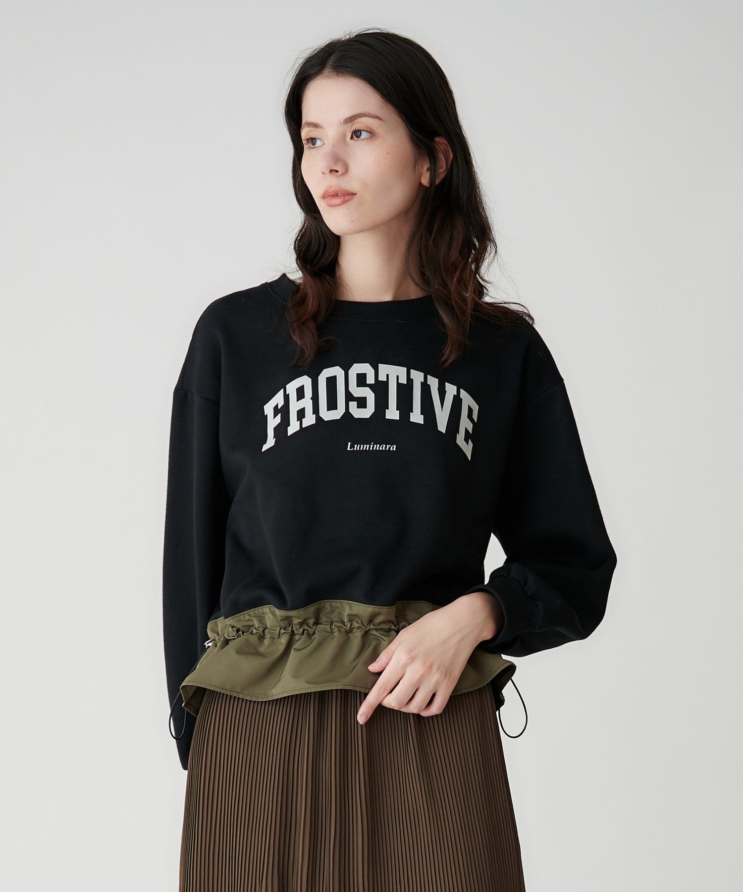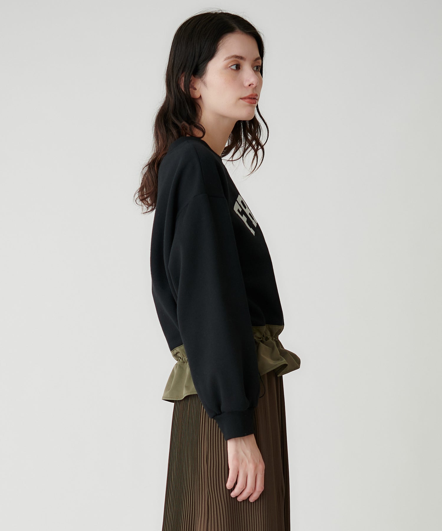 カジュアルなスウェットながら、微光沢のタフタで大人っぽく着られます。