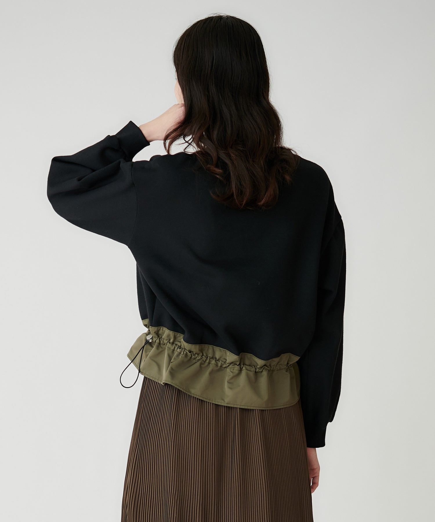 裾のタフタ部分はコードゴムでギャザー調節可能です。