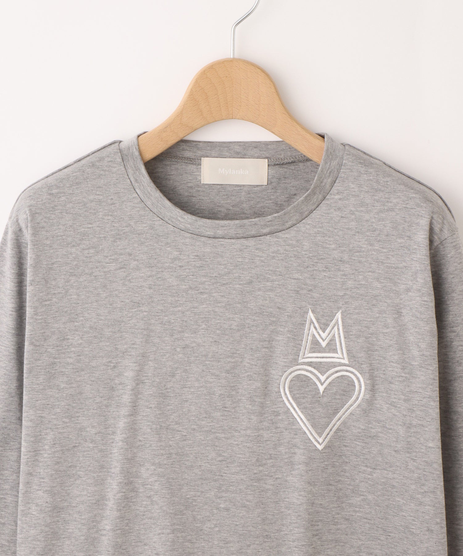 左胸にMyLankaオリジナルのハート×M玉チェーンステッチを刺繍。
