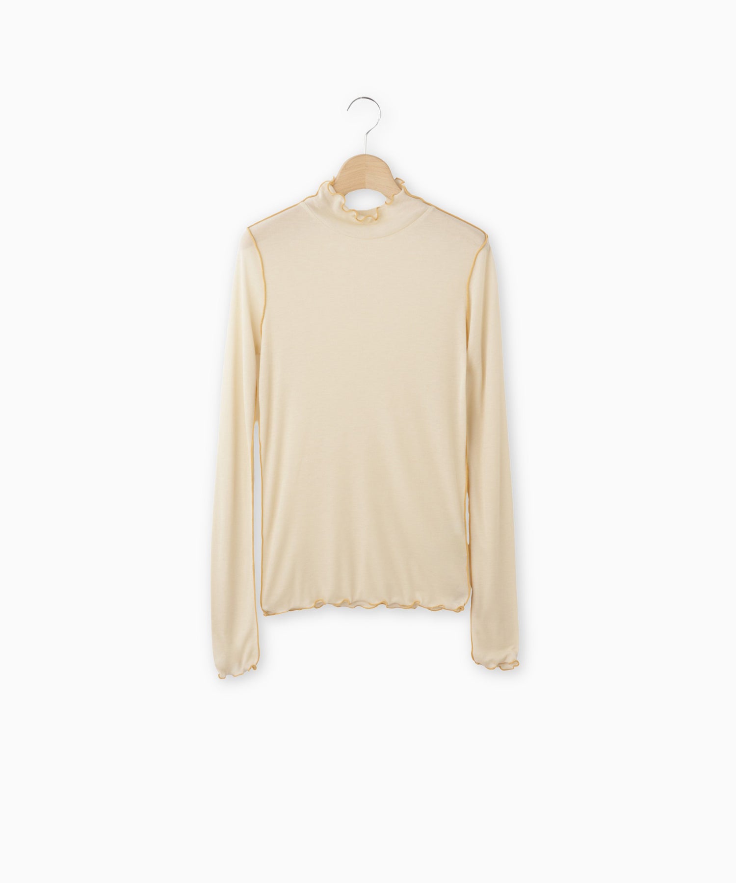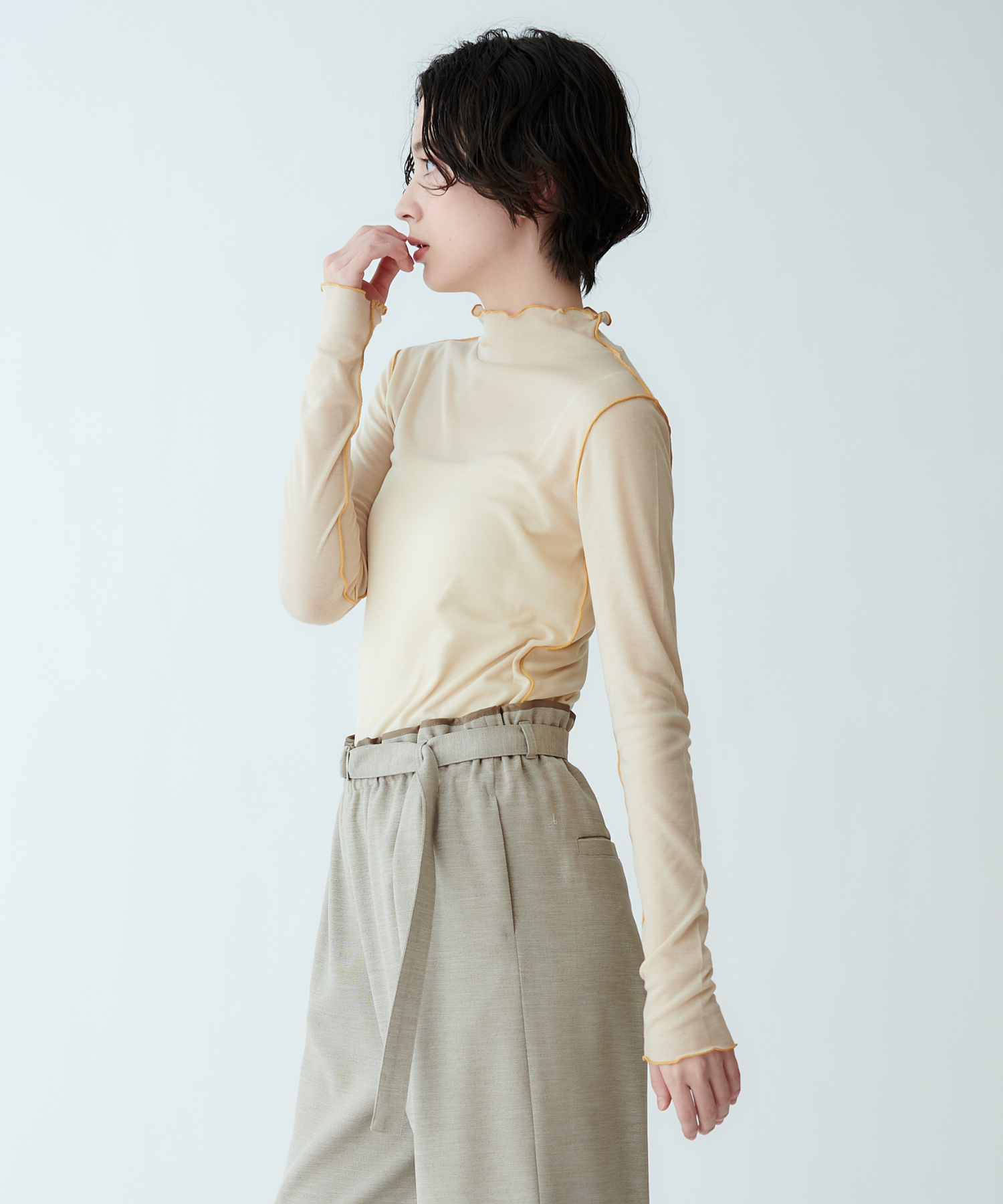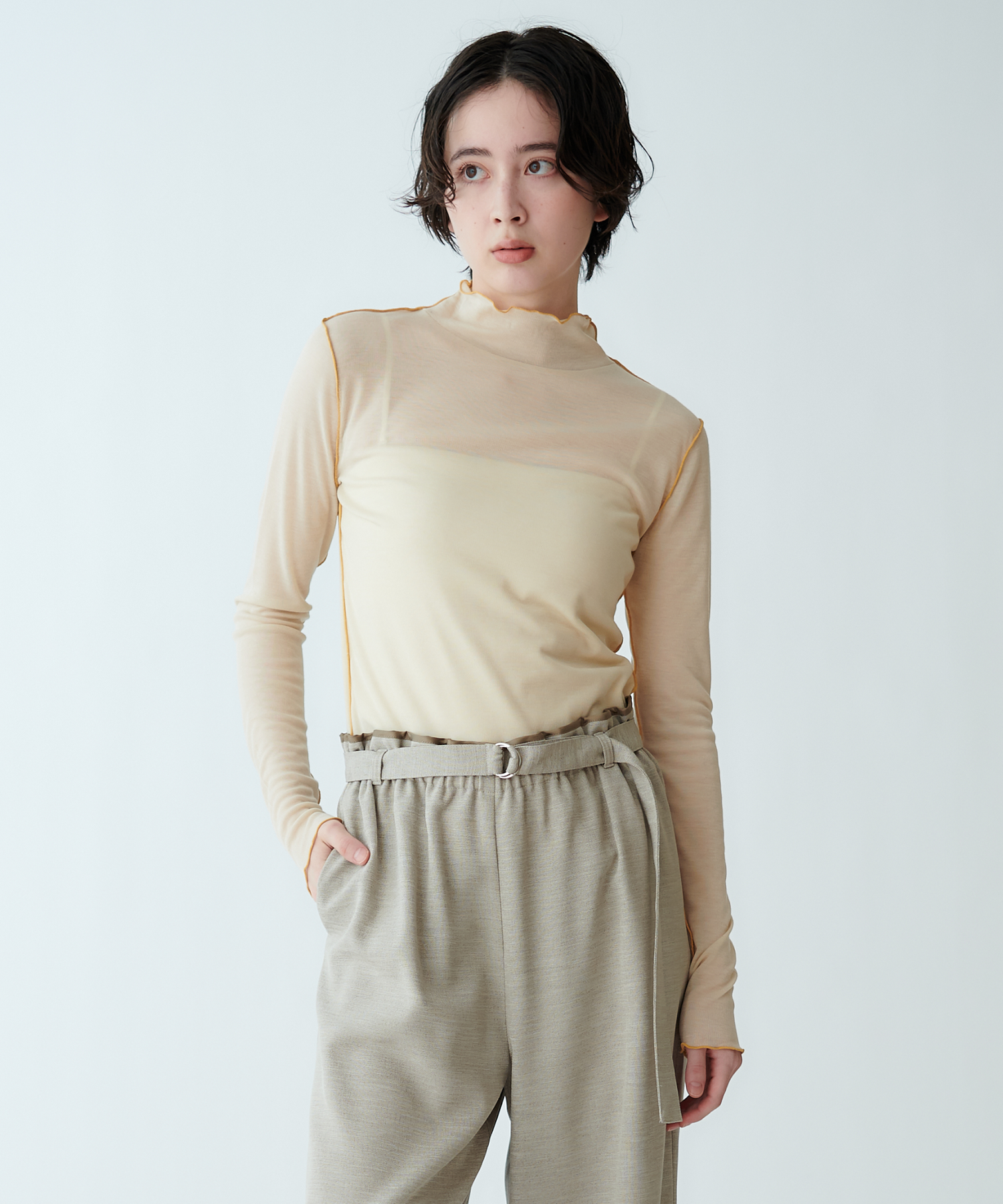 定番のメロー接ぎをポイントにした、ハイネックインナー。