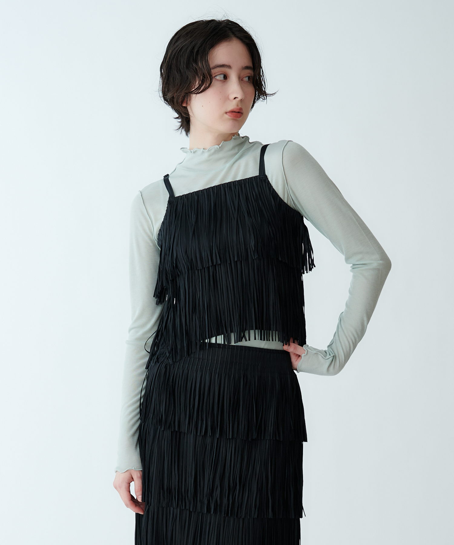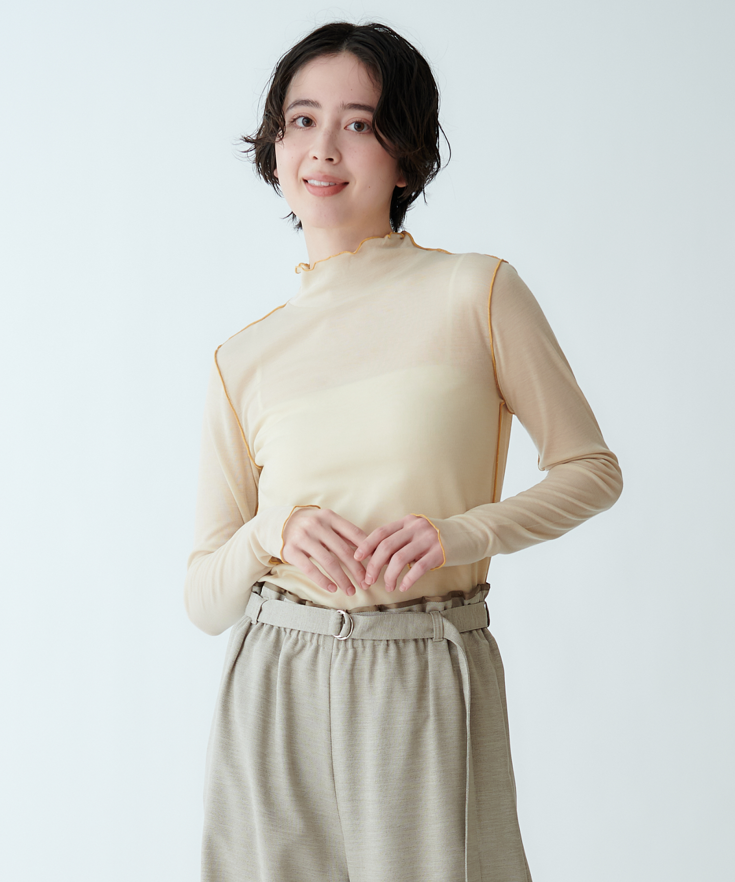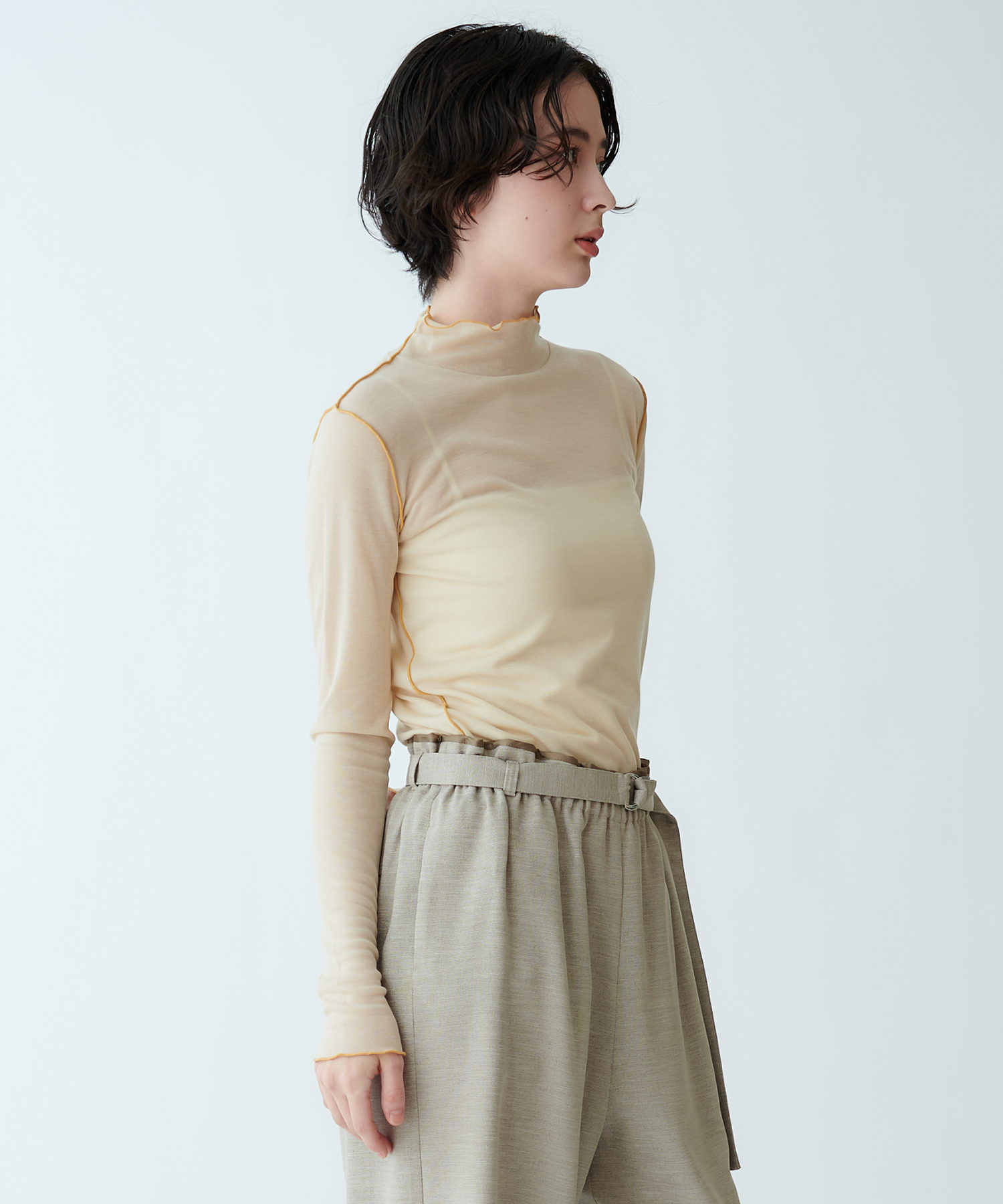 定番のメロー接ぎをポイントにした、ハイネックインナー。