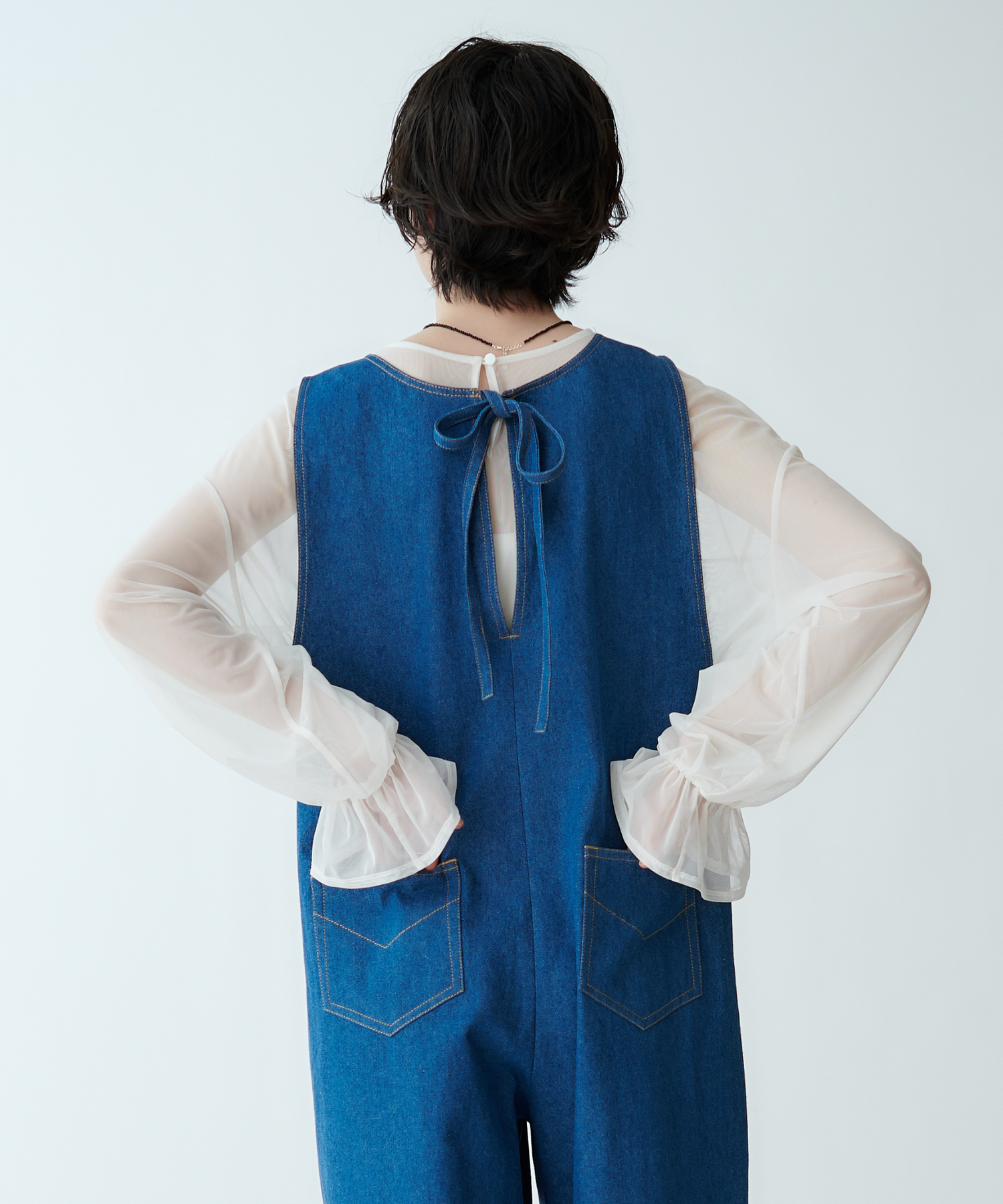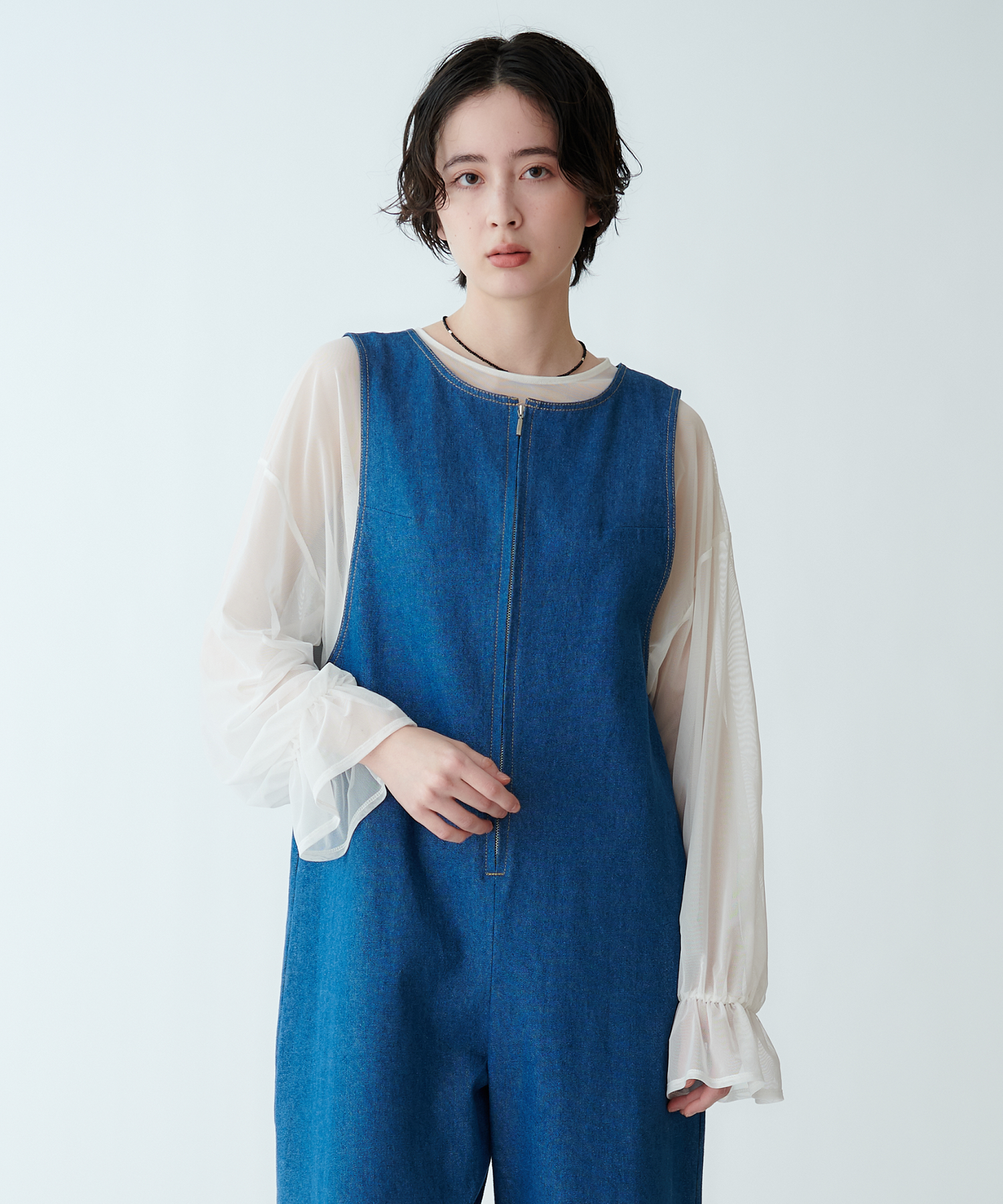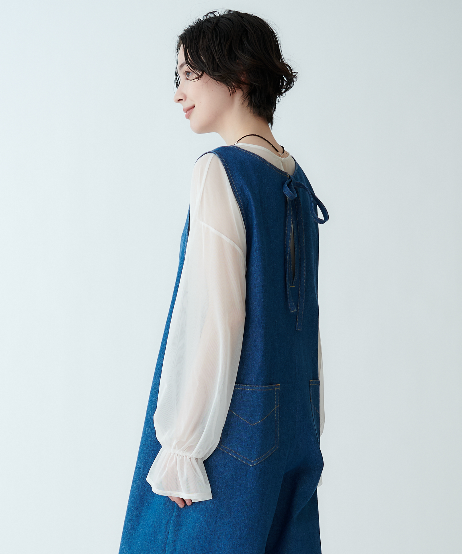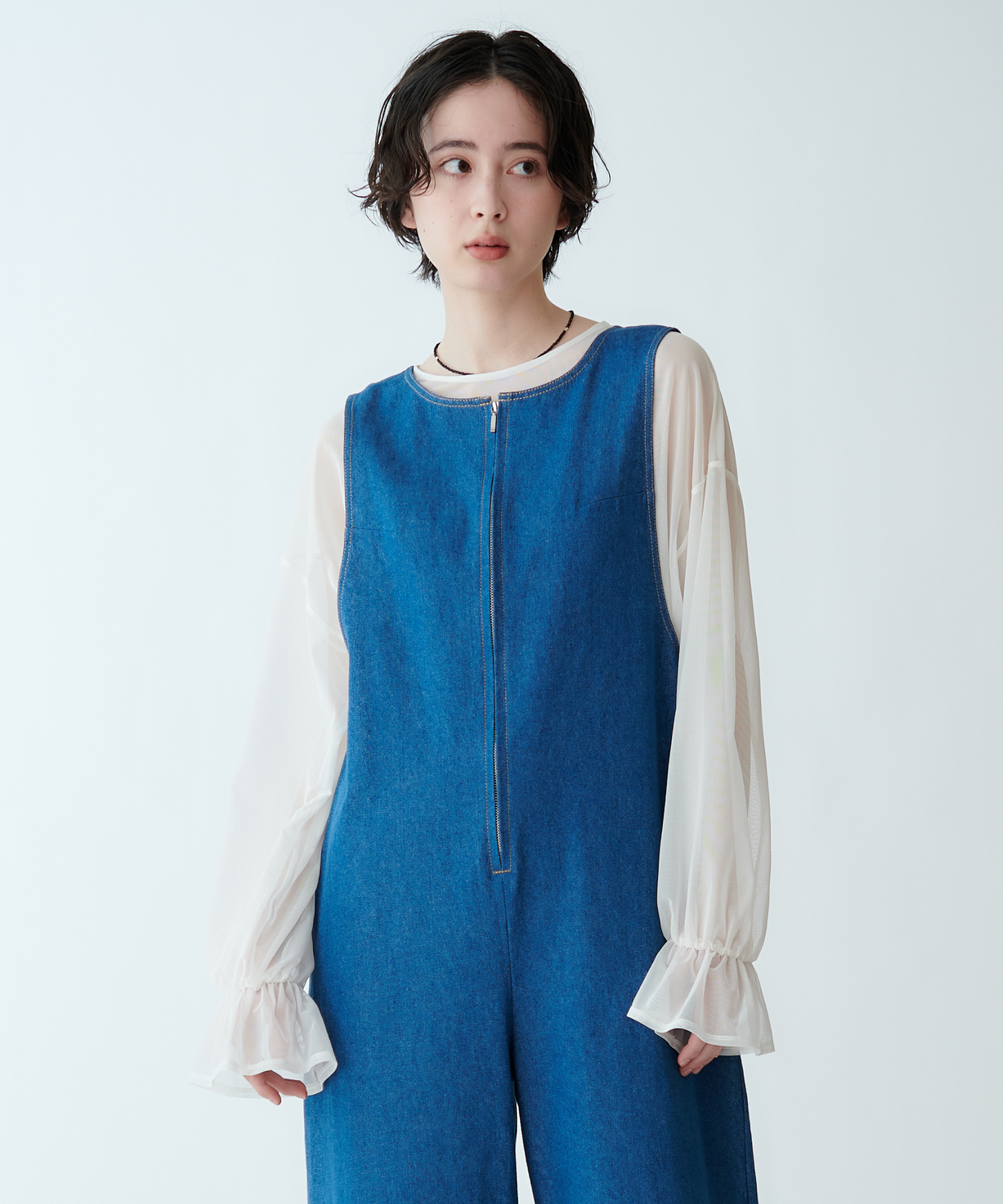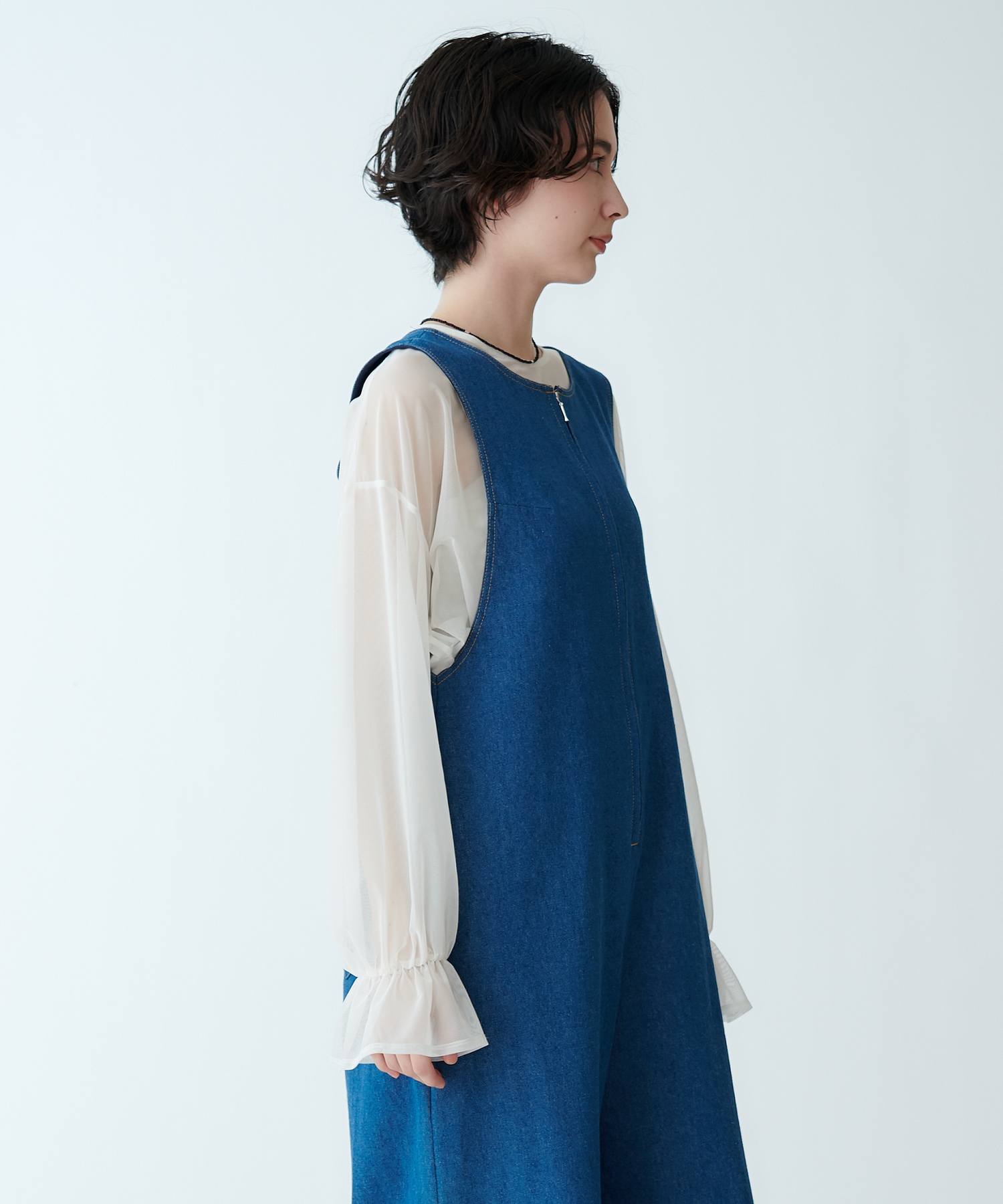 中に重ねて袖からシアー感をのぞかせても、上に重ねてインナーをほんのり透かせても◎