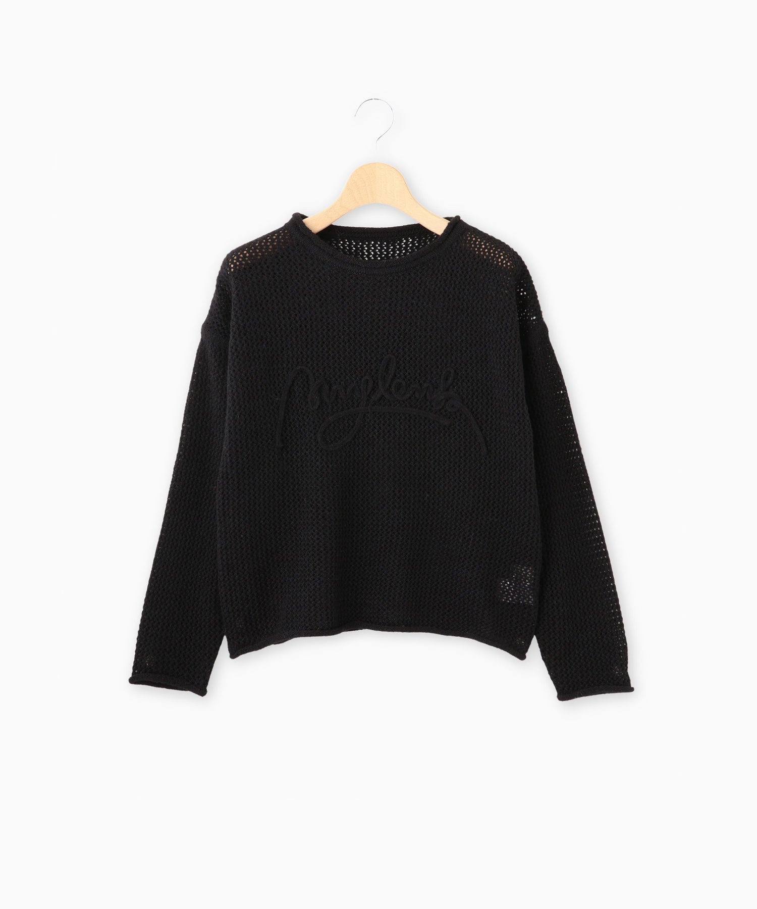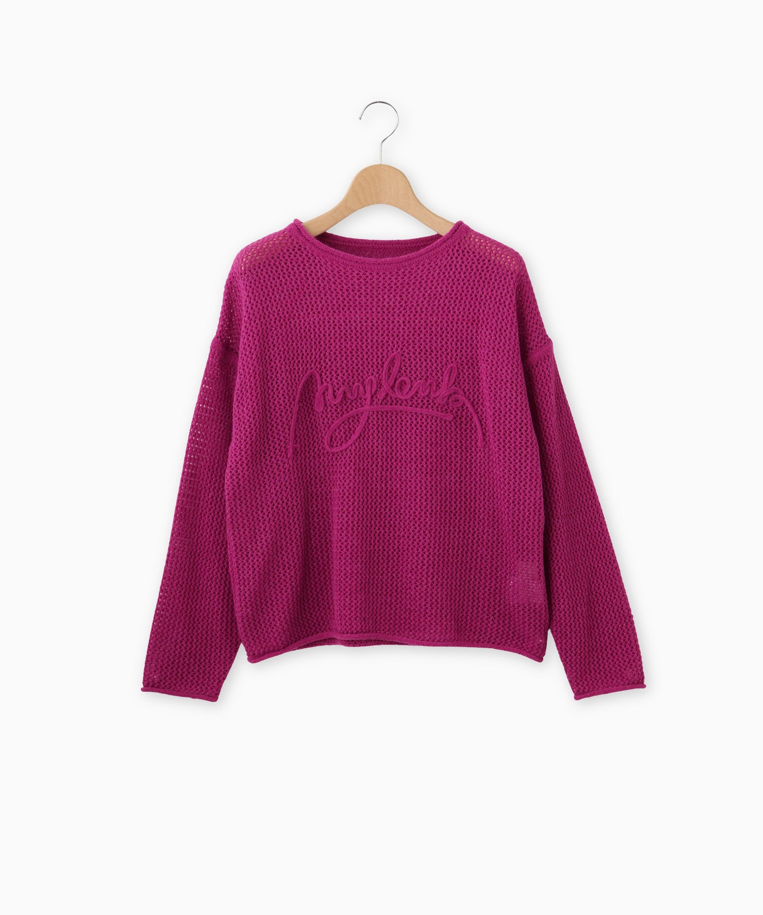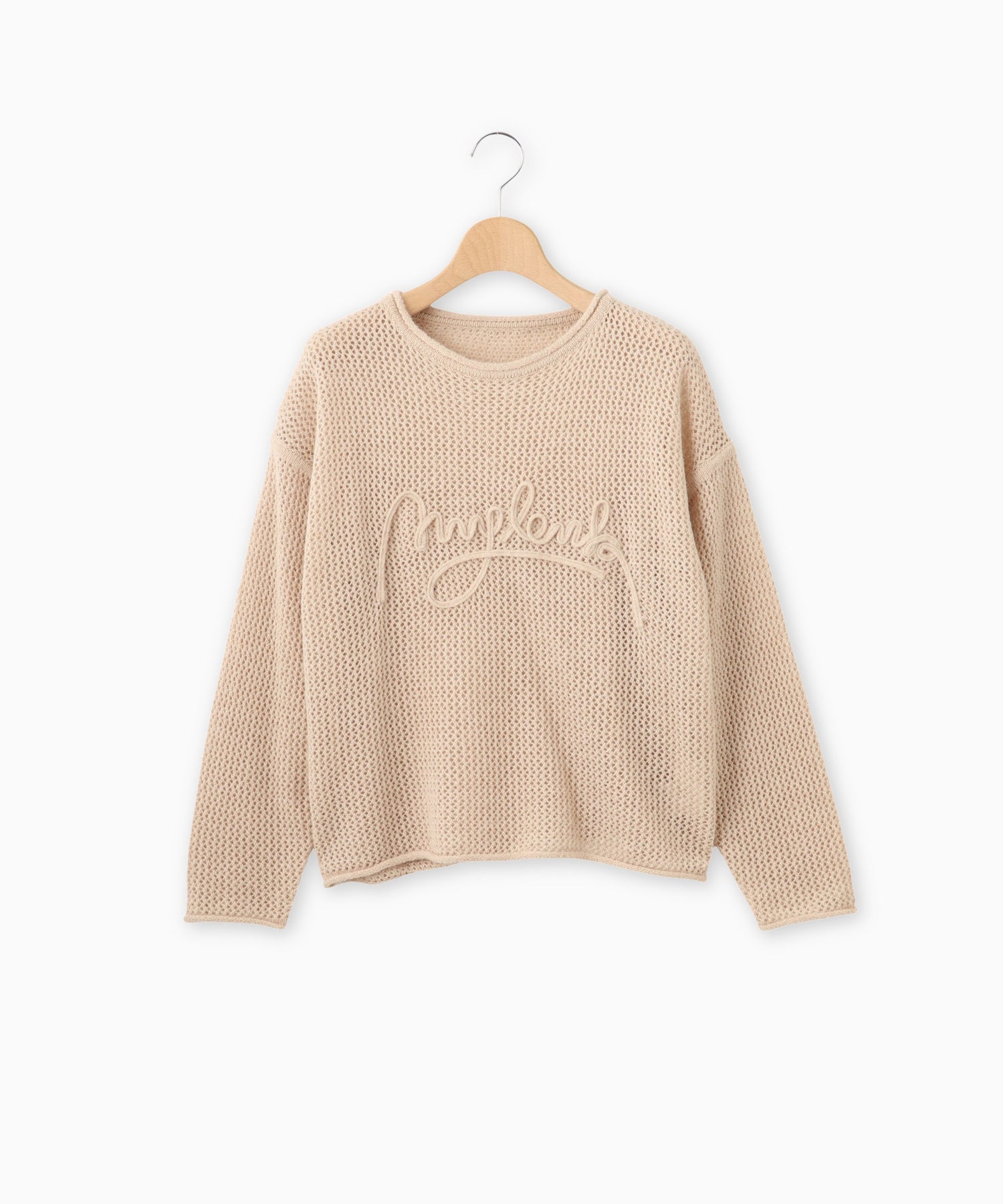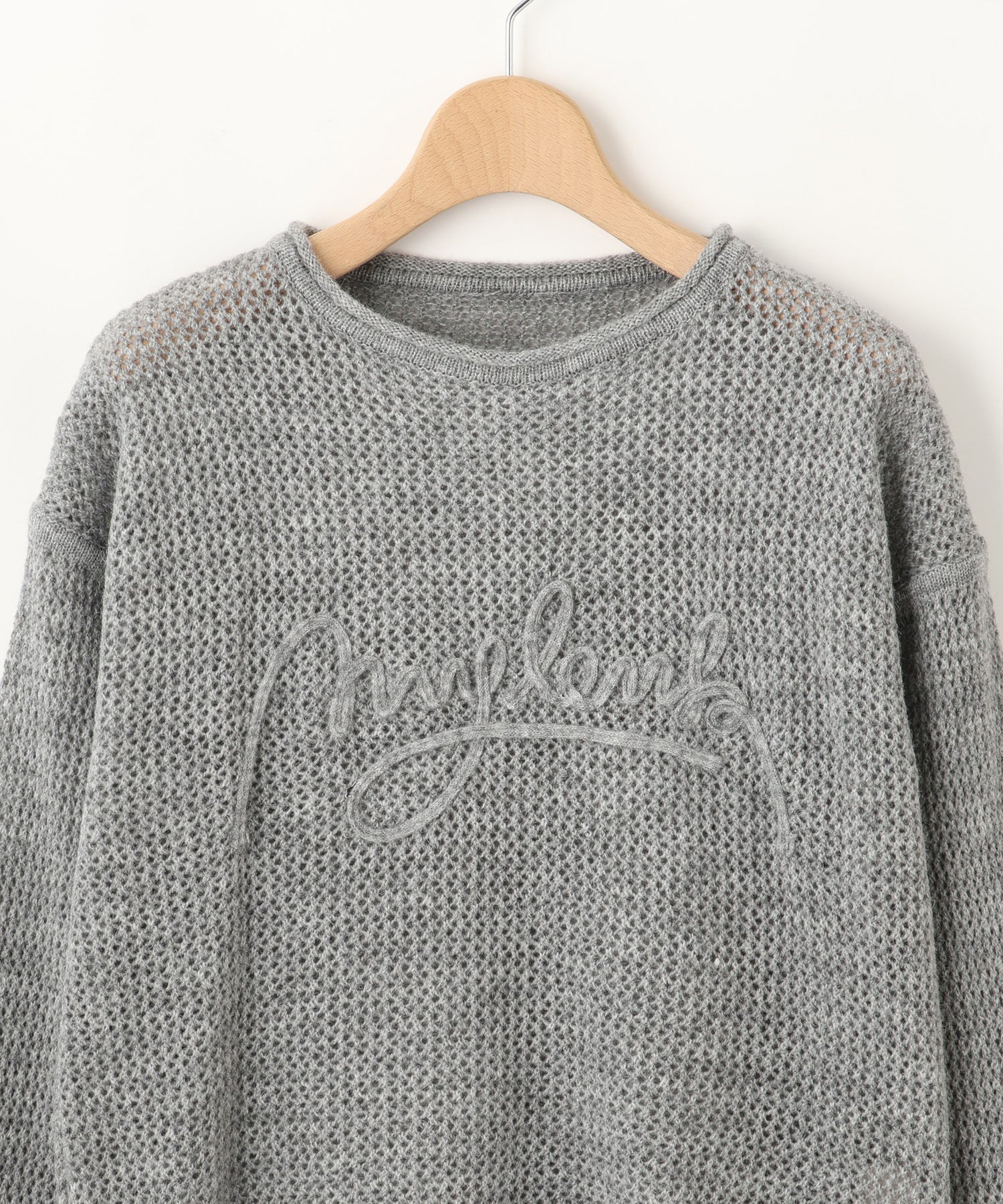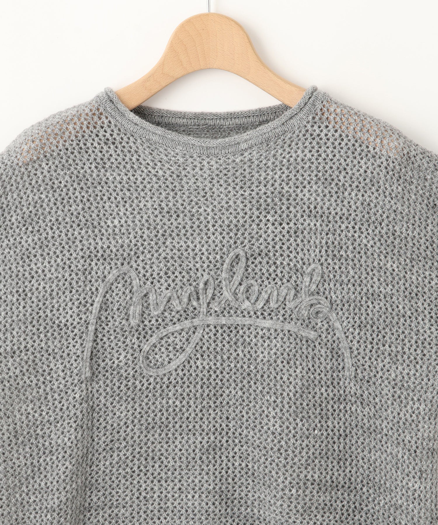 胸元には同素材のコードで描かれたMylankaロゴ刺繍入りで、繊細ながら印象的なデザイン。軽やかで透け感のある編地が、重ね着スタイルにアクセントをプラスします。