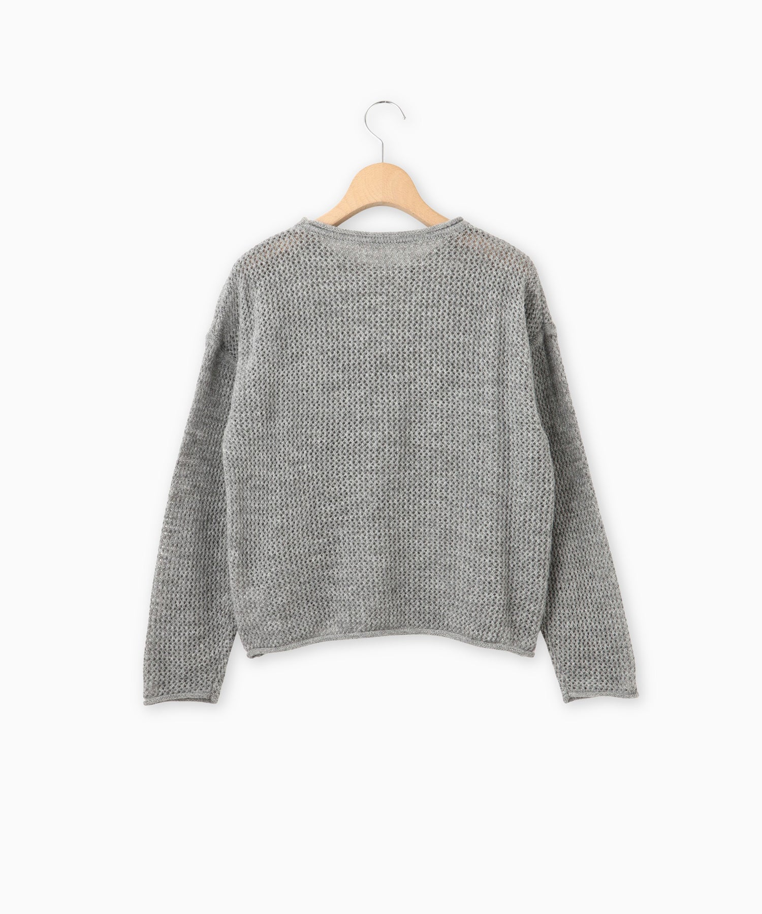 ふくらみのあるモヘア混糸で編み上げたメッシュニットトップス。