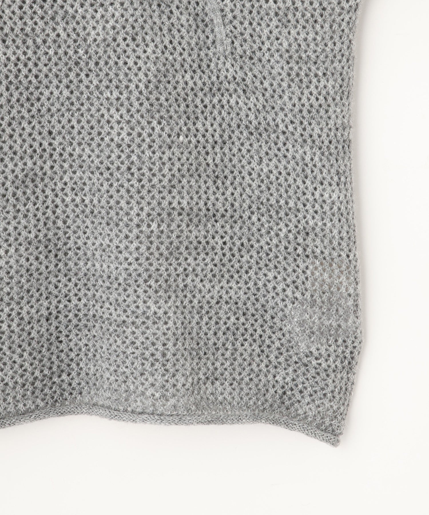 柔らかく軽やかな風合いで、透け感のあるメッシュ編みは通気性も良く、インナーとのレイヤードに最適です。