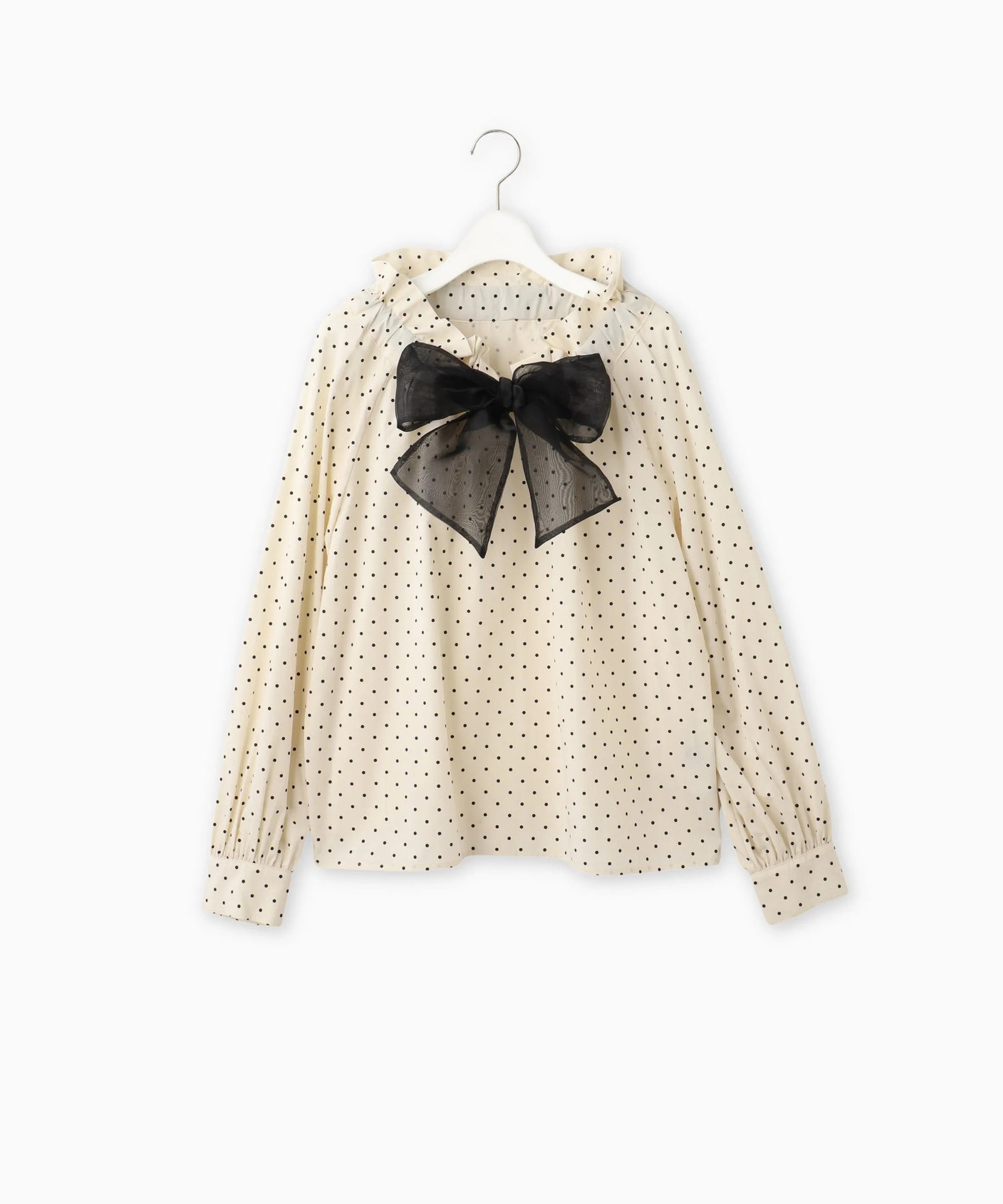 タイトパンツやスカートと合わせて、ブラウスを主役にしたフェミニンな着こなしに。