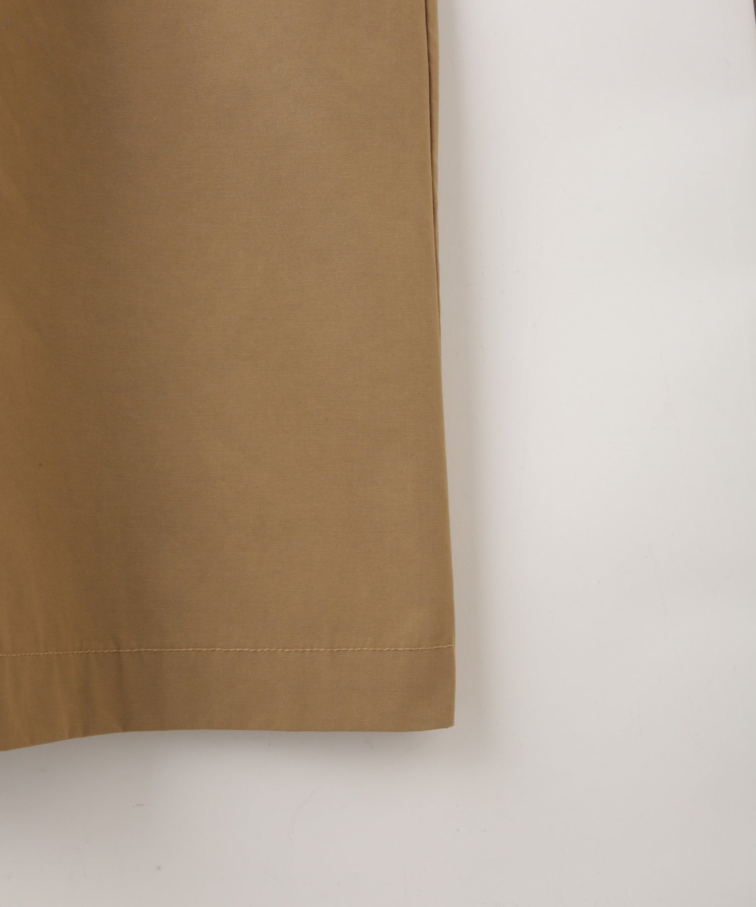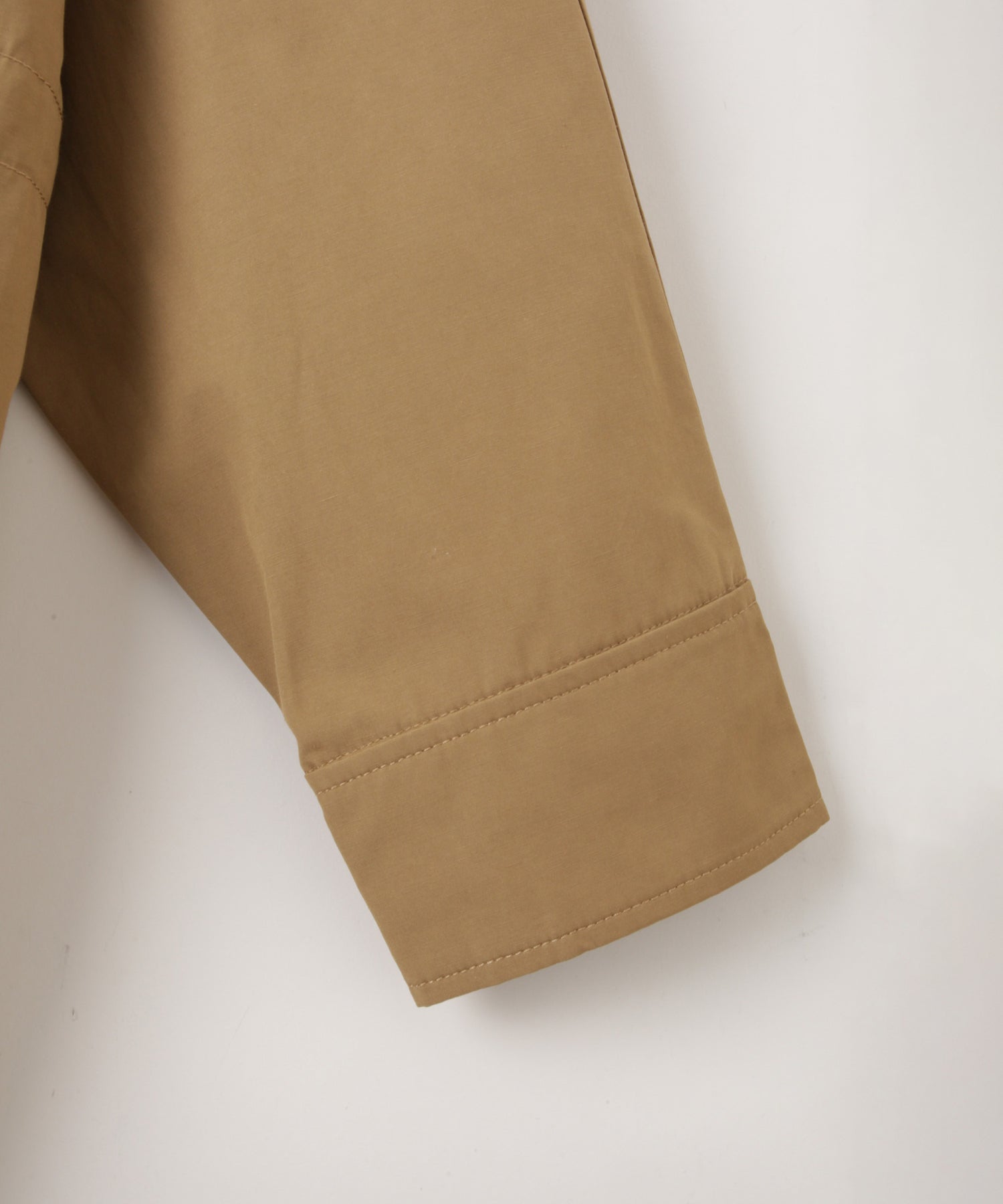 ドライなタッチとクリアな表面感がモードで程よいハリ感のあるコットンナイロン素材。