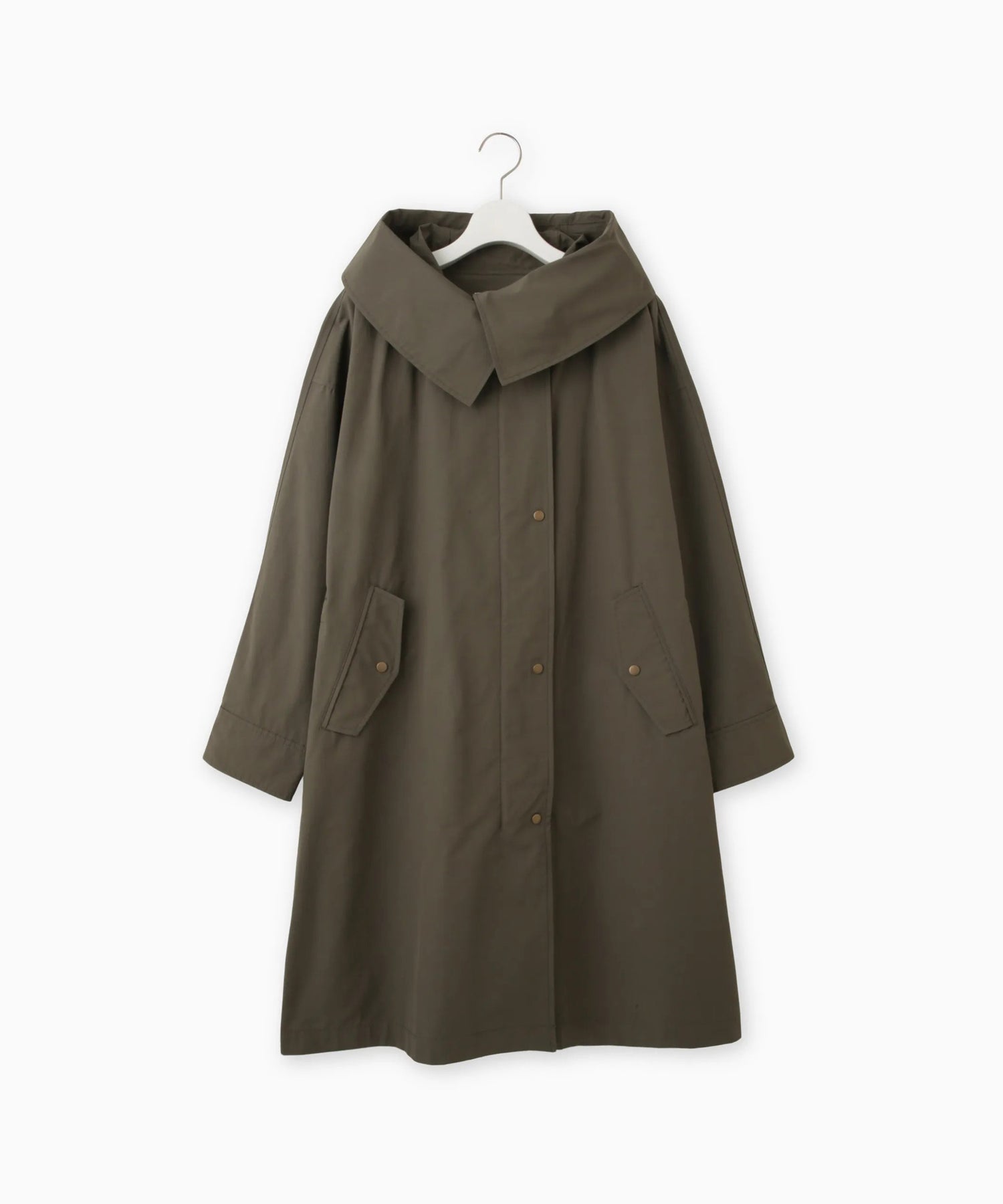 存在感のあるビッグカラーが目を引くモッズコート。