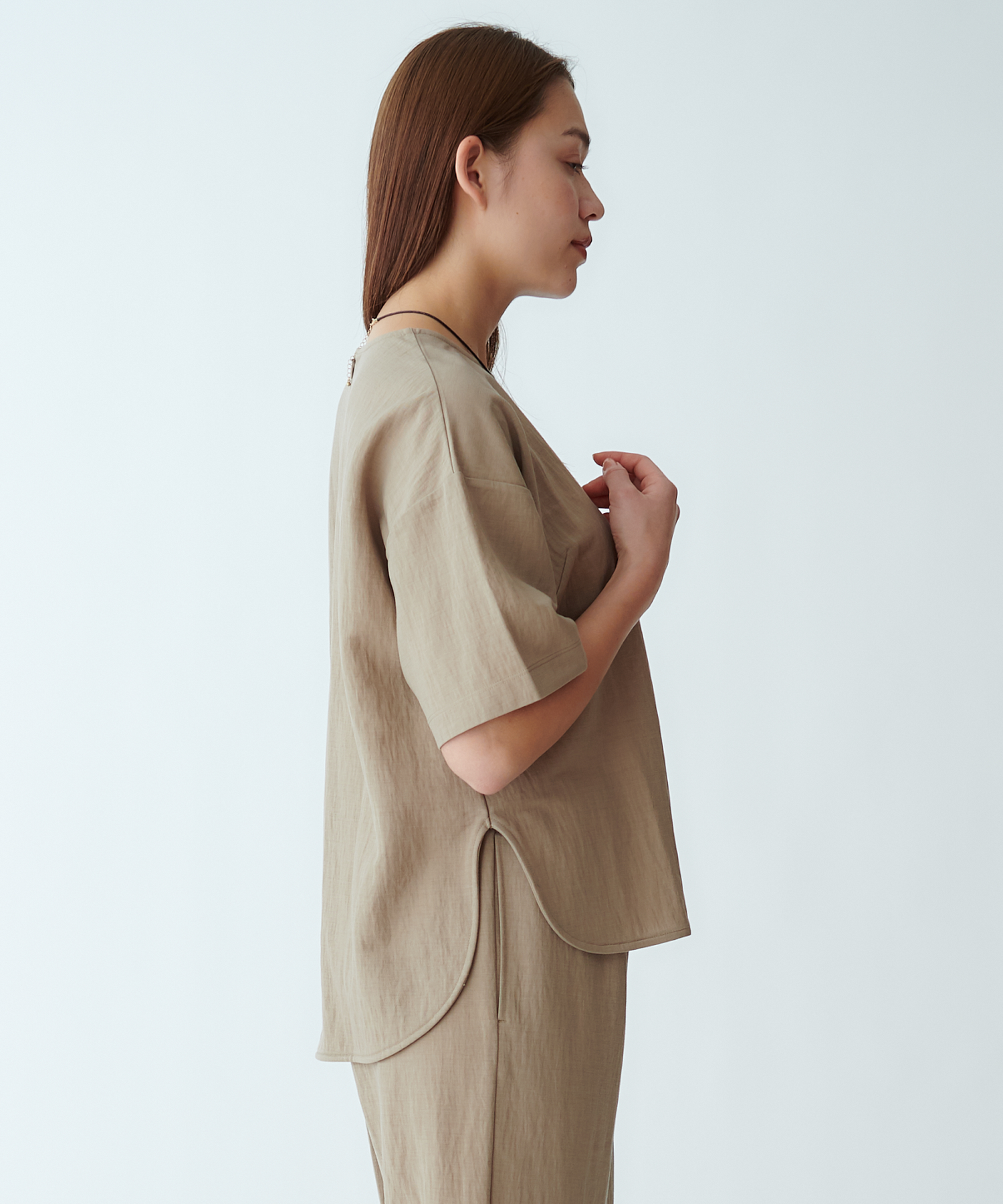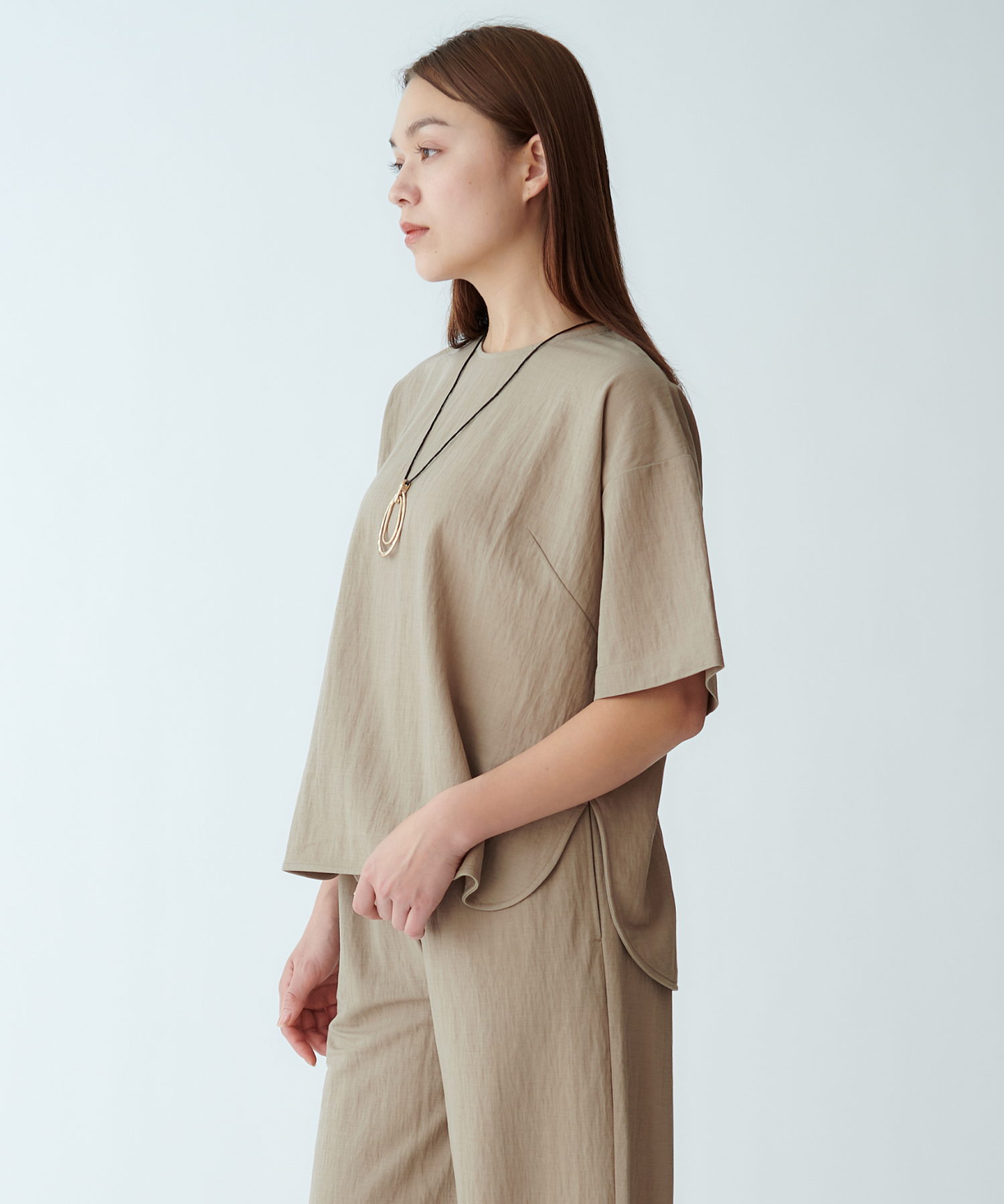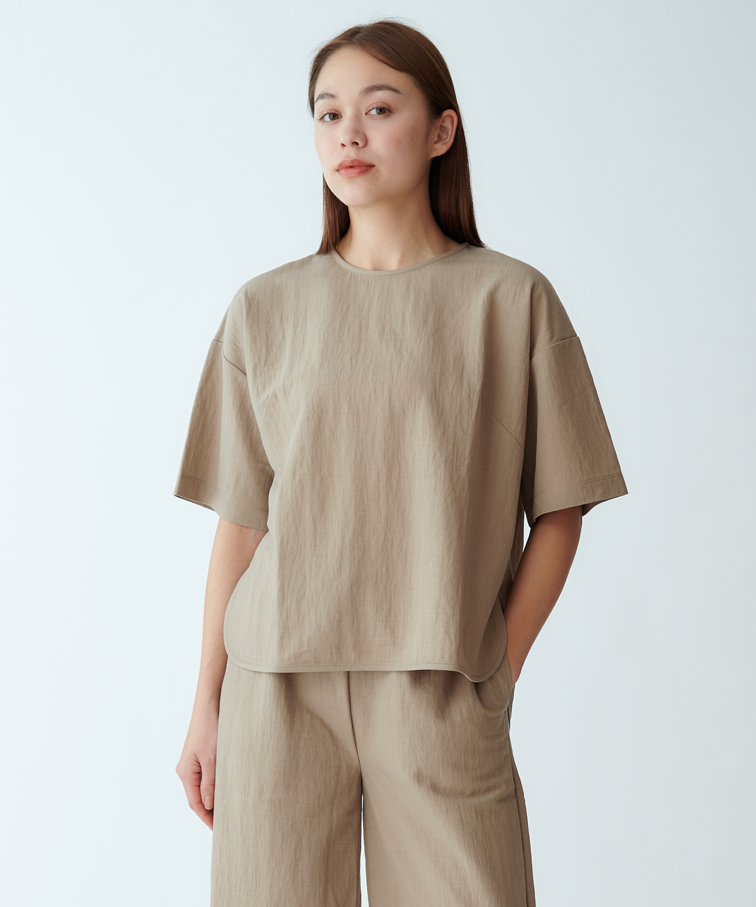 まるで布帛のTブラウスのような、きちんと感と程よい抜け感を兼ね備えたプルオーバー。