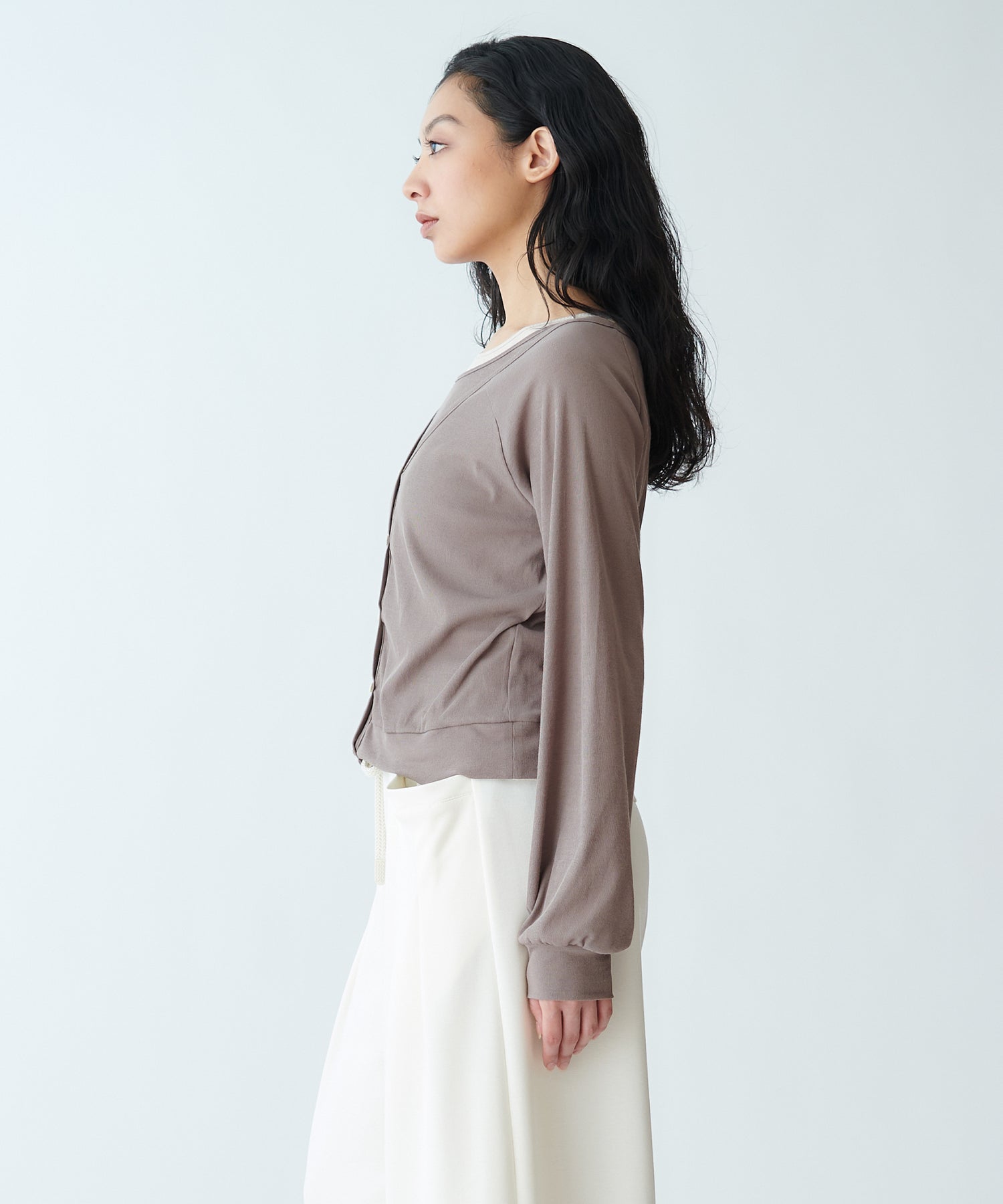 繊細な透け感と、日常のあらゆるシーンでさらっと羽織りやすいシンプルながらも洗練されたフォルムのフライスカーディガンです。
