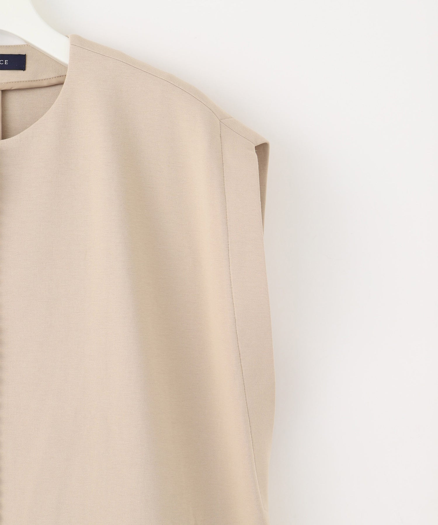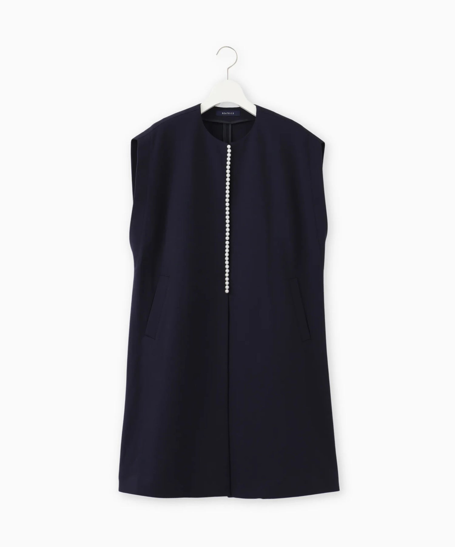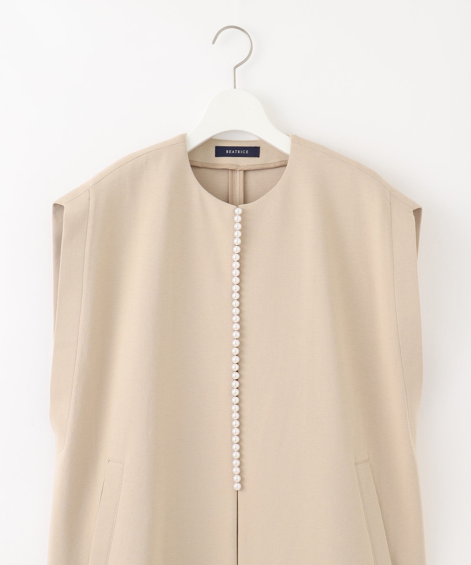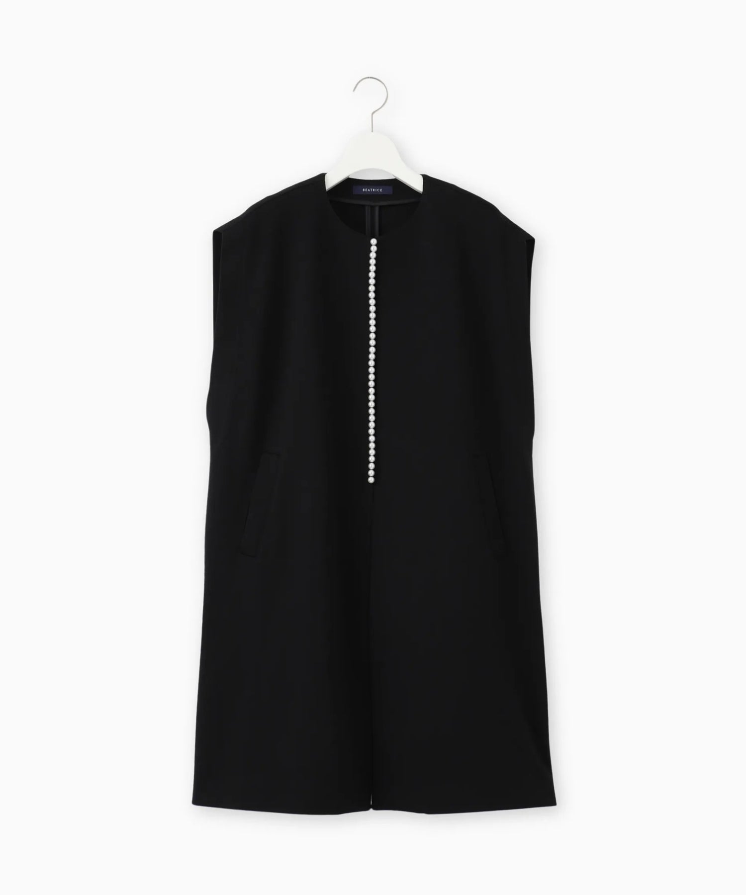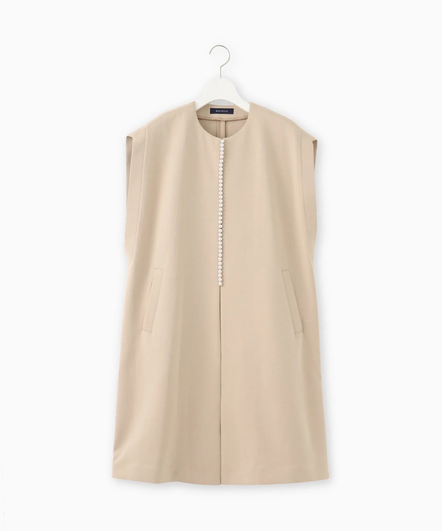 胸元にあしらったパールがさりげなく華やぐ、大人のための上品ジレ。