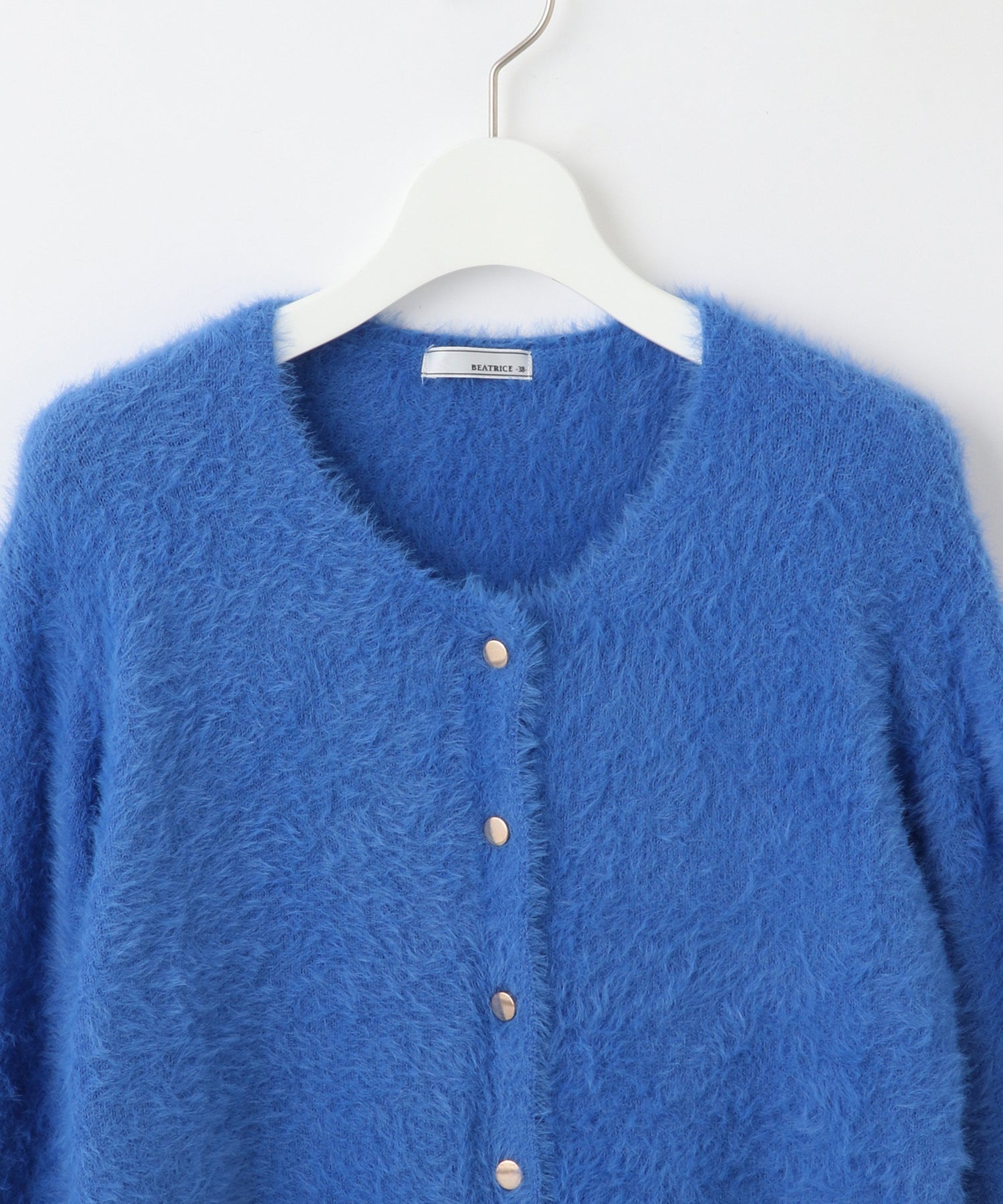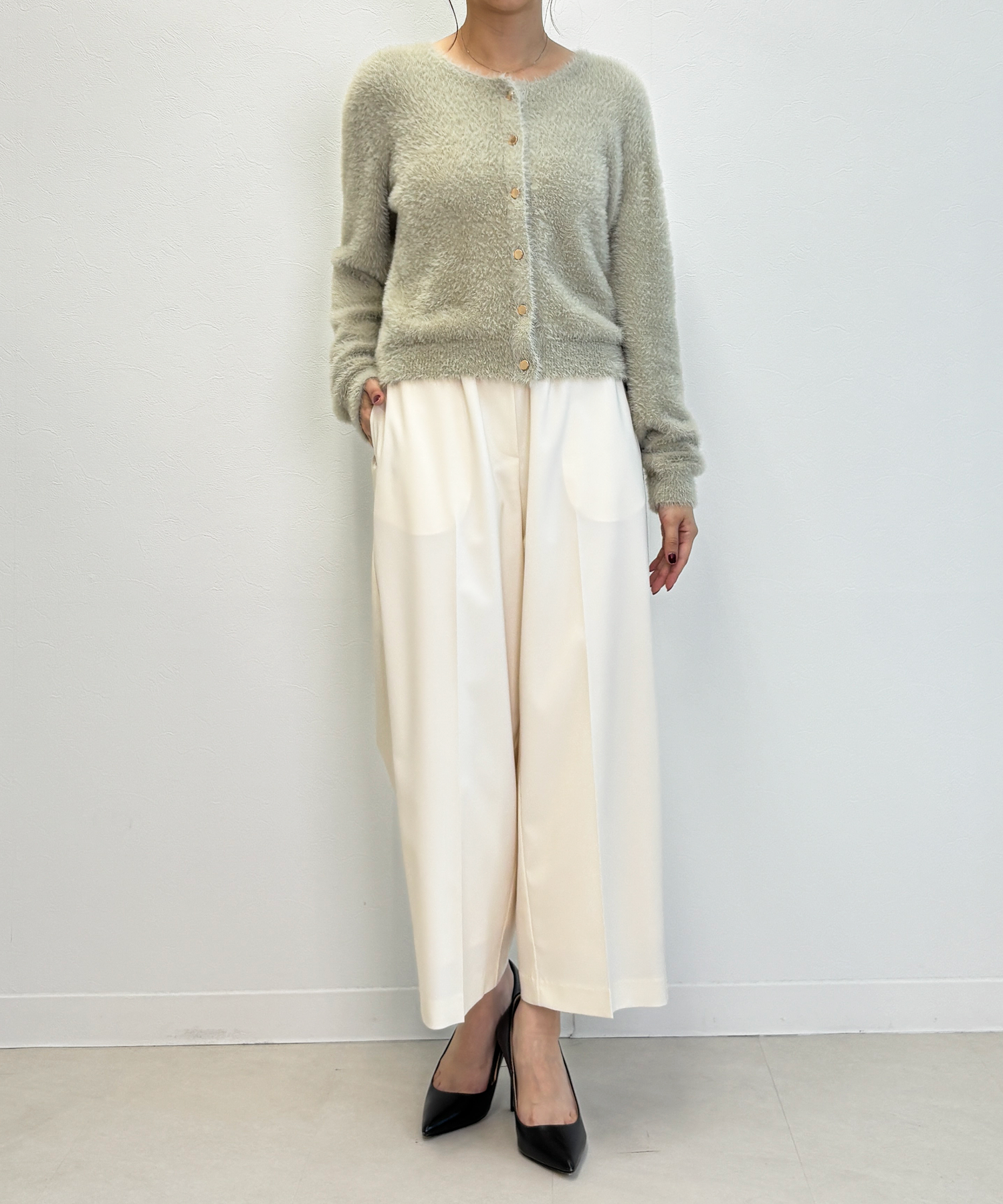 シンプルながらも、フェザーヤーンのふわふわとした質感で秋冬らしい雰囲気を演出できる1枚です。