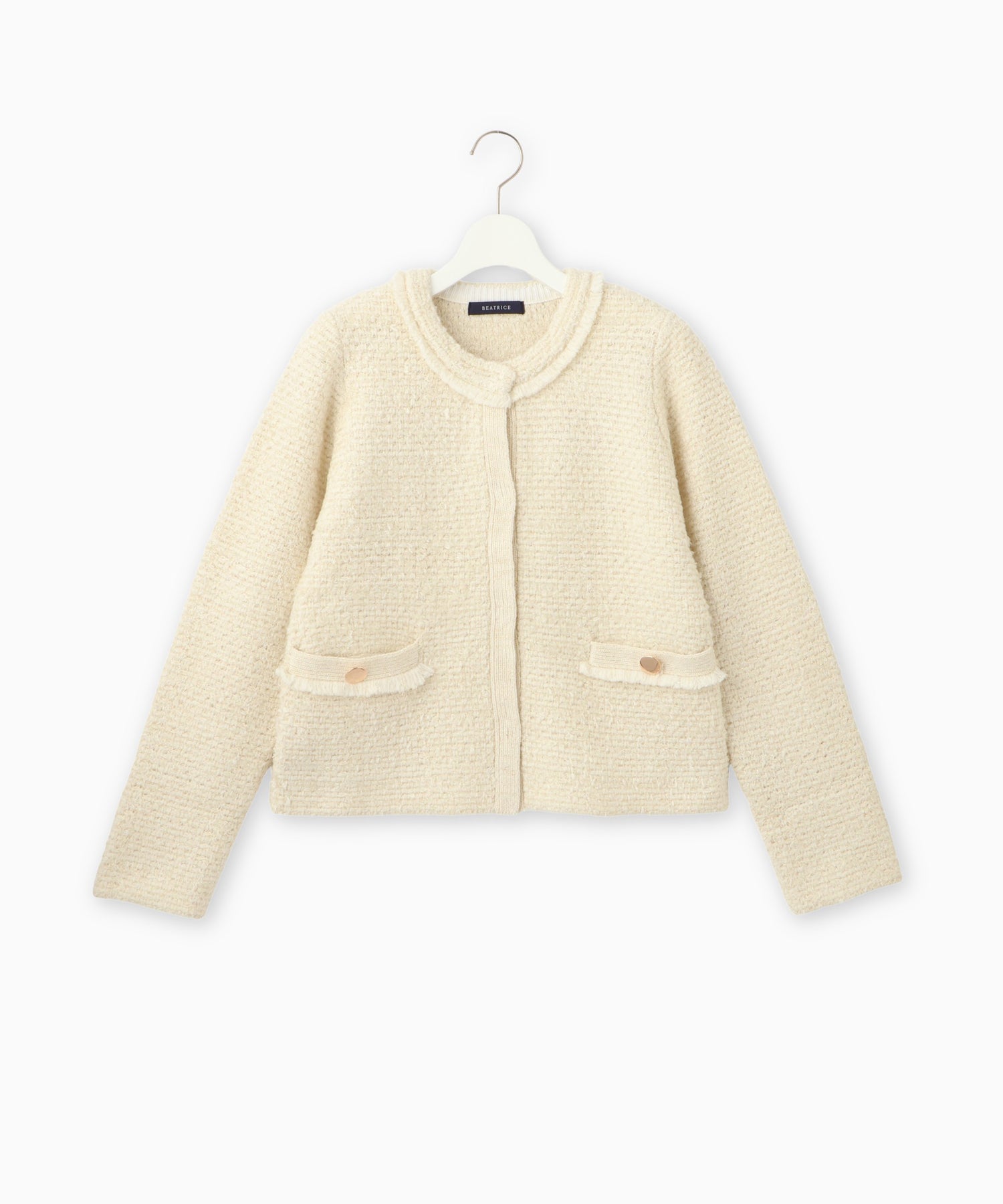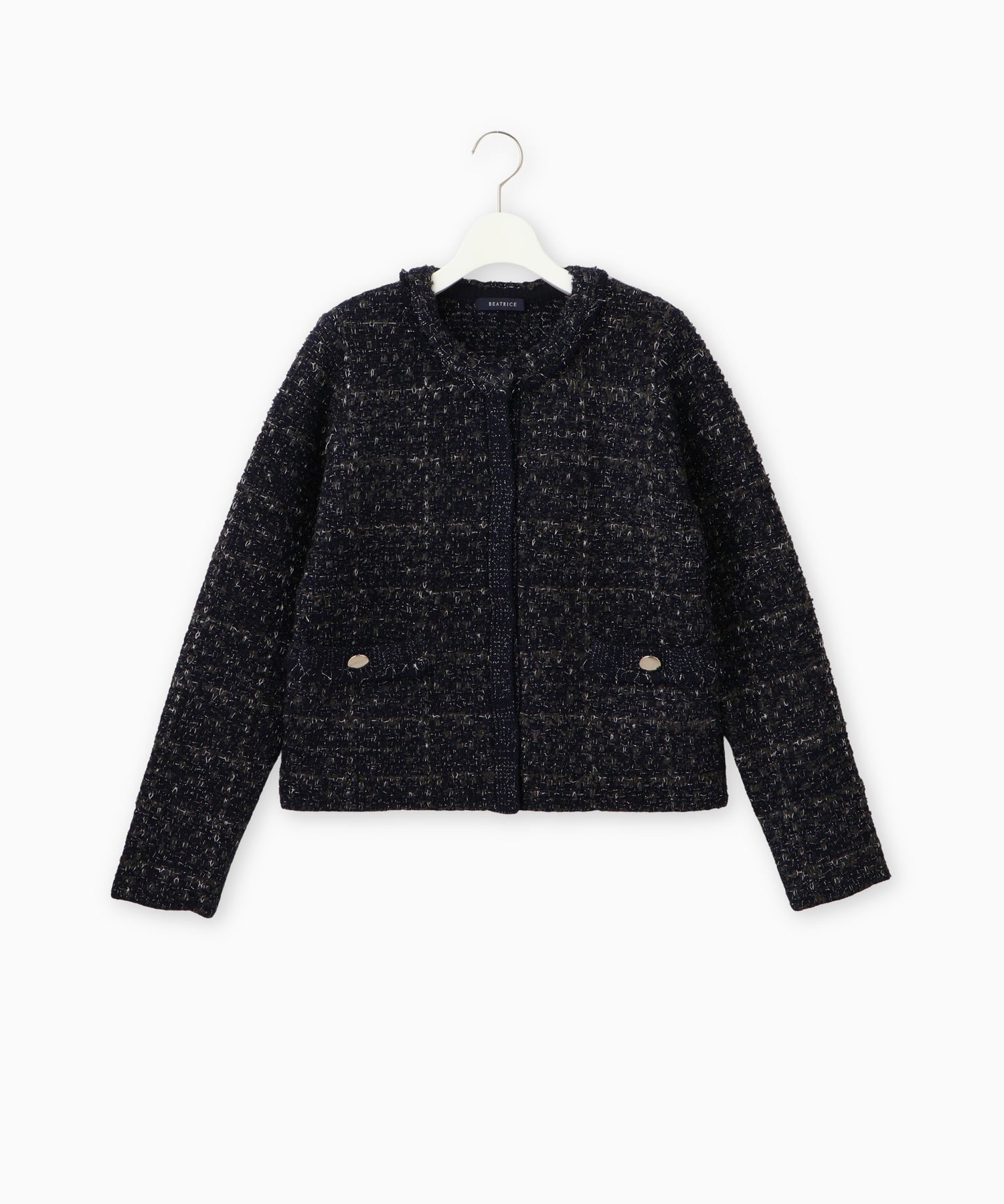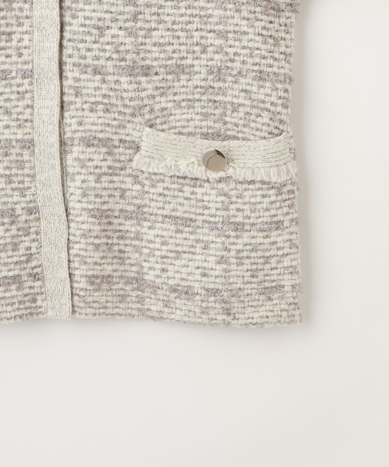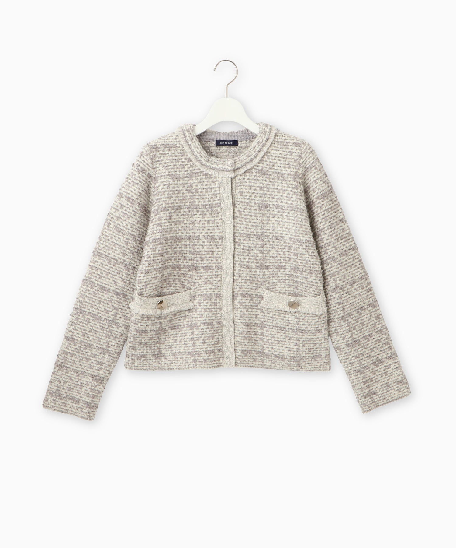 冬先までアウター感覚で着られるニットツィードジャケット。