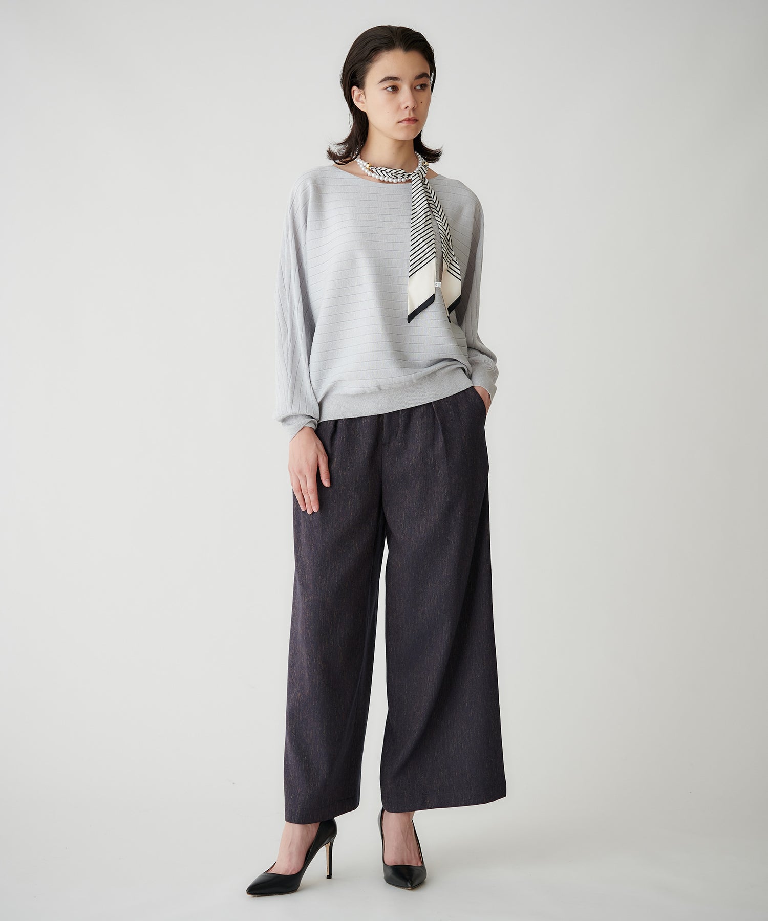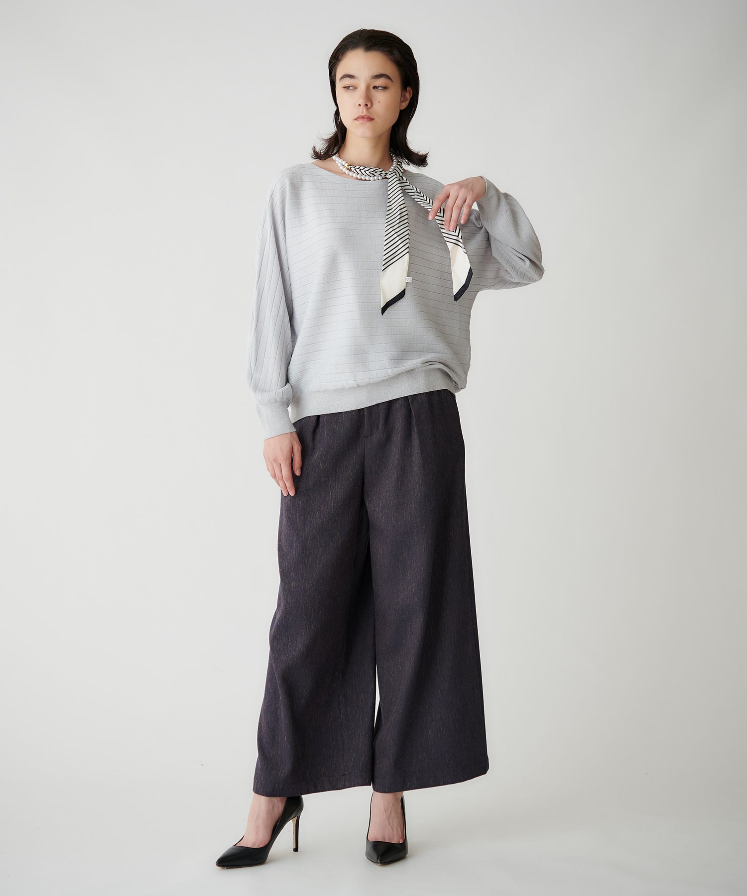 シンプルなニットやブラウスに巻くだけで、顔まわりに華やかさをプラス。