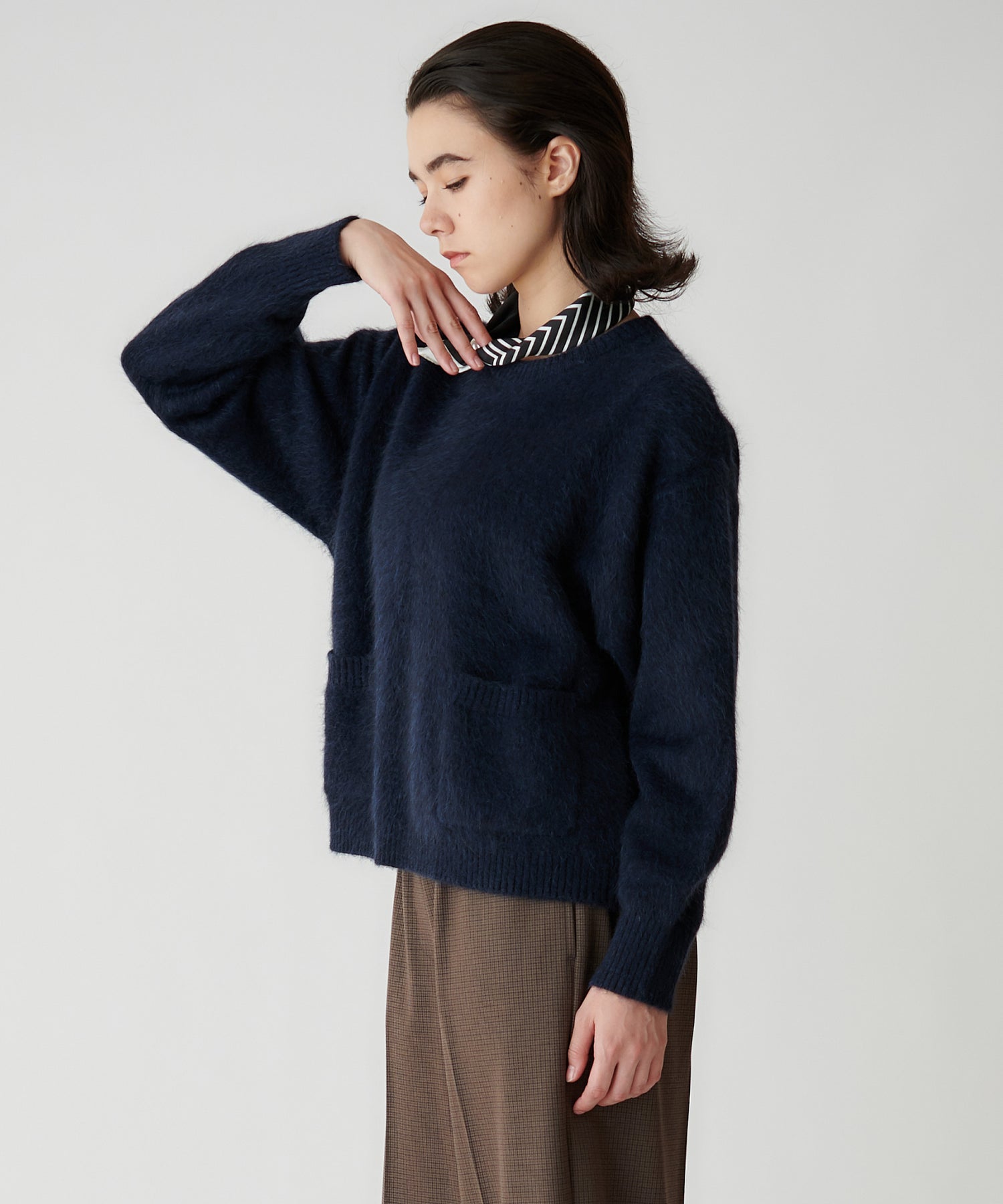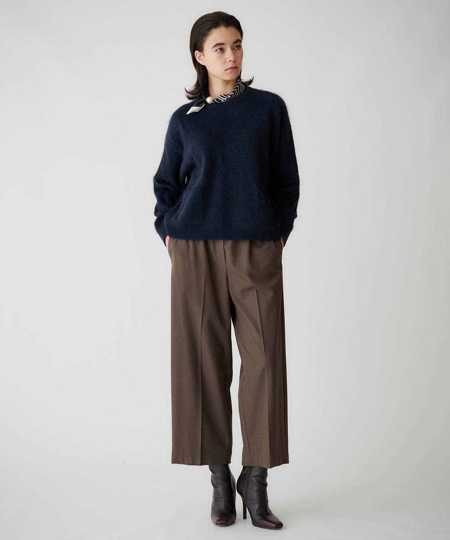 スカーフは柔らかく肌触りの良い生地で、軽やかに巻きやすい仕様。