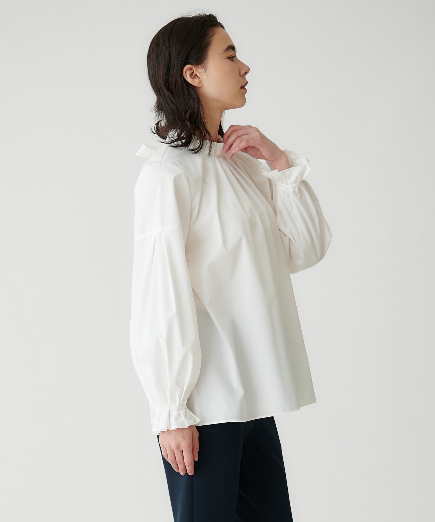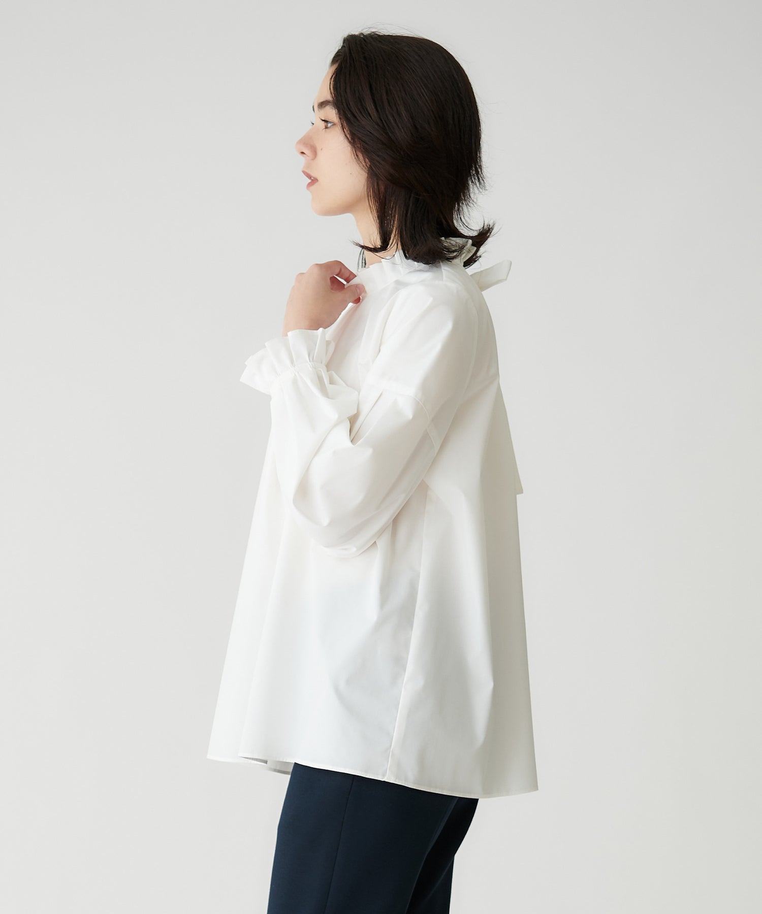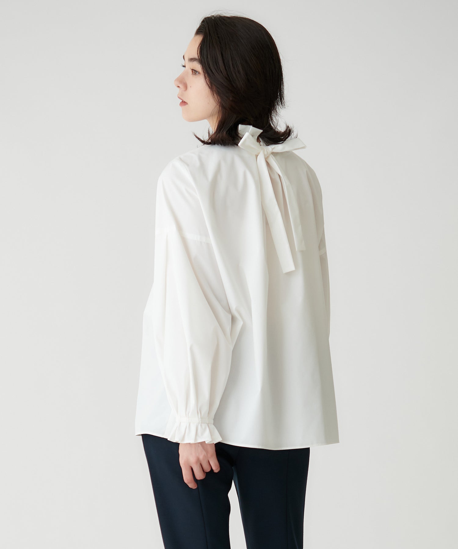 昨年も好評だったフリルスタンド×バックリボンブラウスが、新しくアップデートして登場。