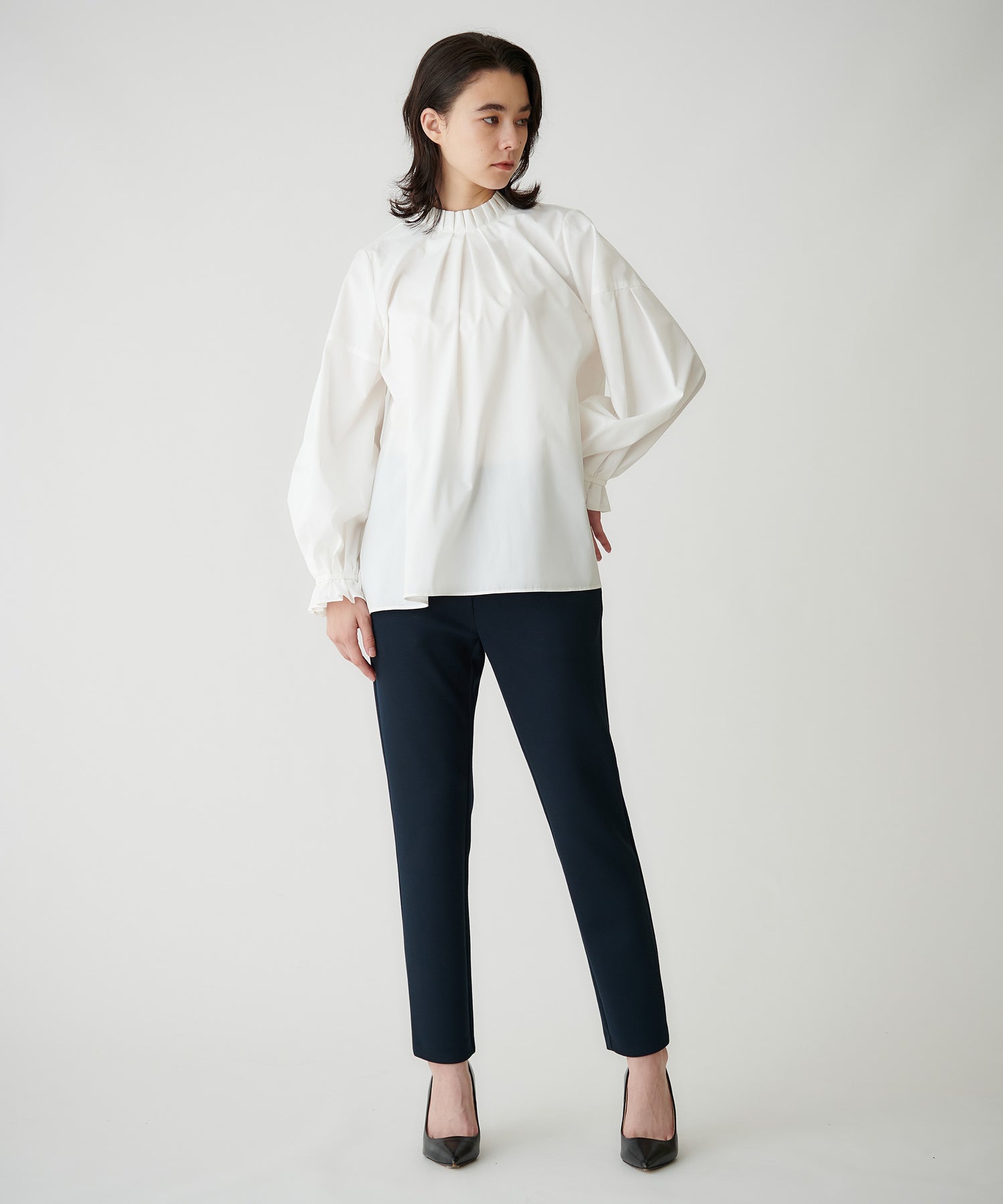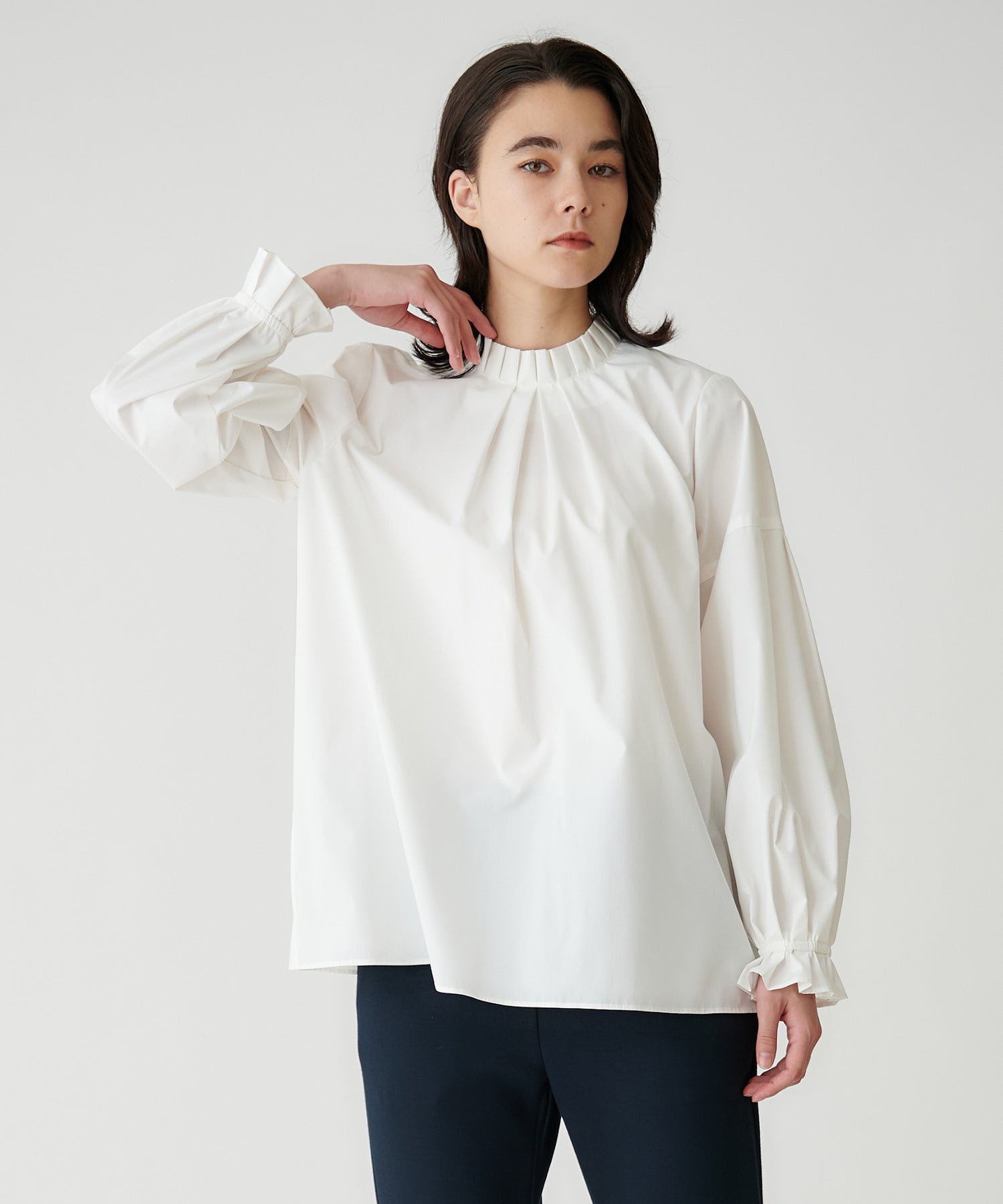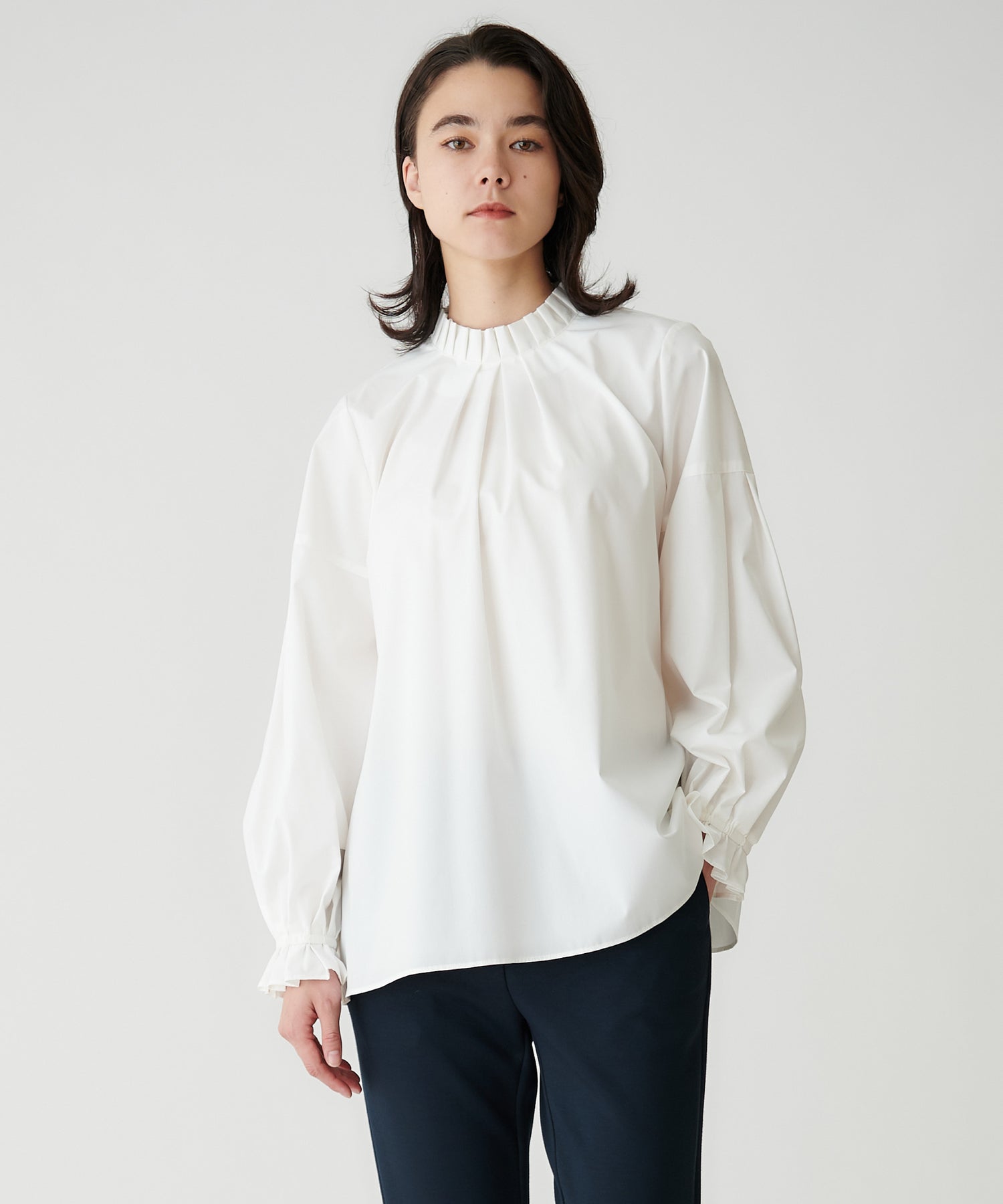 昨年も好評だったフリルスタンド×バックリボンブラウスが、新しくアップデートして登場。