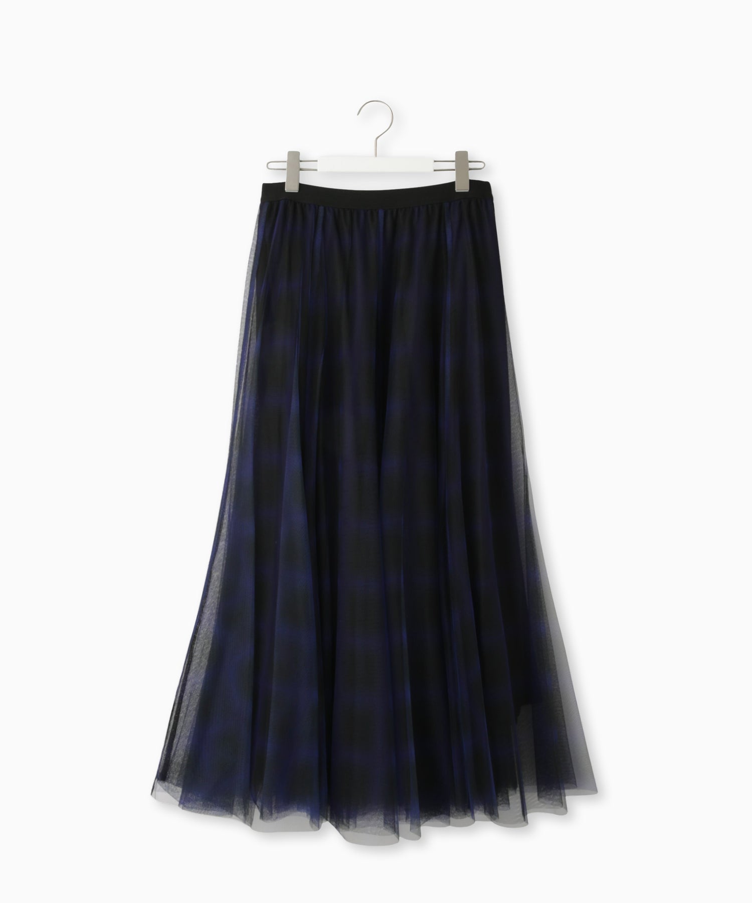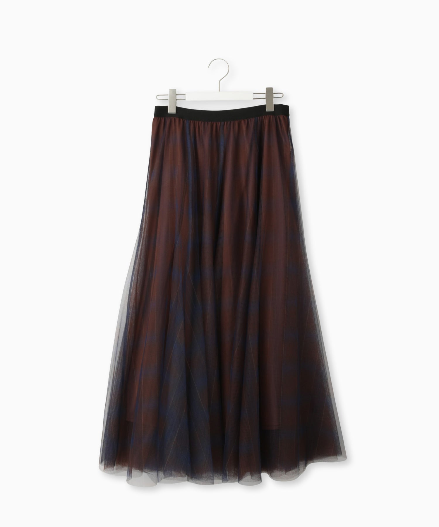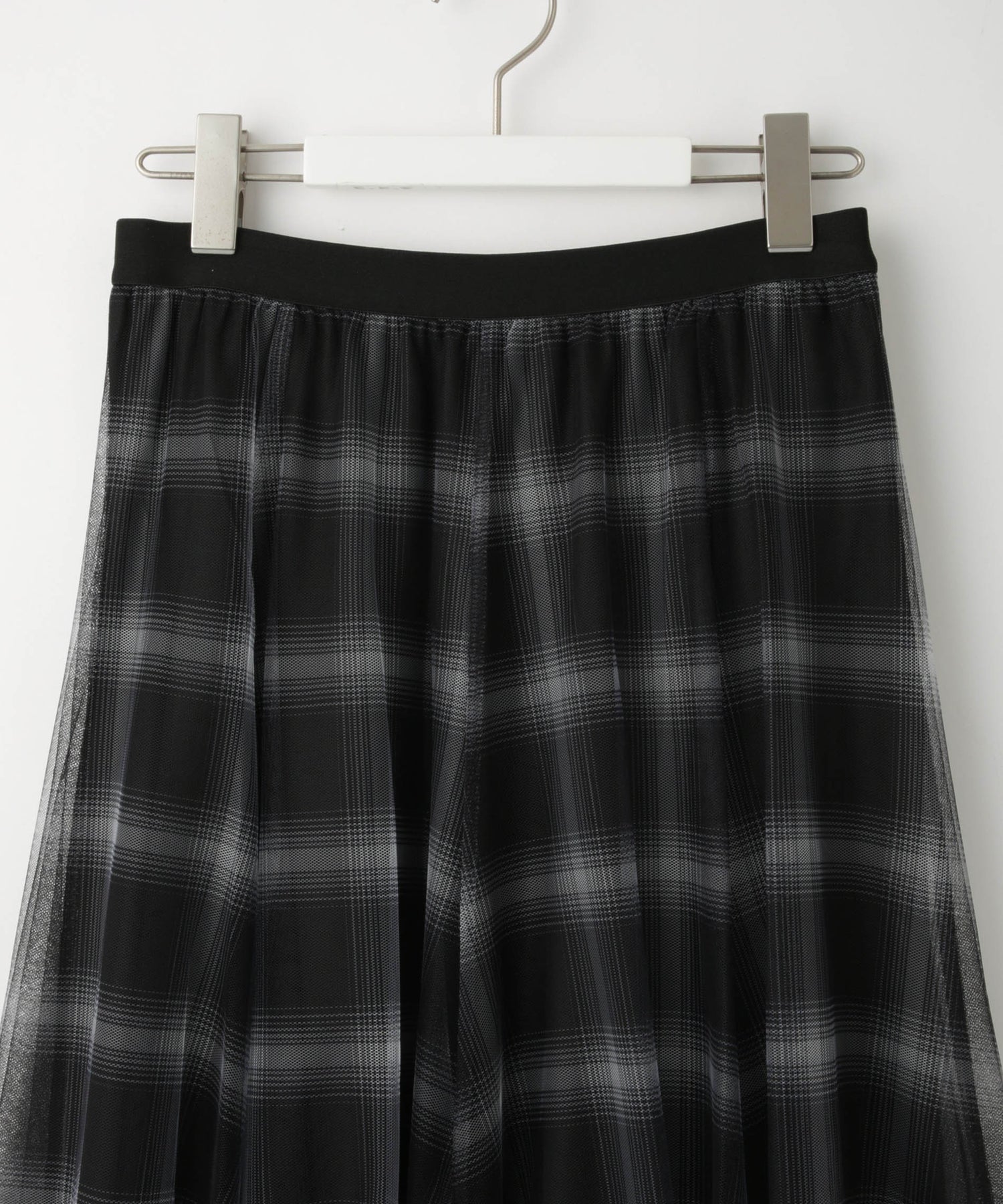 ふんわりと広がるチュールに、チェック柄のスカートを重ねたニュアンスたっぷりのデザイン。軽やかさと柄が組み合わさり、コーデにモード感をプラス。