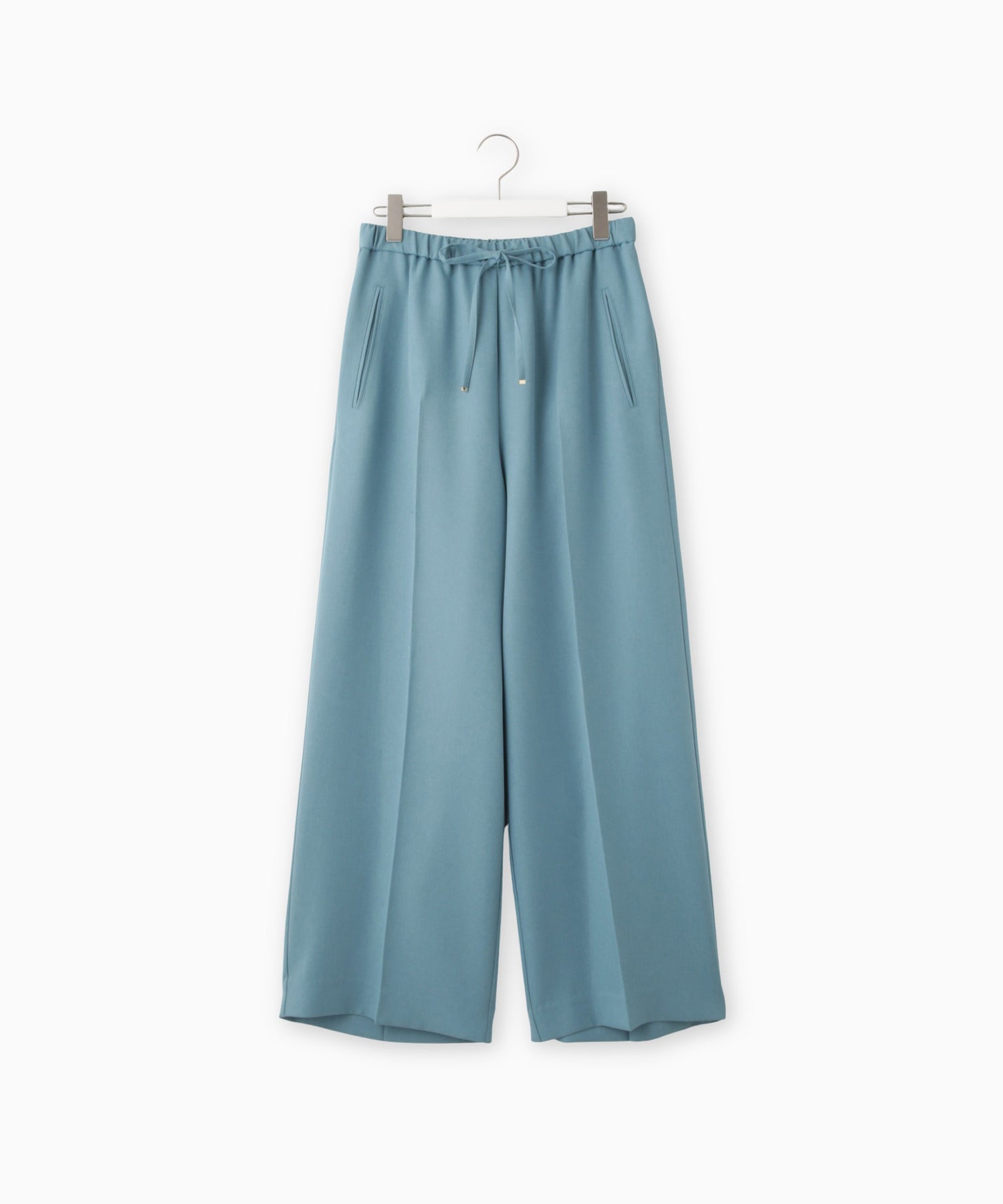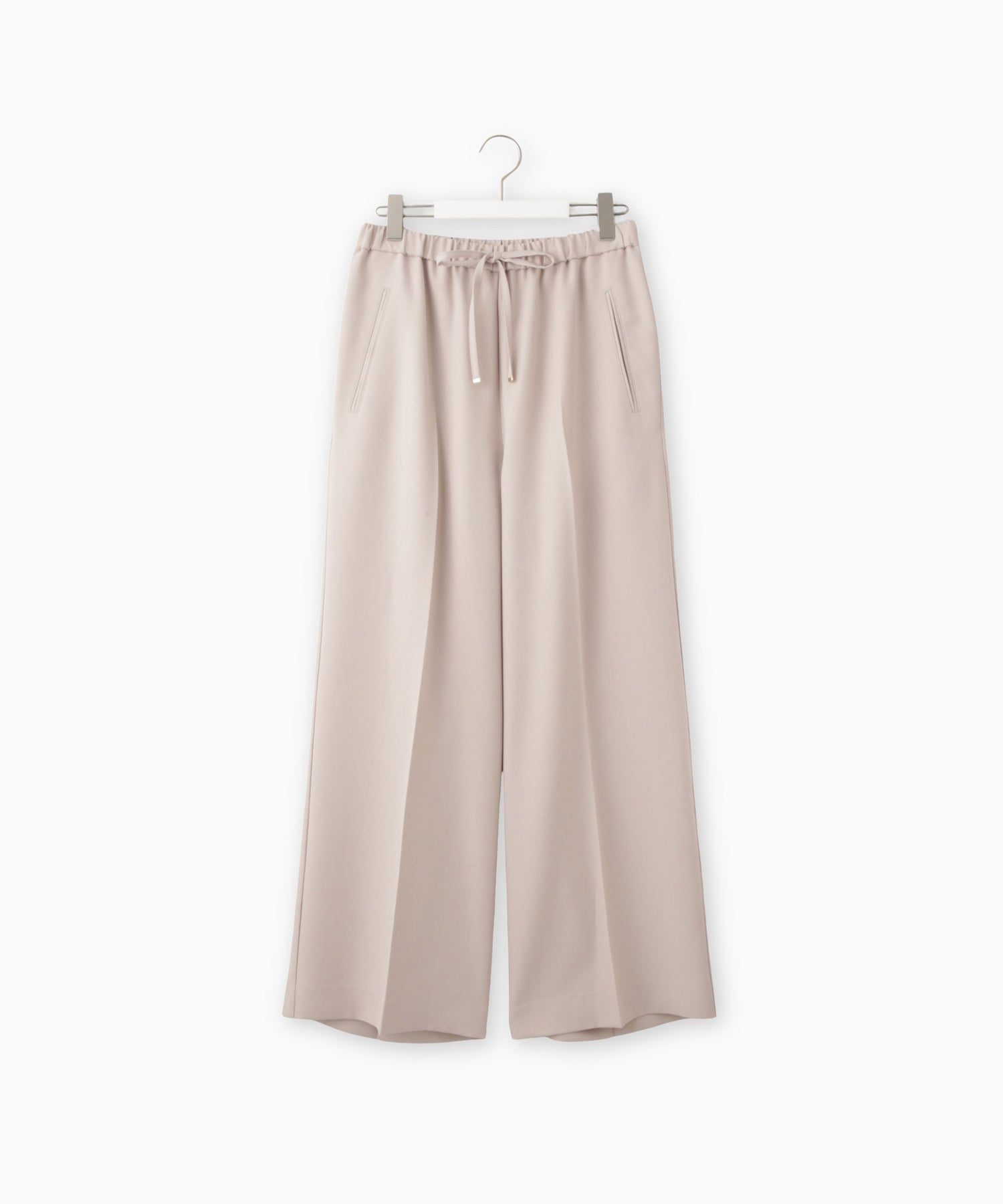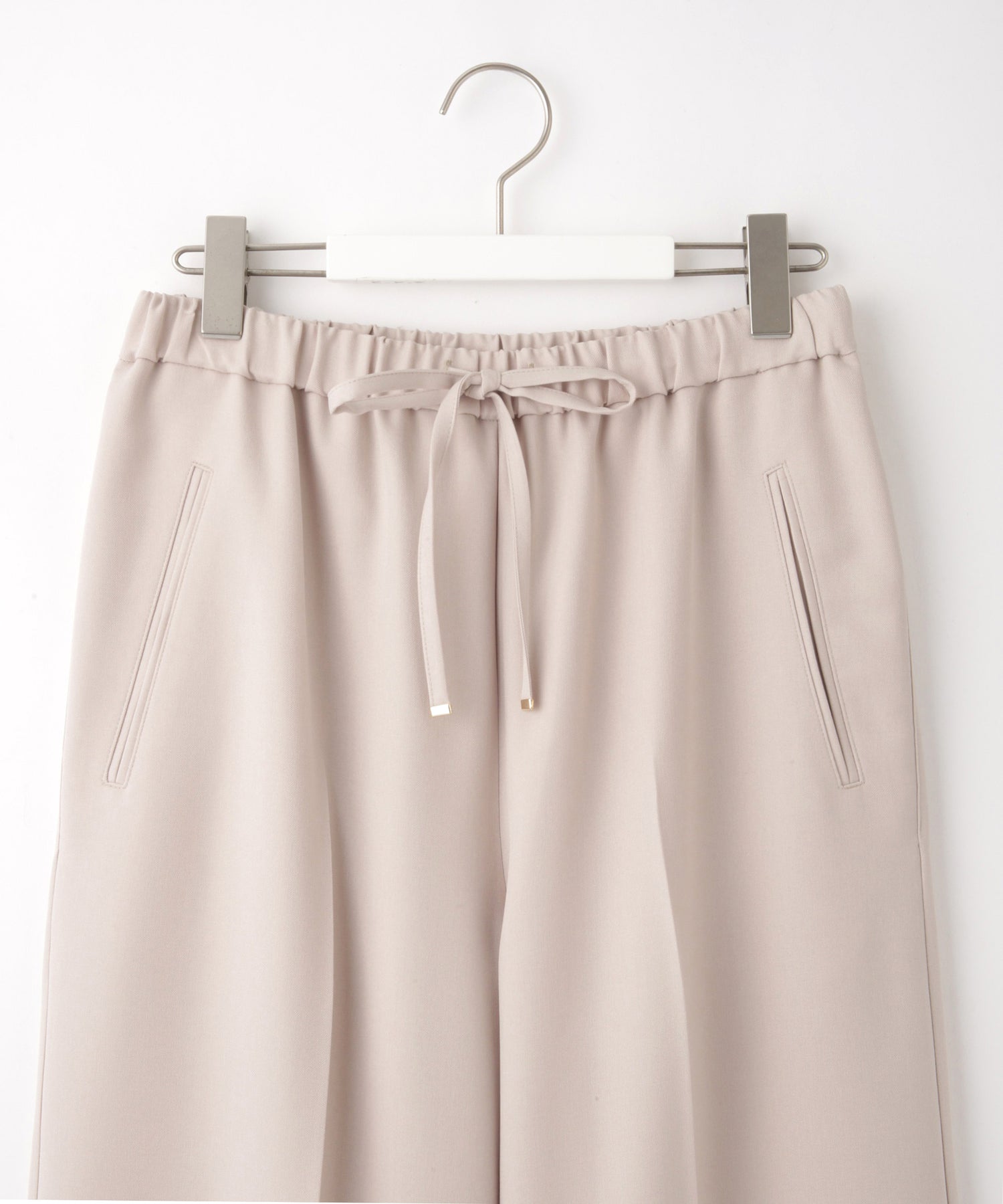 落ち感のあるシルエットが脚のラインを拾わず、すらりとした美脚効果を叶えます。ウエストはドローストリング仕様で、リラックス感ときちんと感を両立したデザインです。