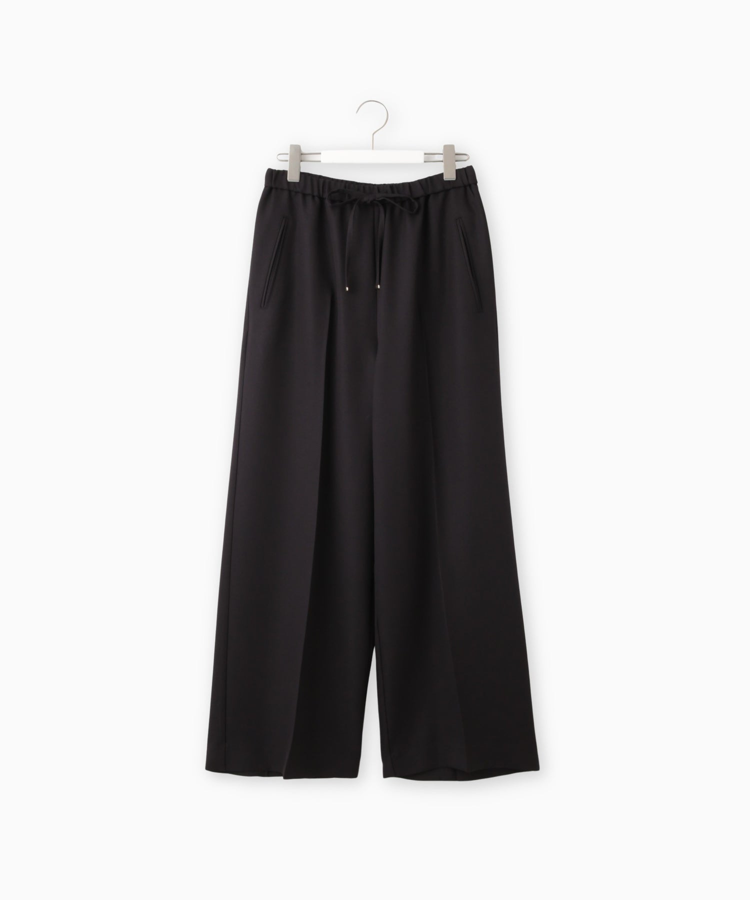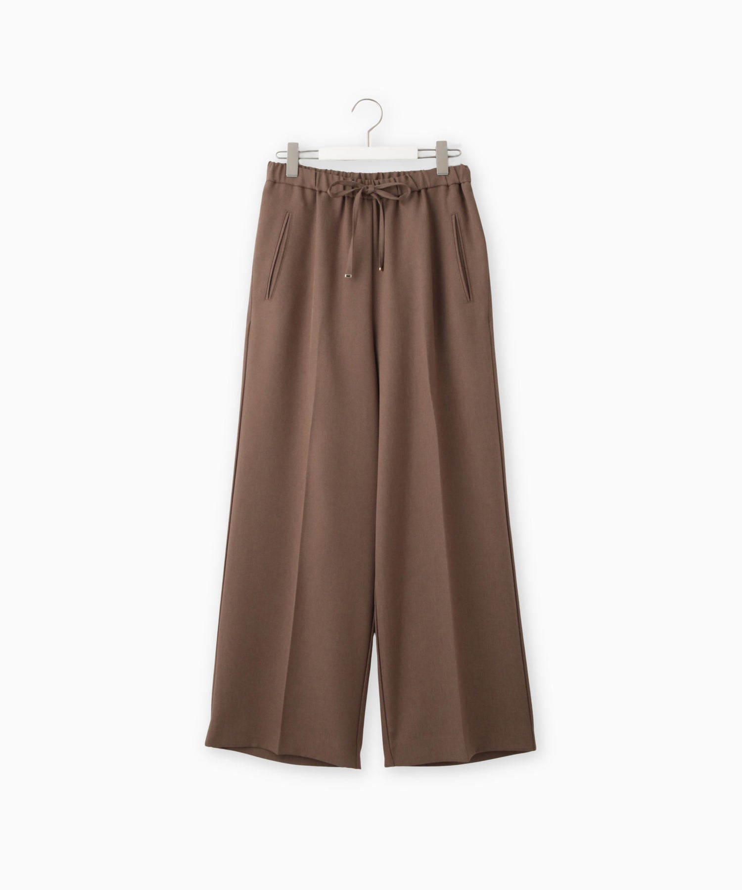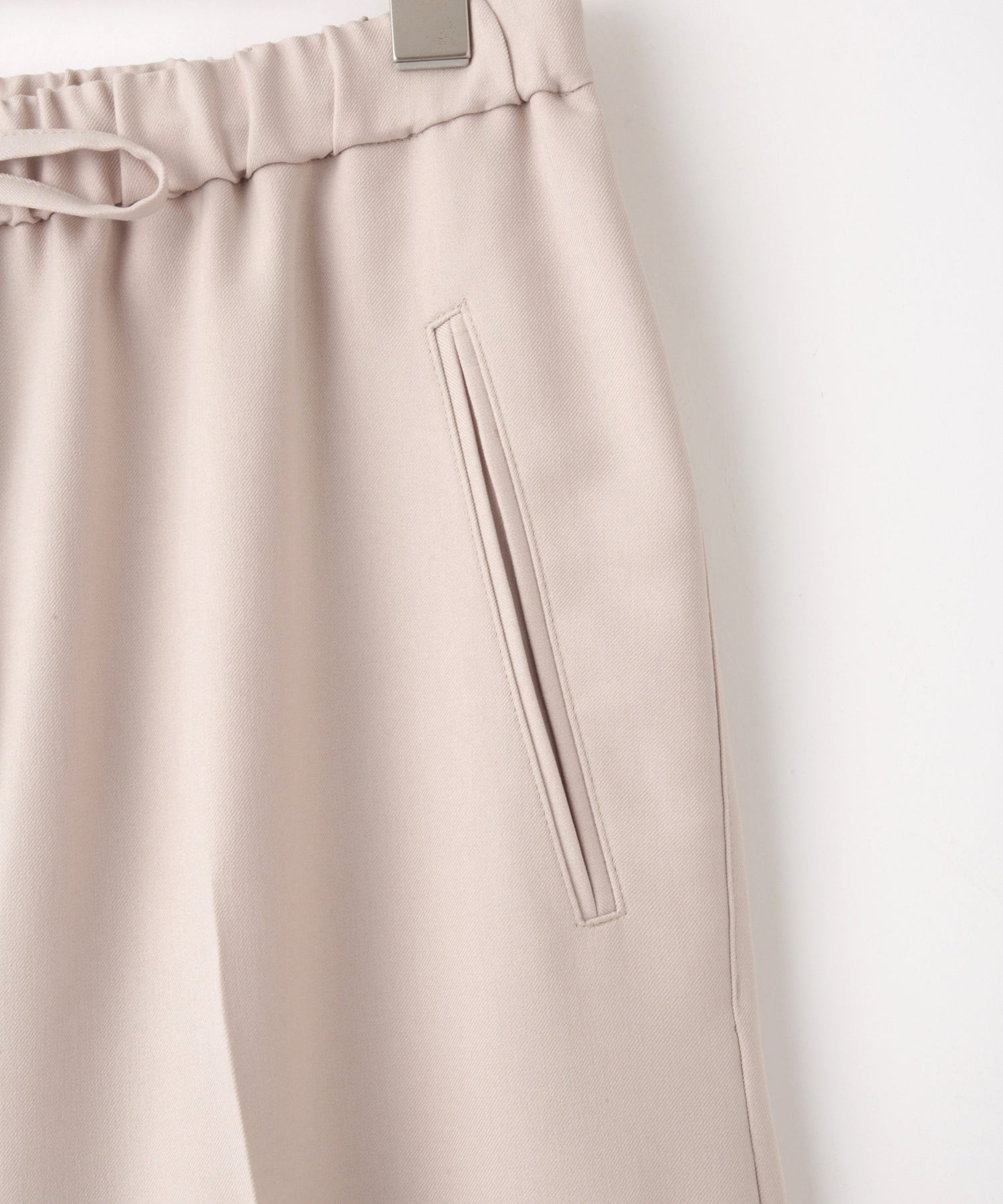 落ち感のあるシルエットが脚のラインを拾わず、すらりとした美脚効果を叶えます。ウエストはドローストリング仕様で、リラックス感ときちんと感を両立したデザインです。
