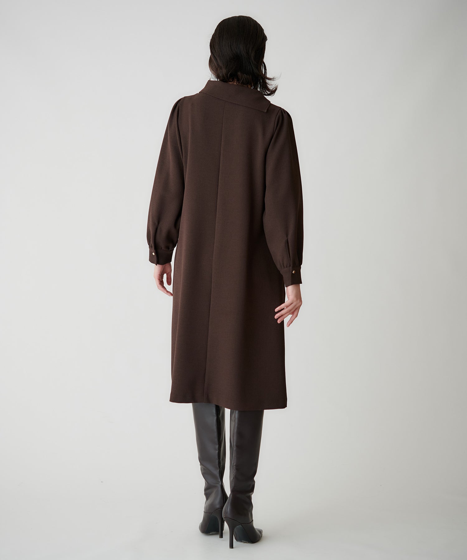 ロングブーツを合わせれば、シンプルながら存在感のあるスタイルに。
