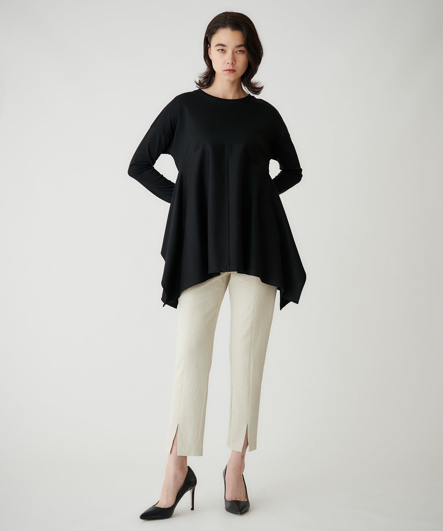昨年も大好評だった、一枚で着映えるヘムライントップス。