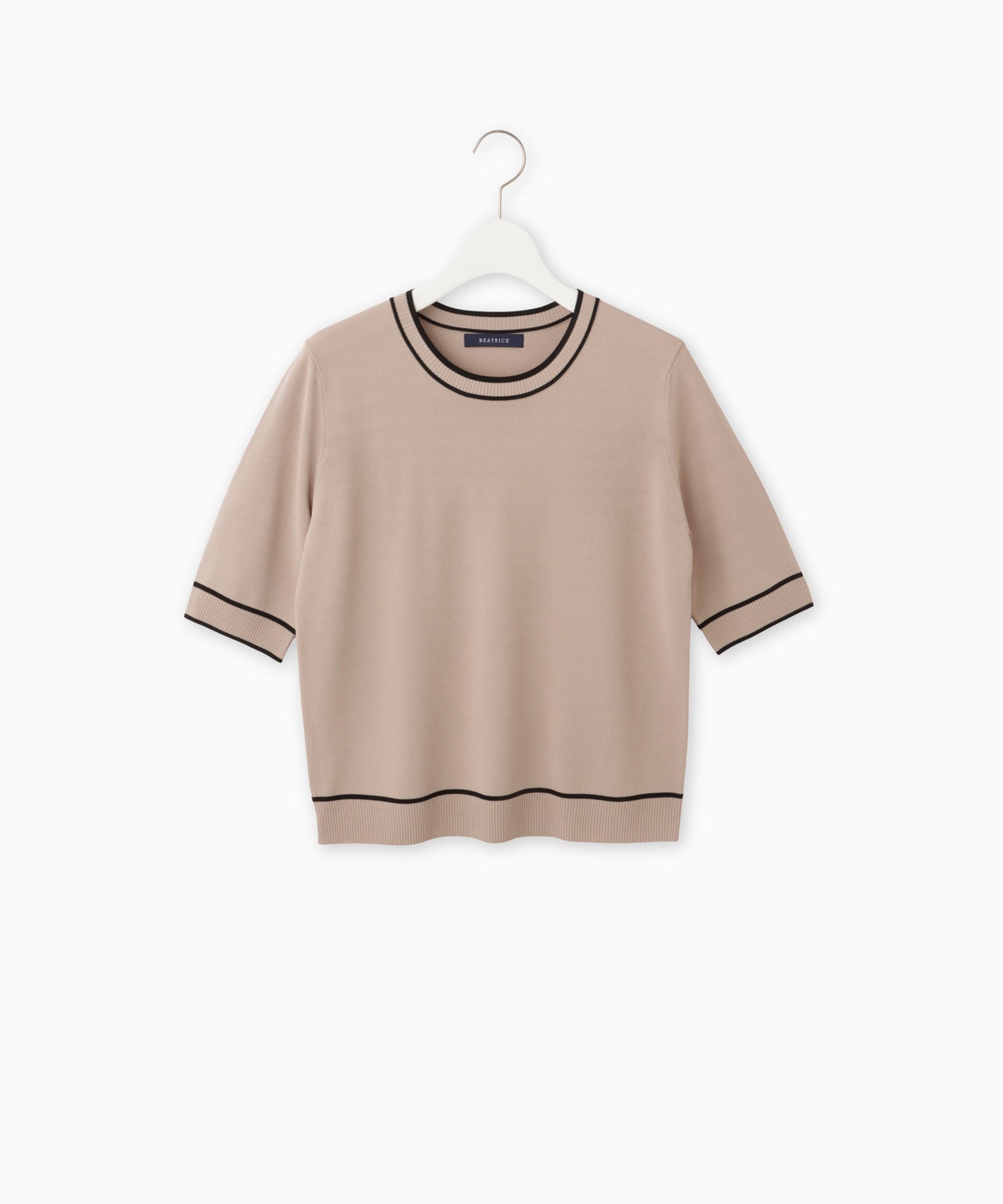 ダブルラインがさりげないアクセントになる五分袖プルオーバー。