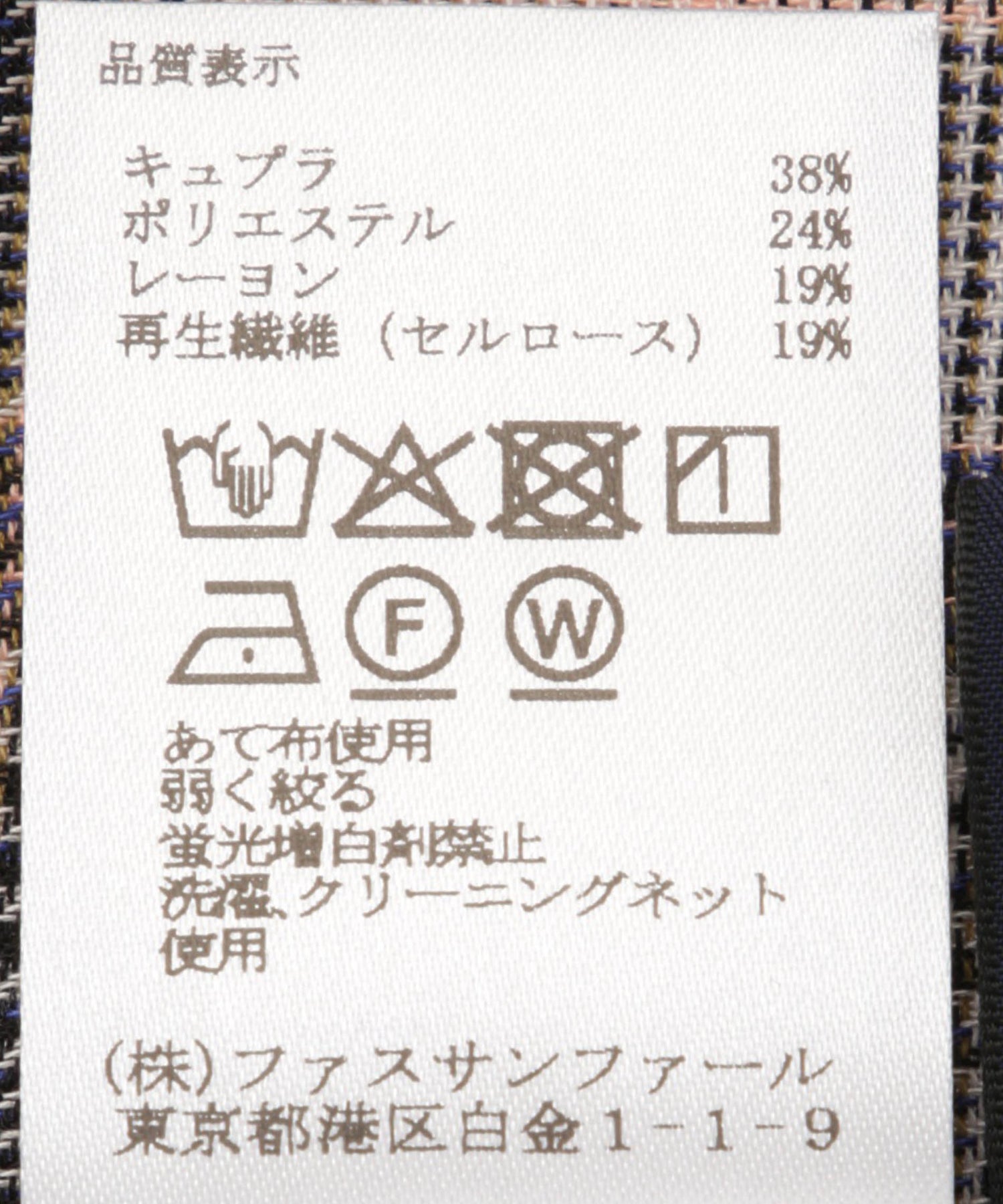 【素材】キュプラ38% ポリエステル24% 再生繊維(セルロース)19% レーヨン19%