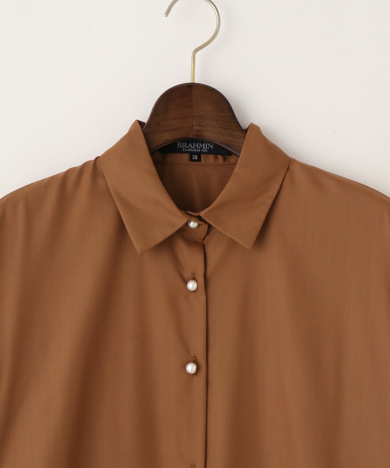サラリとした肌ざわりに、ほんのり起毛感のあるピーチタッチが心地よい、ブラーミン定番素材を使用したブラウス。