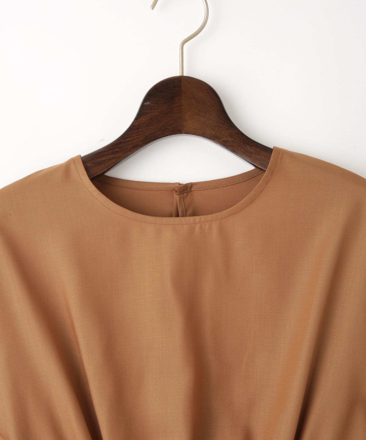 背中にはギャザーを施し、ふんわりとしたシルエットで後ろ姿にも華やぎをプラス。