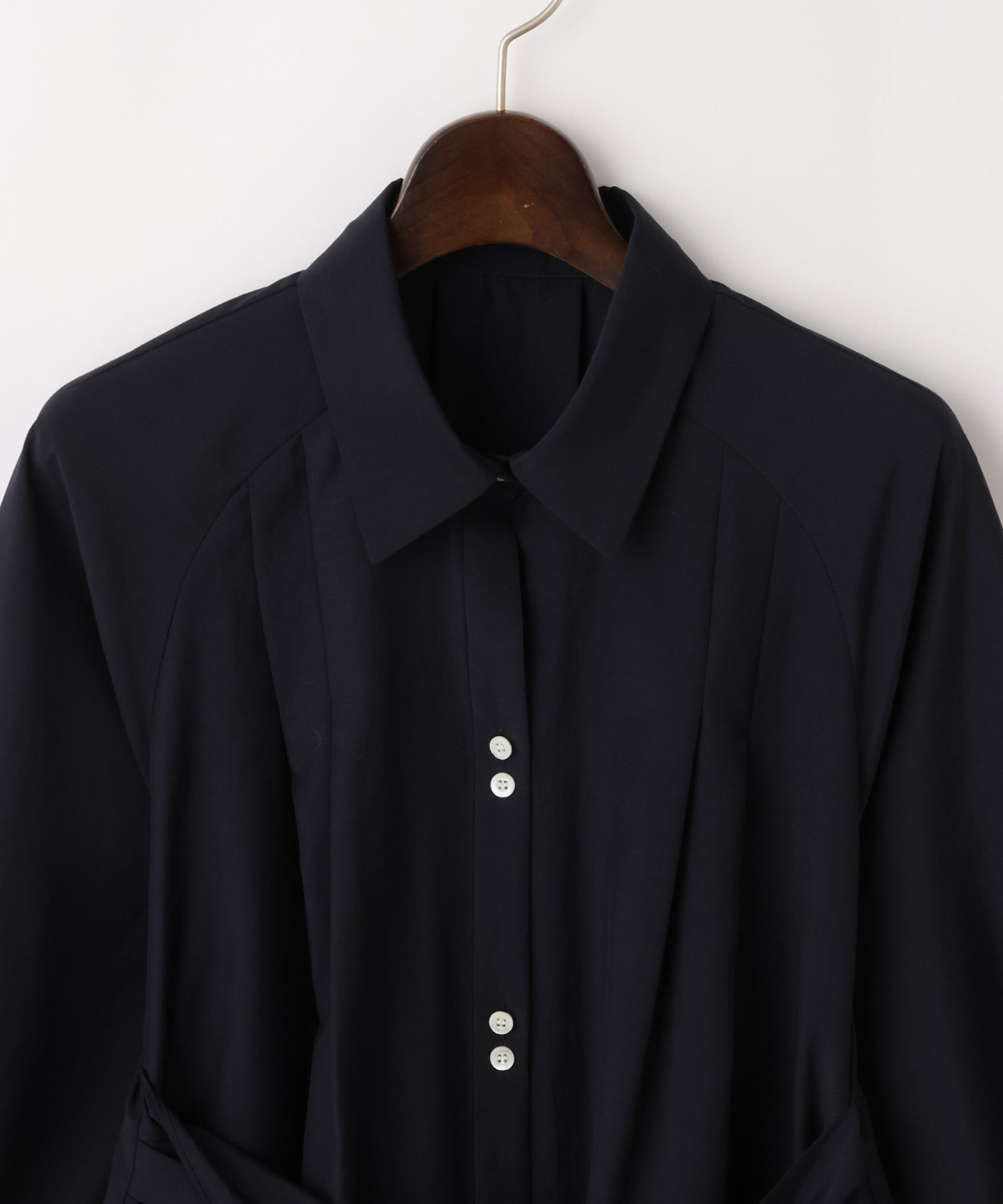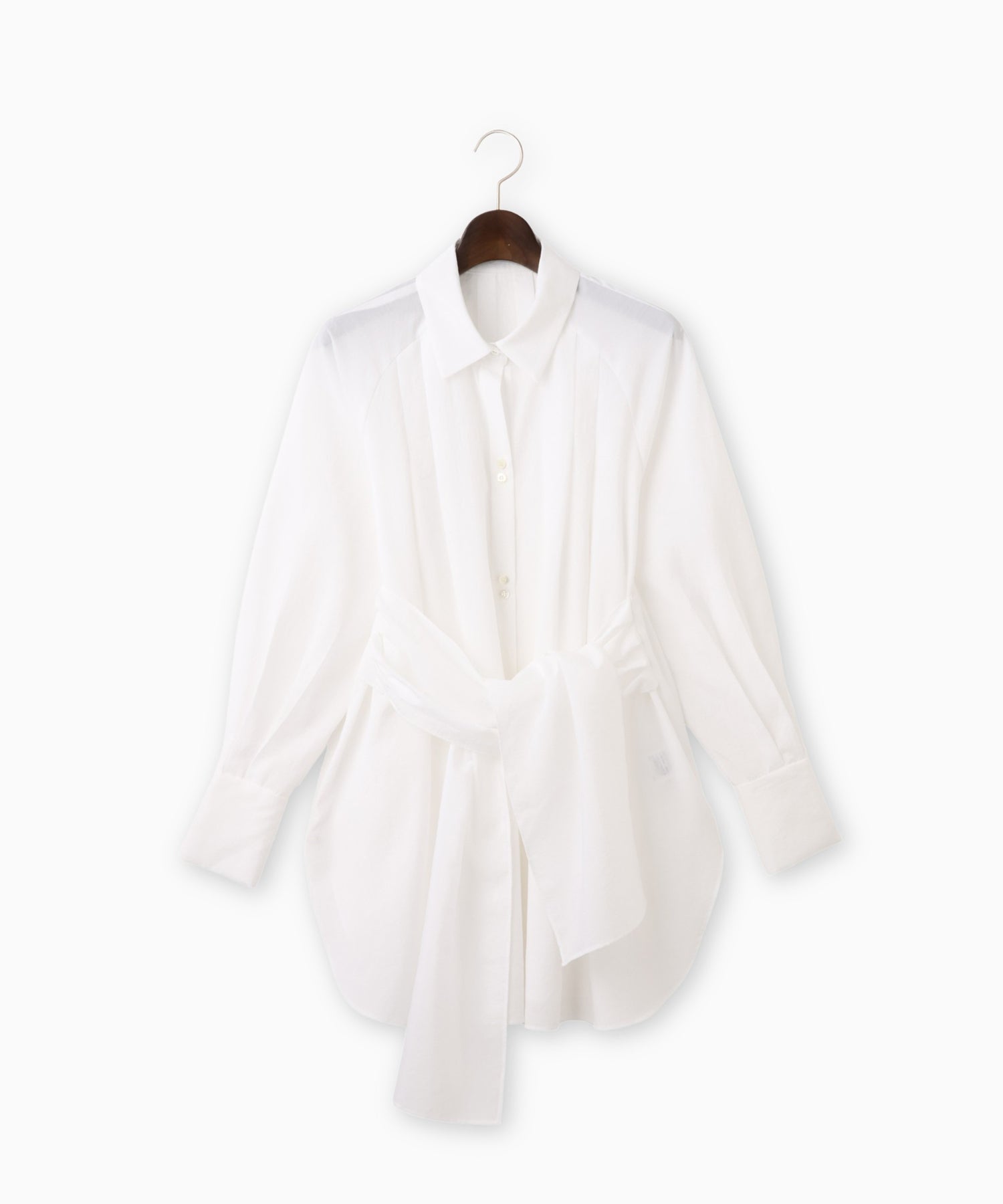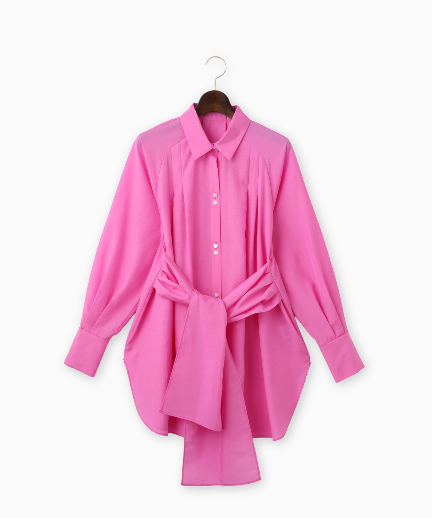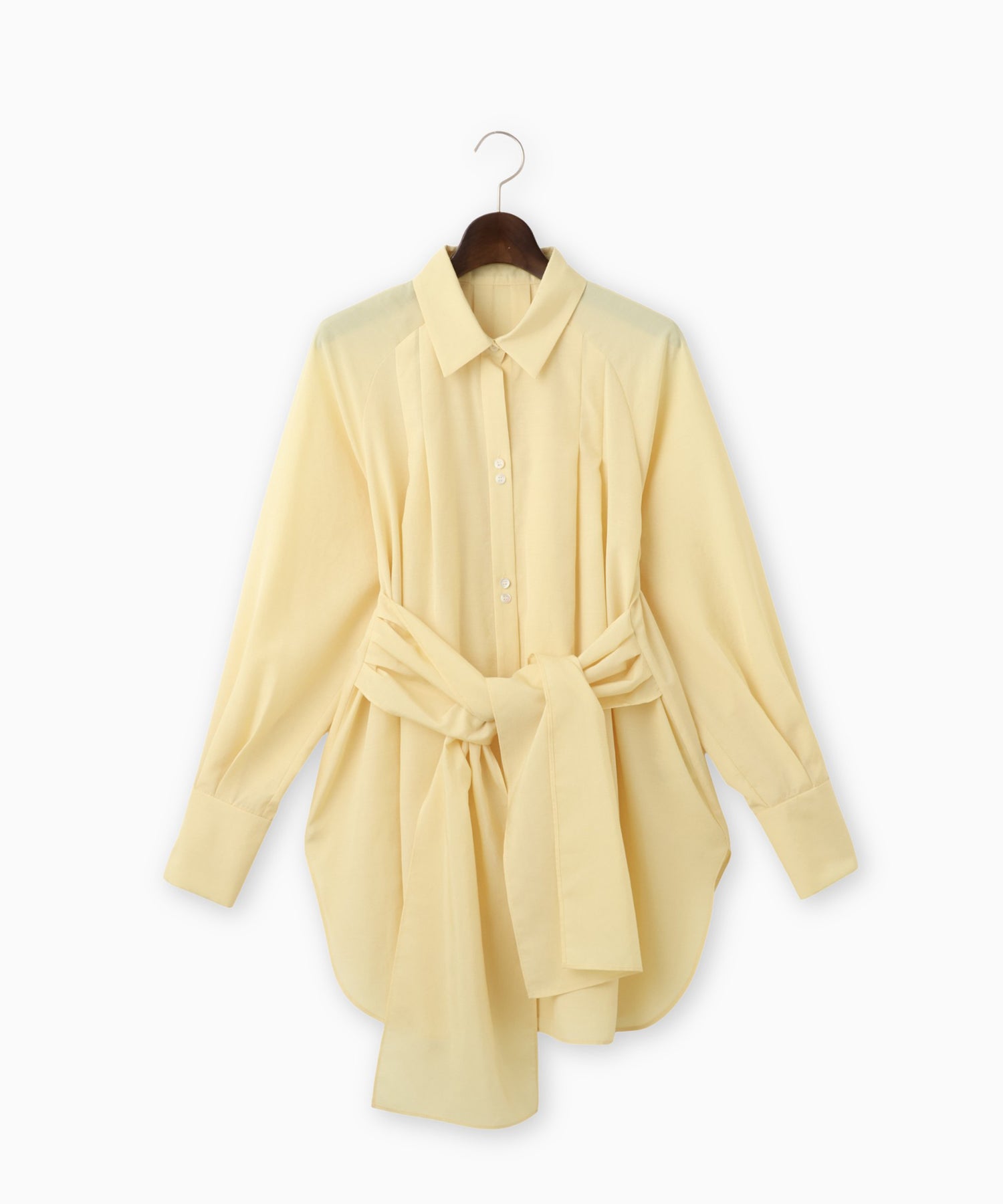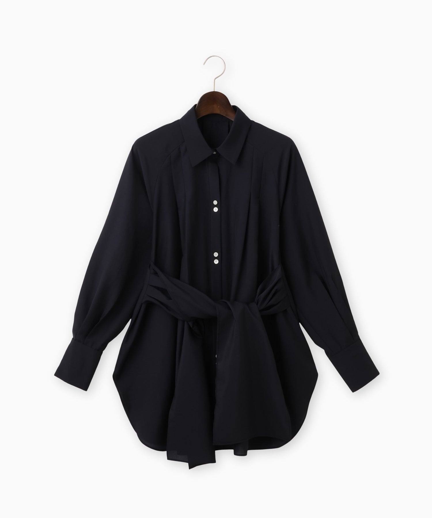 上品な印象を与えるシャツにウエストラップデザインを取り入れたチュニックシャツ。