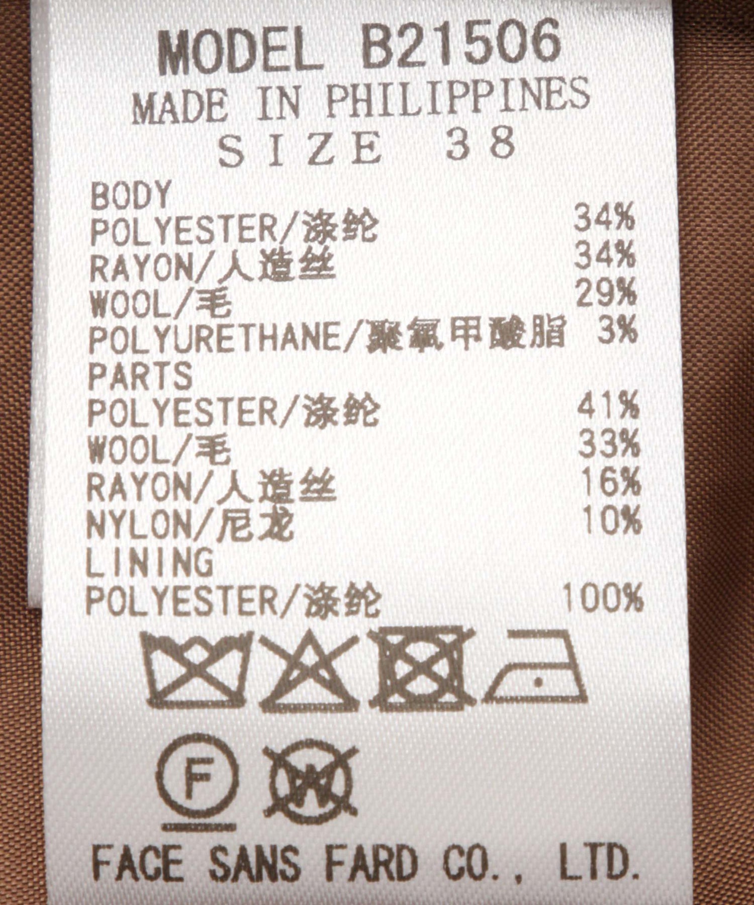 【素材】表地:ポリエステル34% レーヨ34% 毛29% ポリウレタン3%