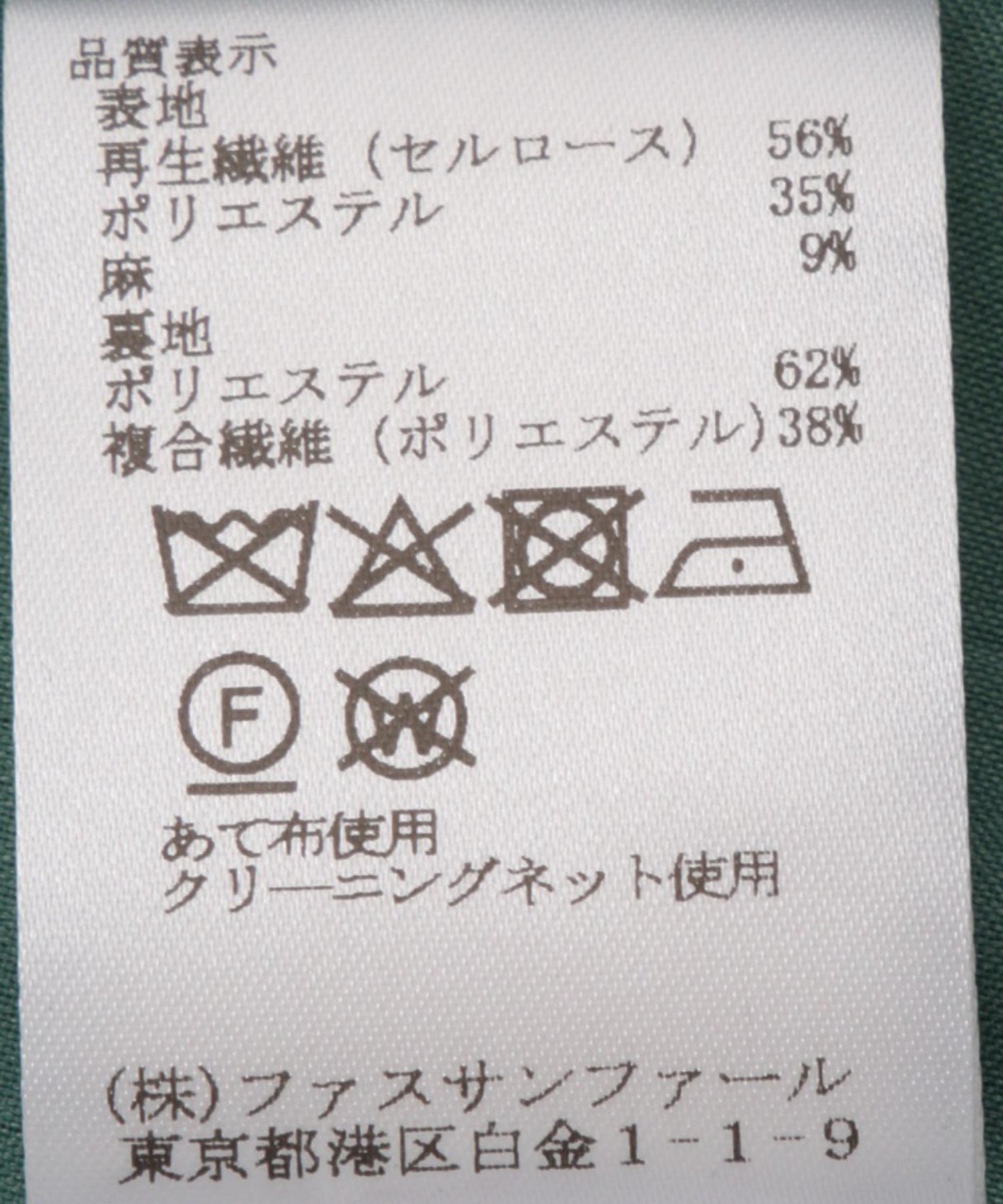 裏地:ポリエステル62% 複合繊維(ポリエステル)38%