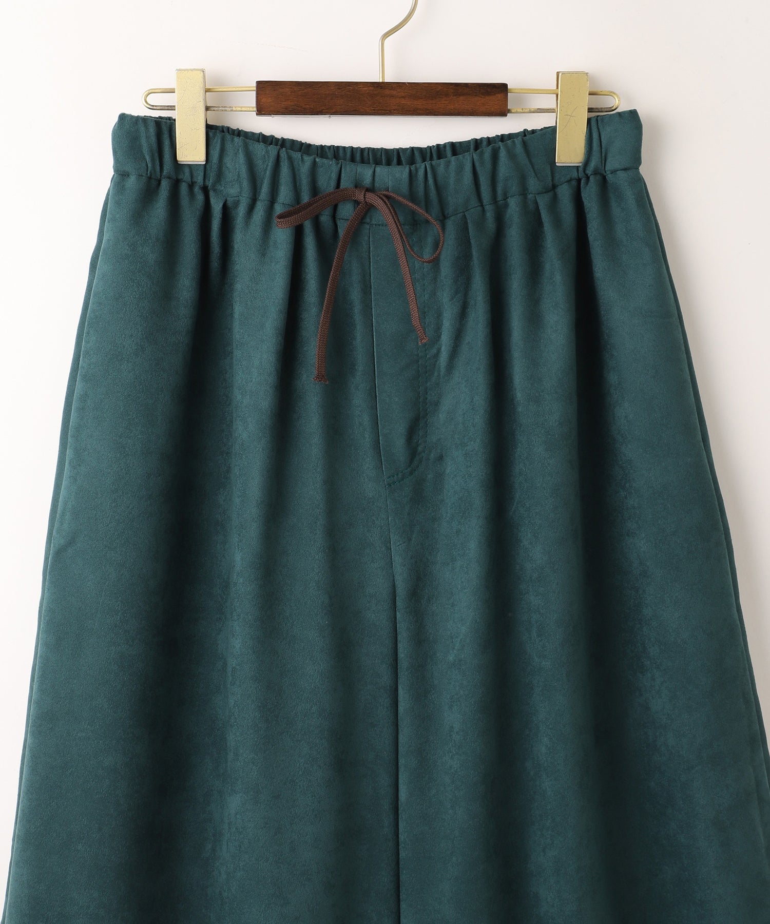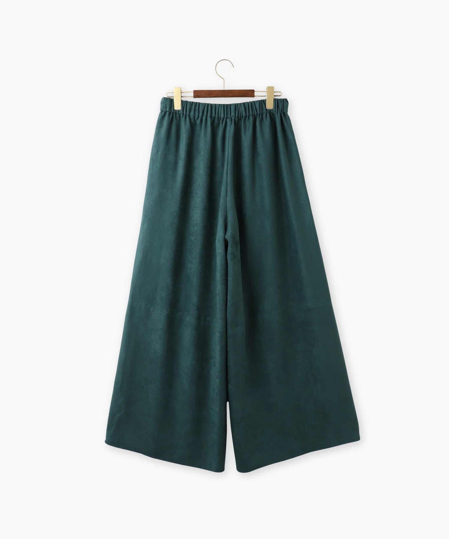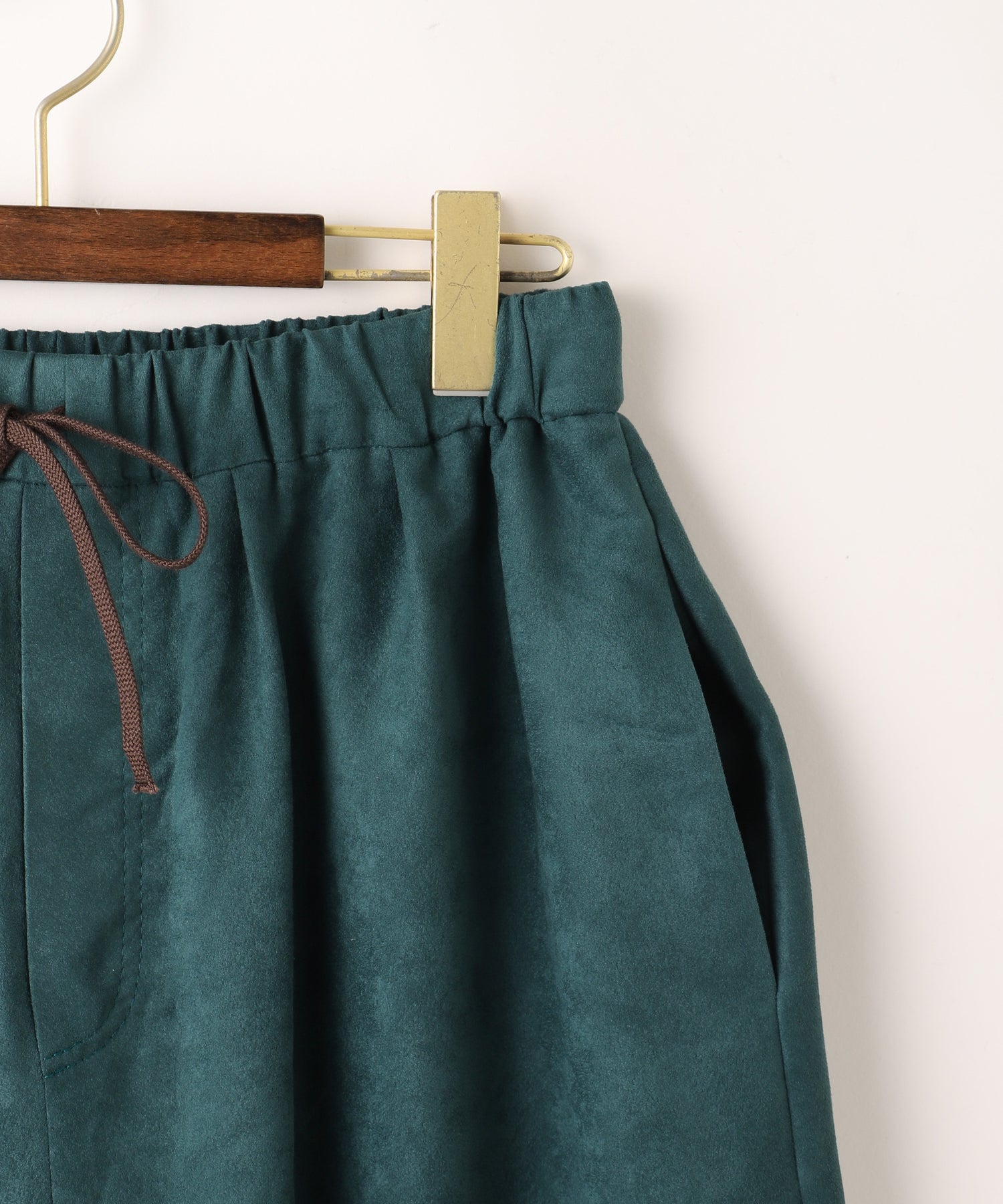 日本製のフェイクスエードは、ポリウレタン不使用のナチュラルストレッチで、ジャージのような快適な着心地。