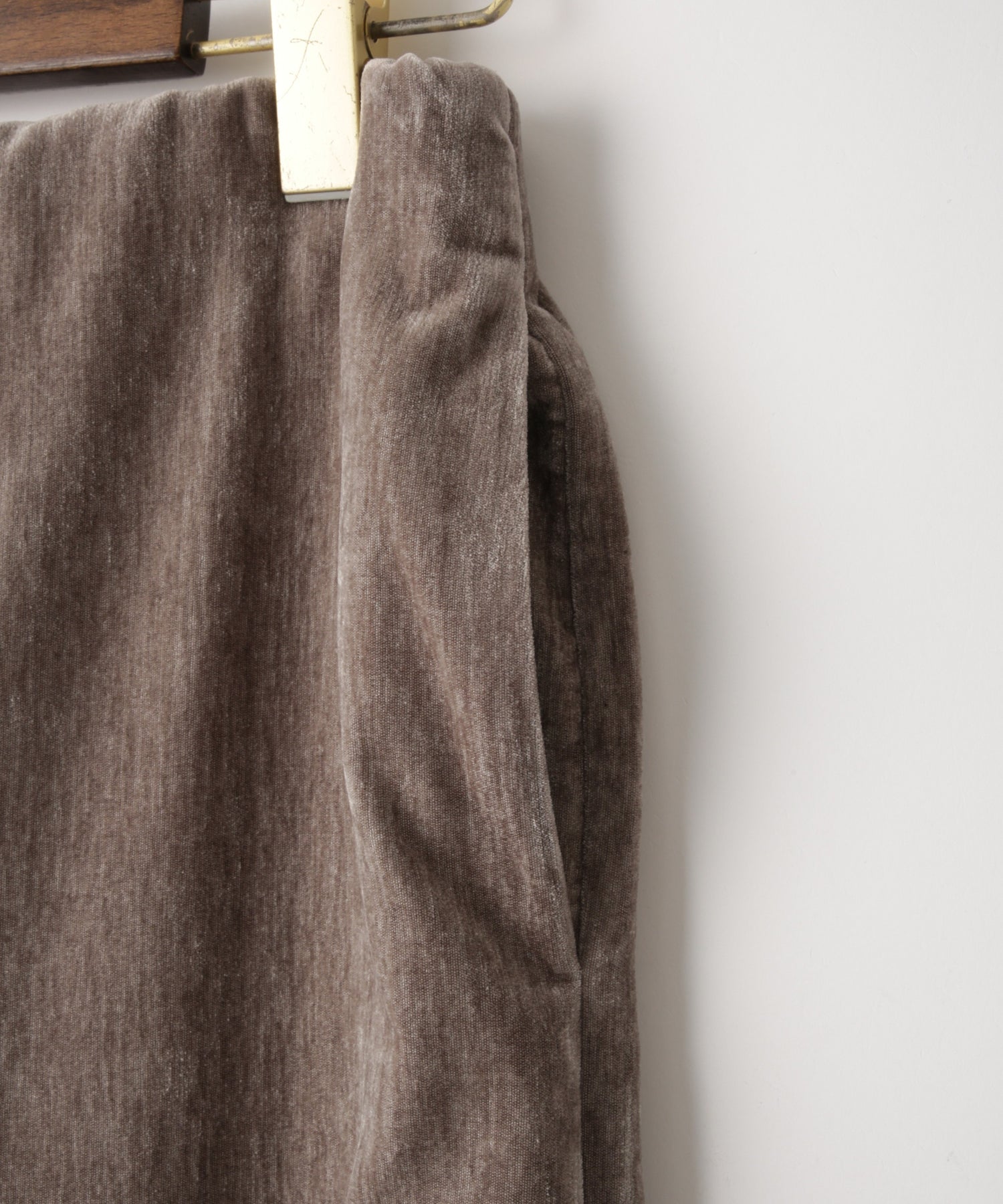 ウエストはゴム仕様でストレスフリーな履き心地ながら、微光沢のある素材感が上品な印象を与えてくれます。