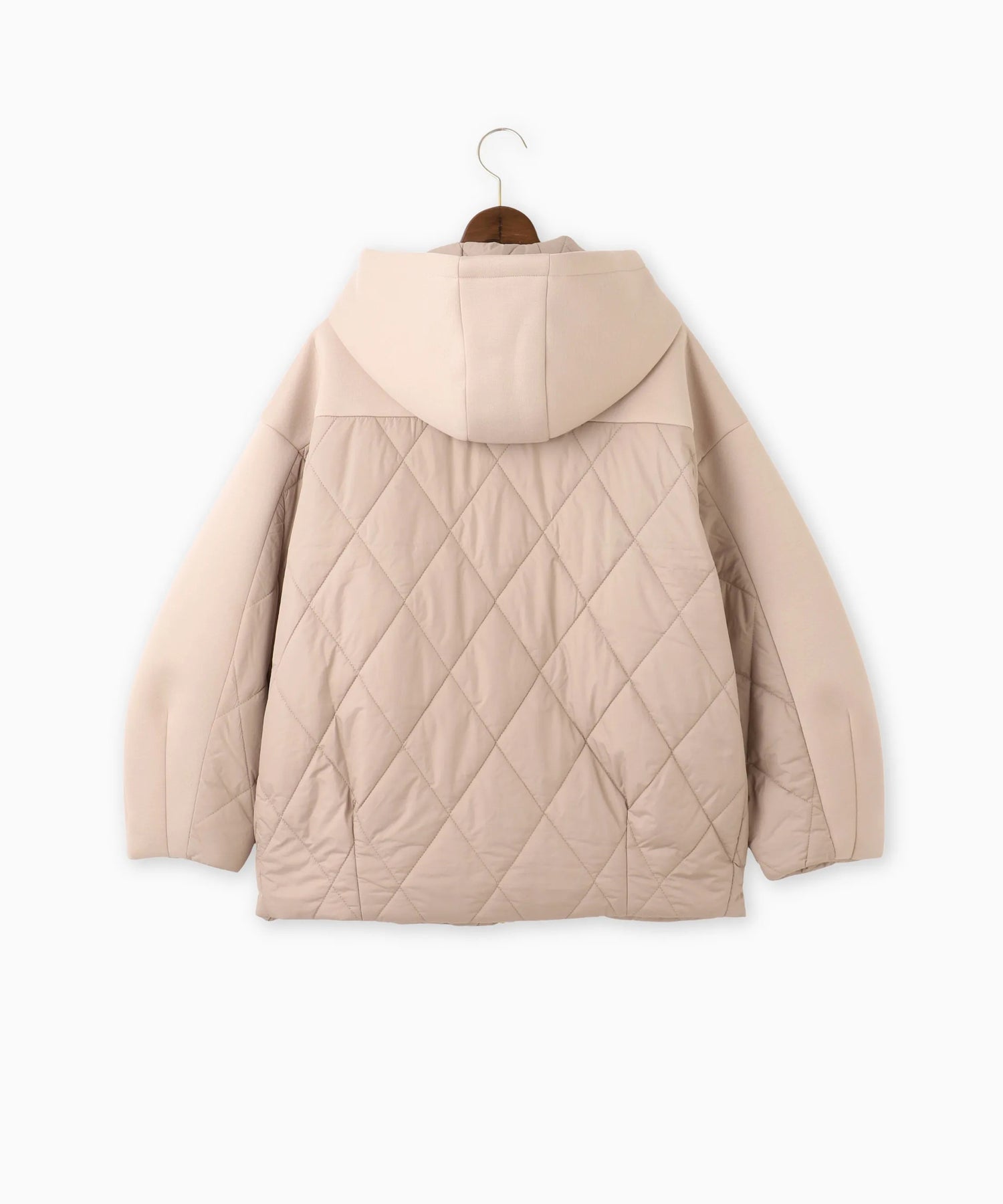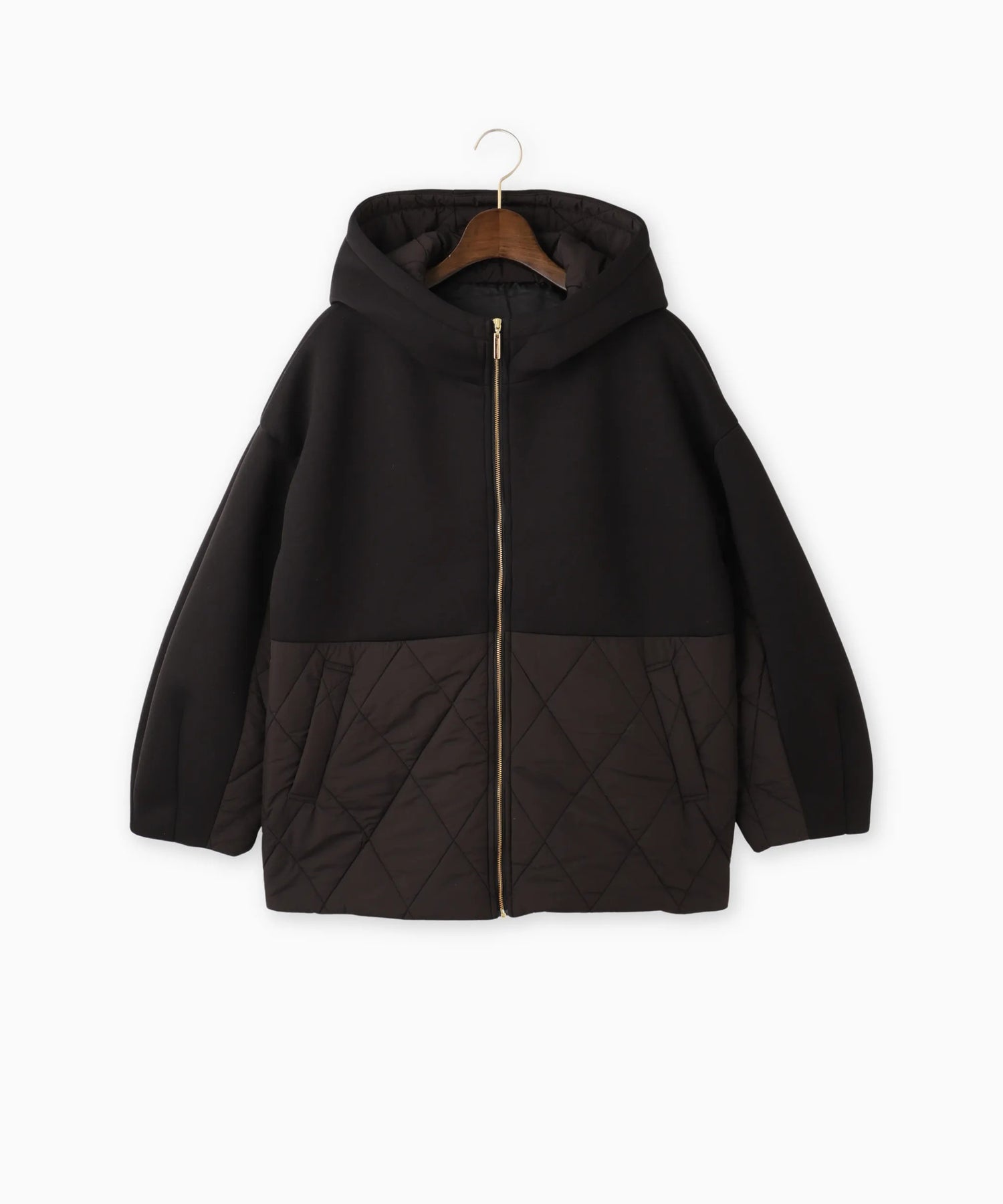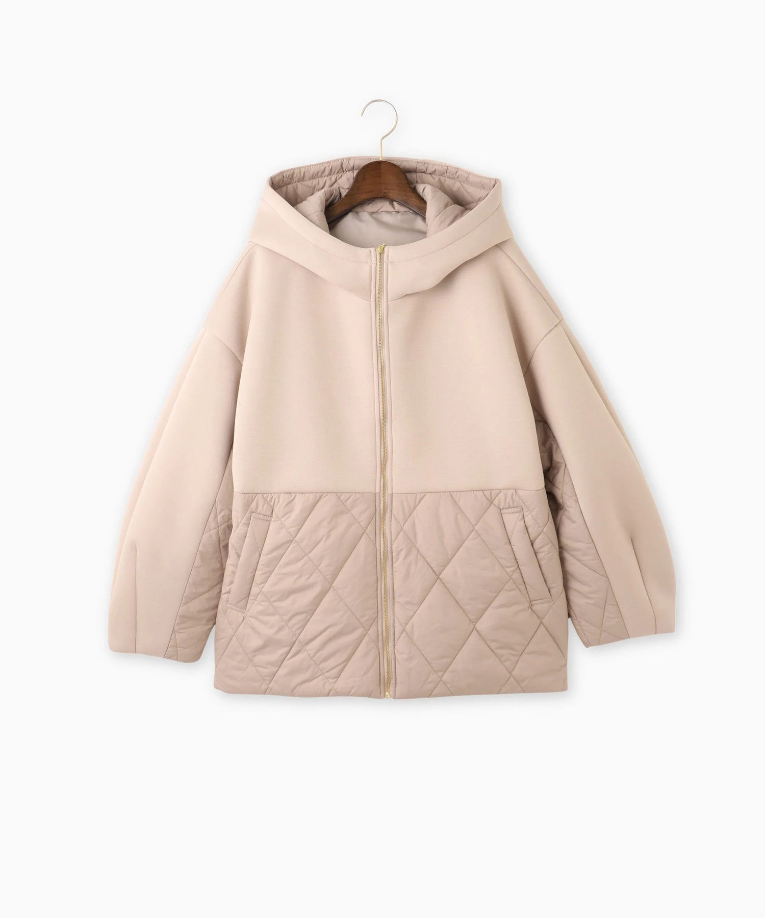 異素材の組み合わせが目を惹く、ボンディング素材と中綿入りキルティングをドッキングしたデザインアイテム。