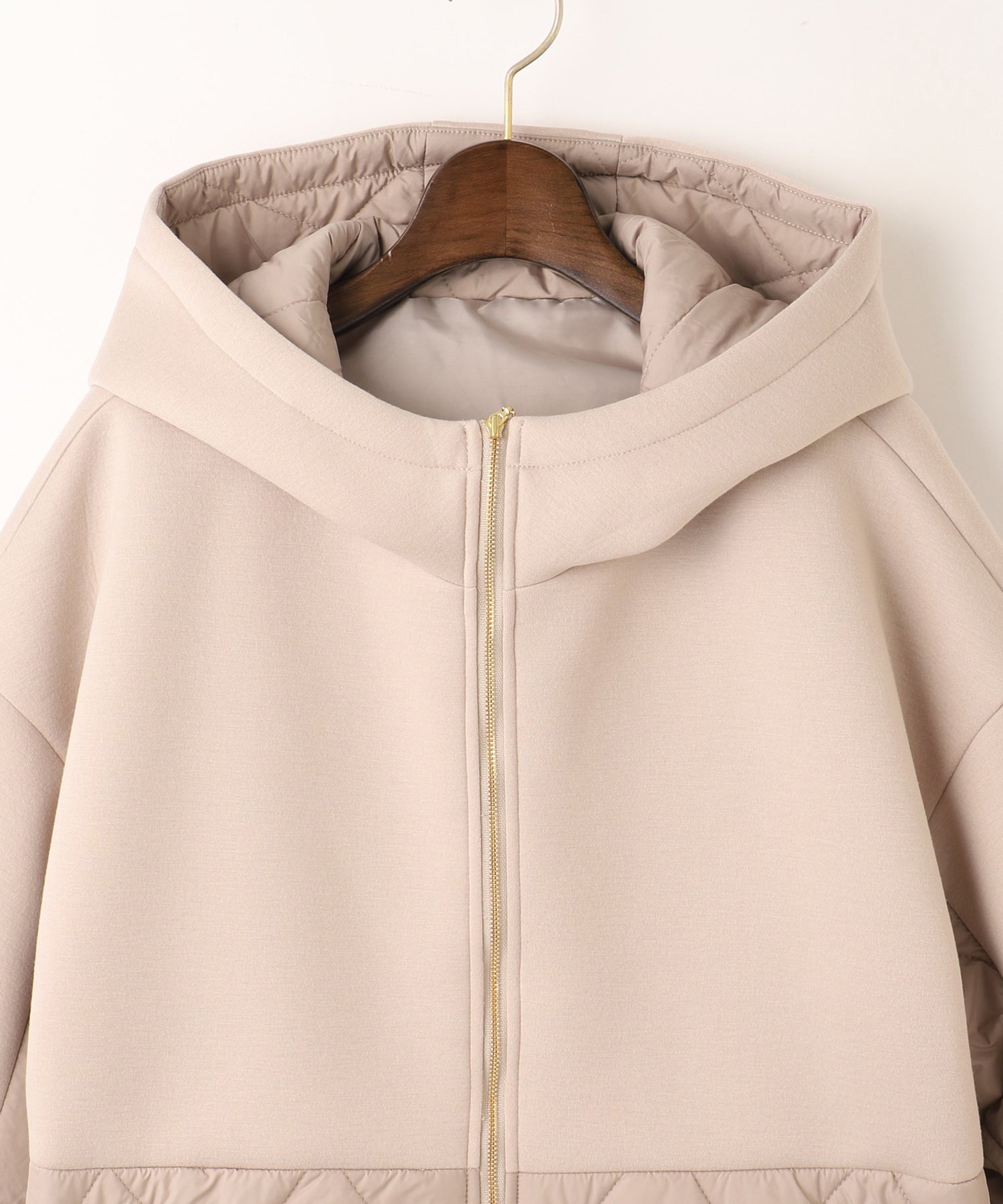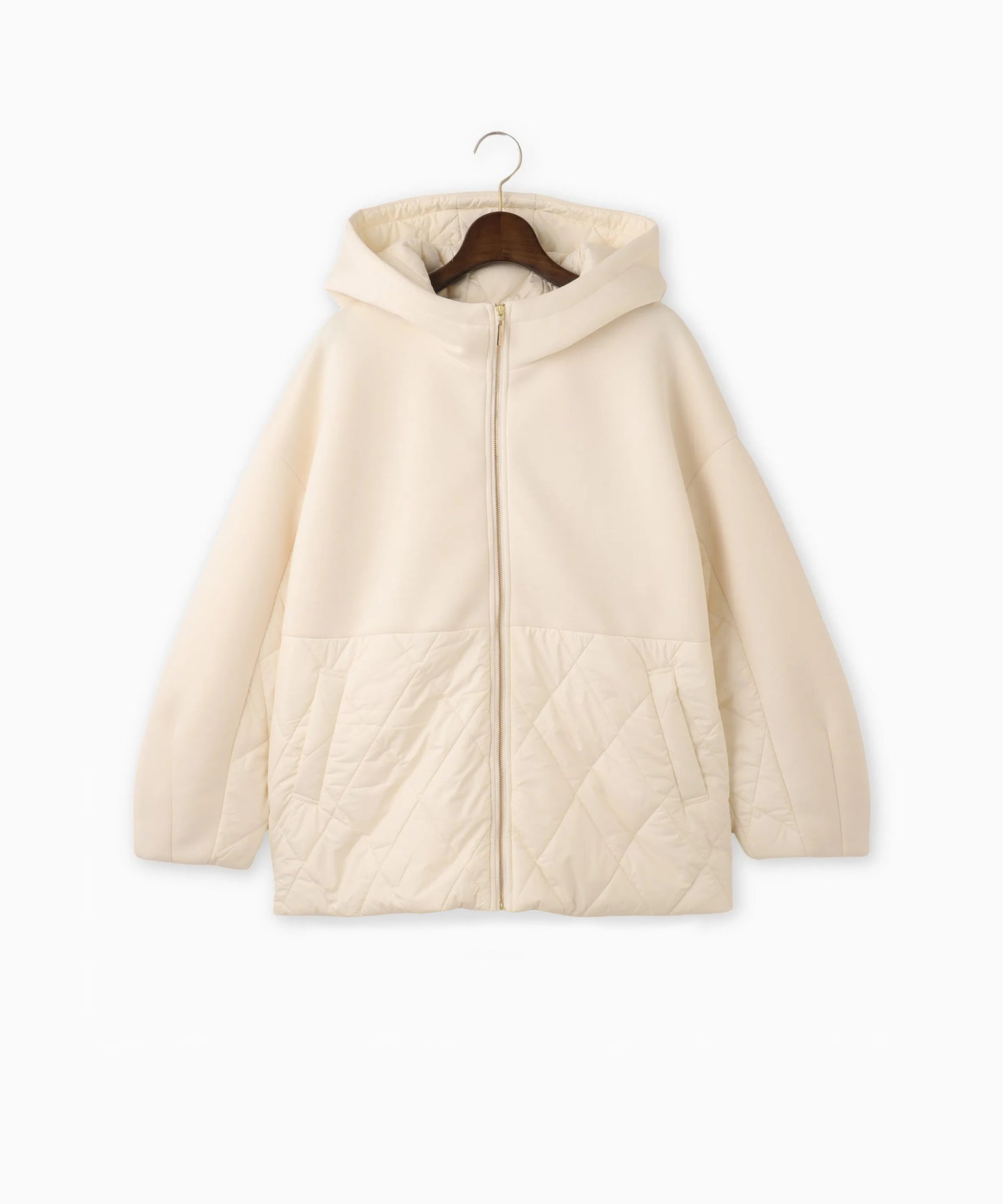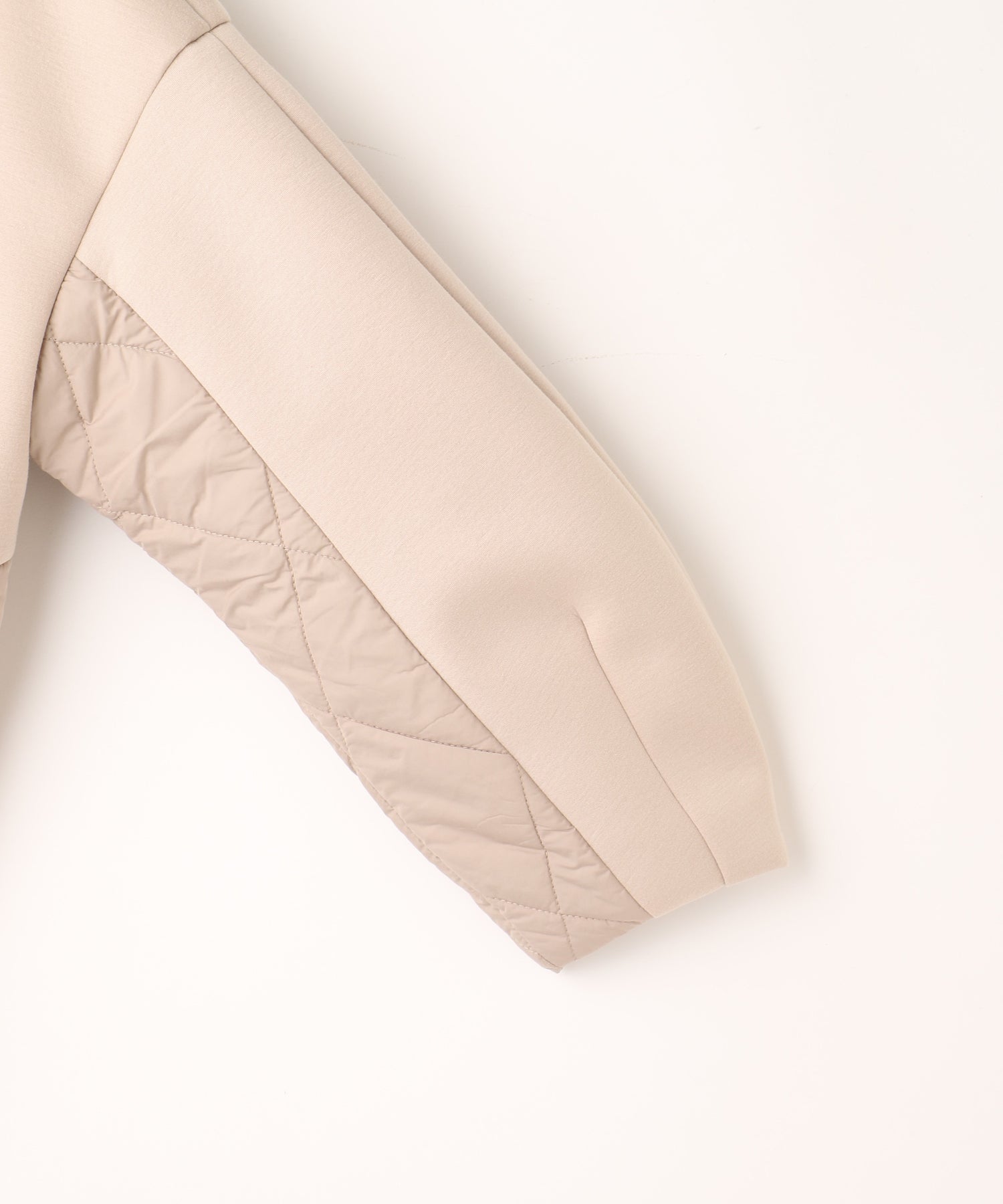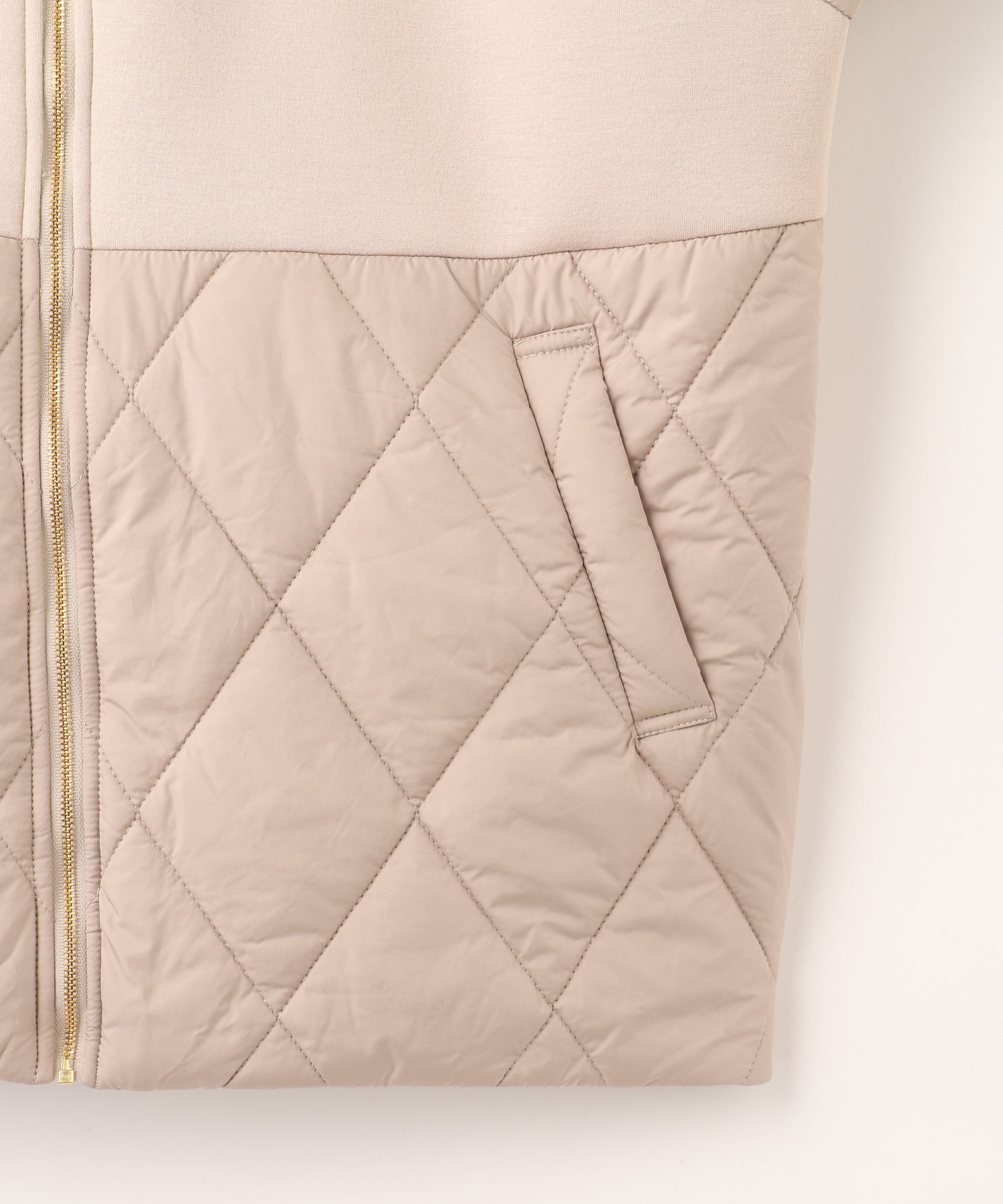 異素材の組み合わせが目を惹く、ボンディング素材と中綿入りキルティングをドッキングしたデザインアイテム。