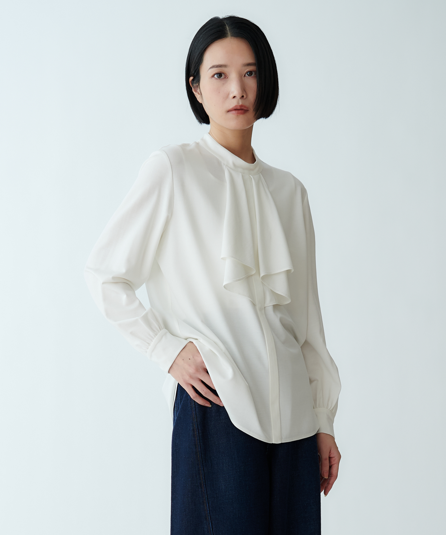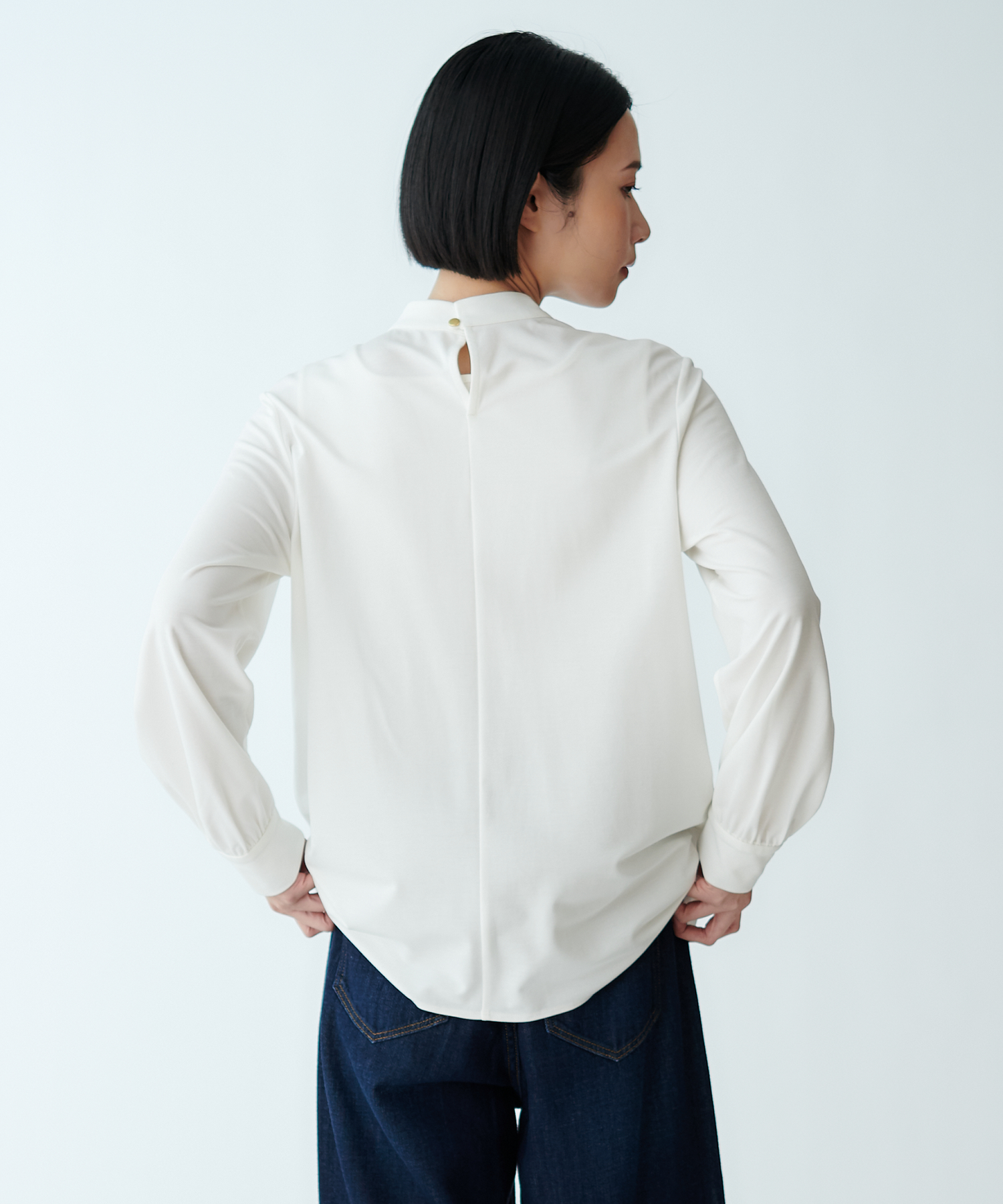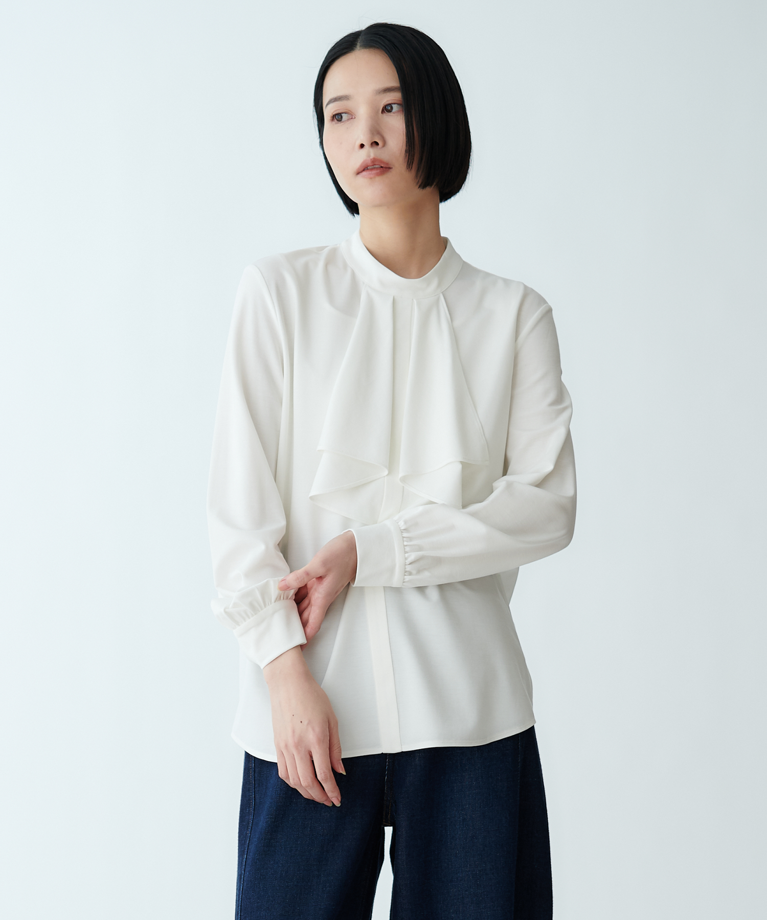 布帛のような上品さを感じさせる、なめらかで美しいドレープが魅力のポンチ素材を使用。