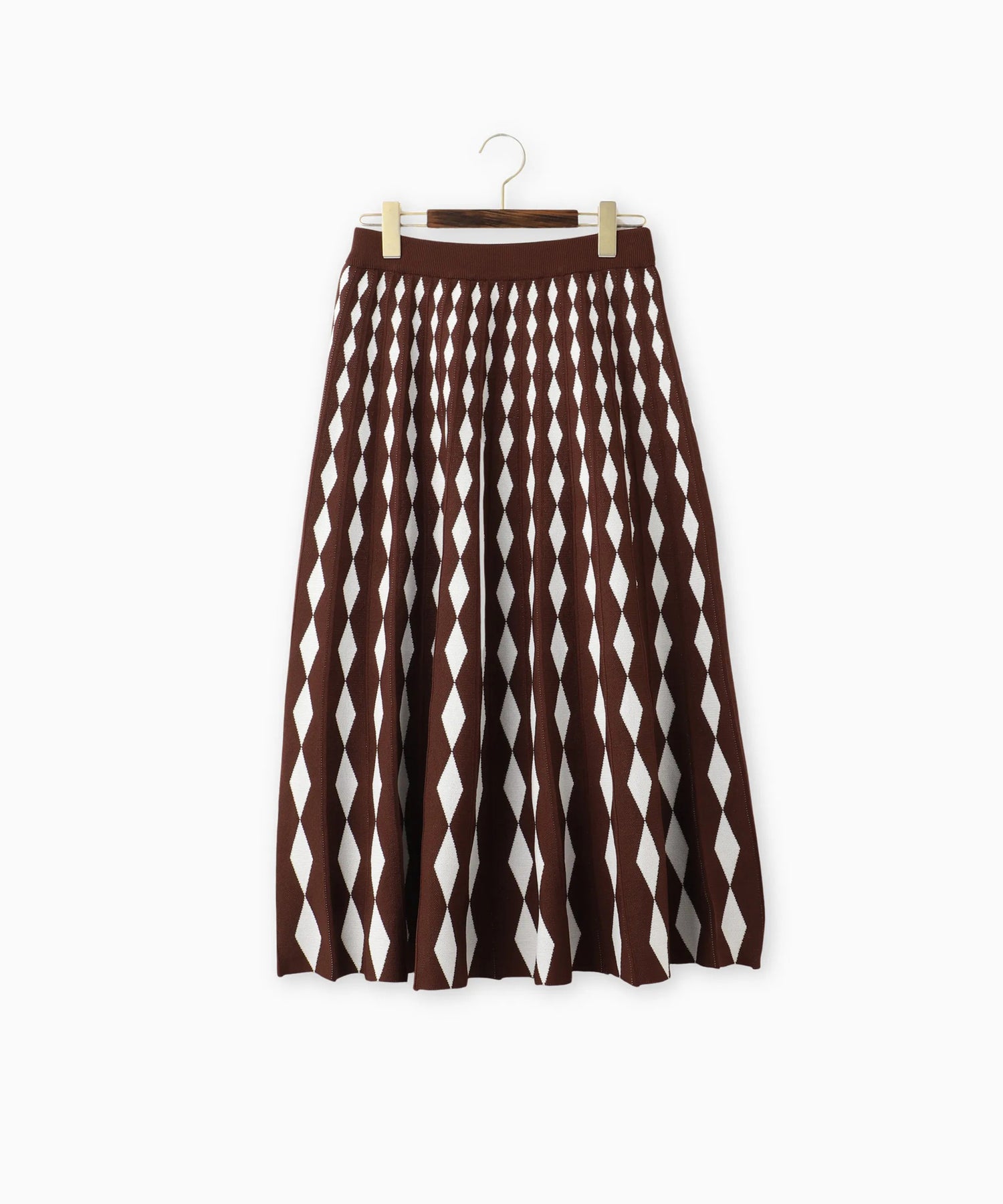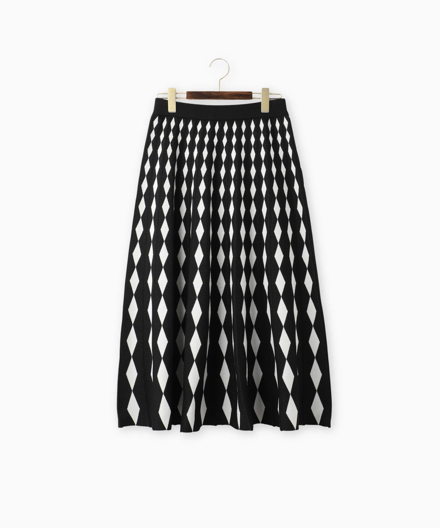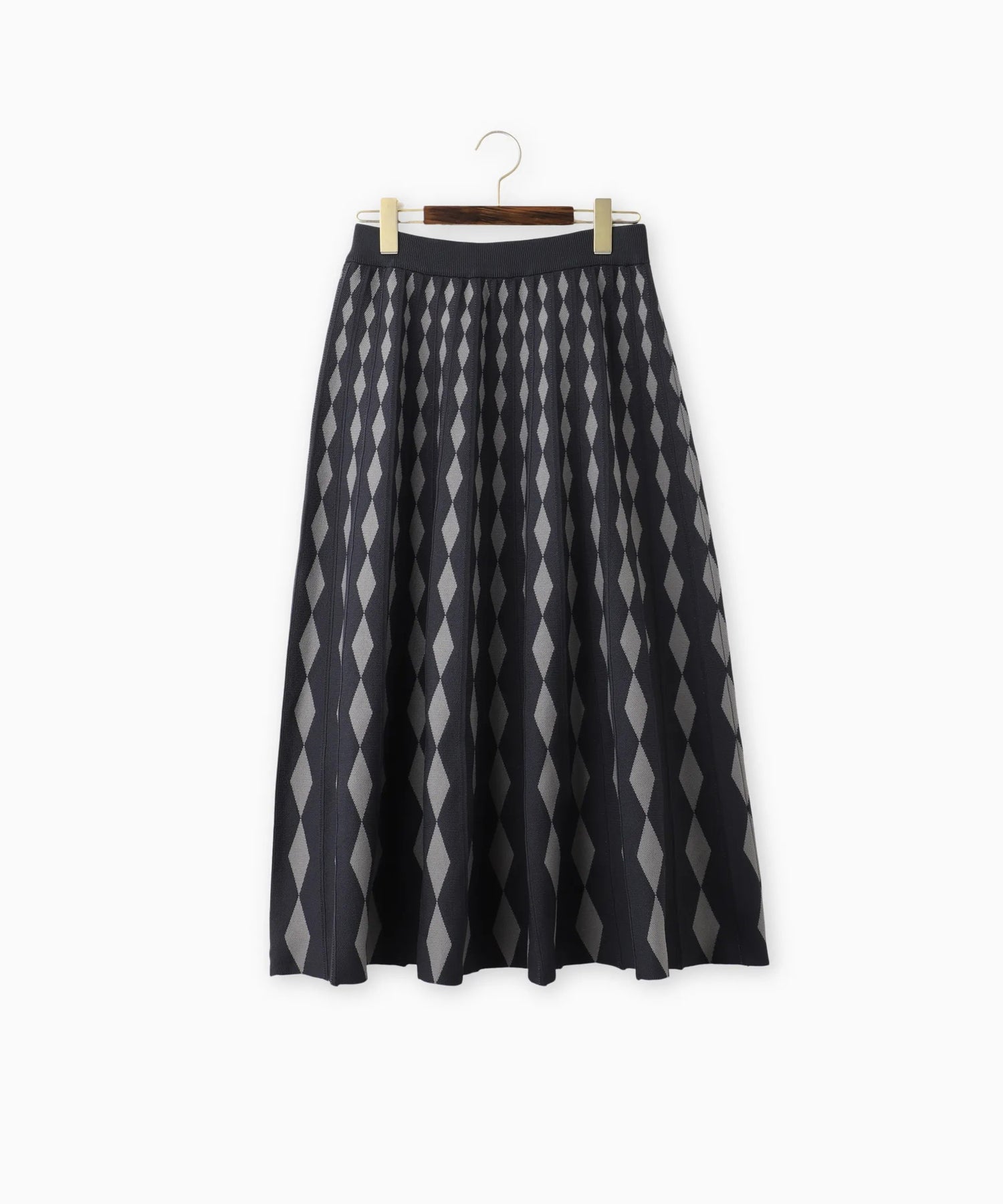 ダイヤ柄をグラデーションのように変化させたジャガード編みのニットスカート。