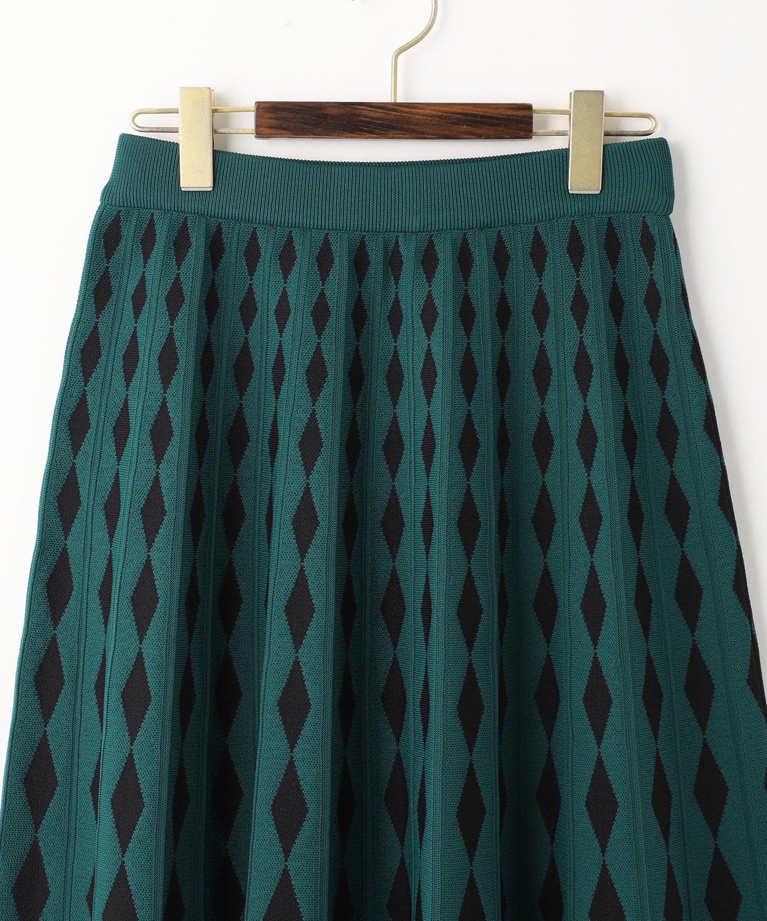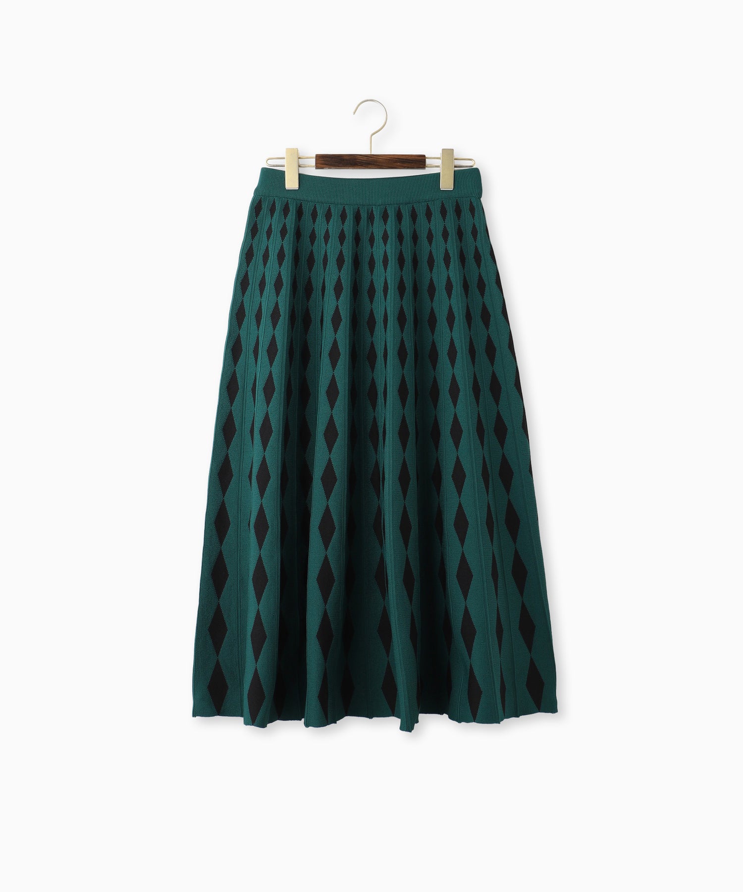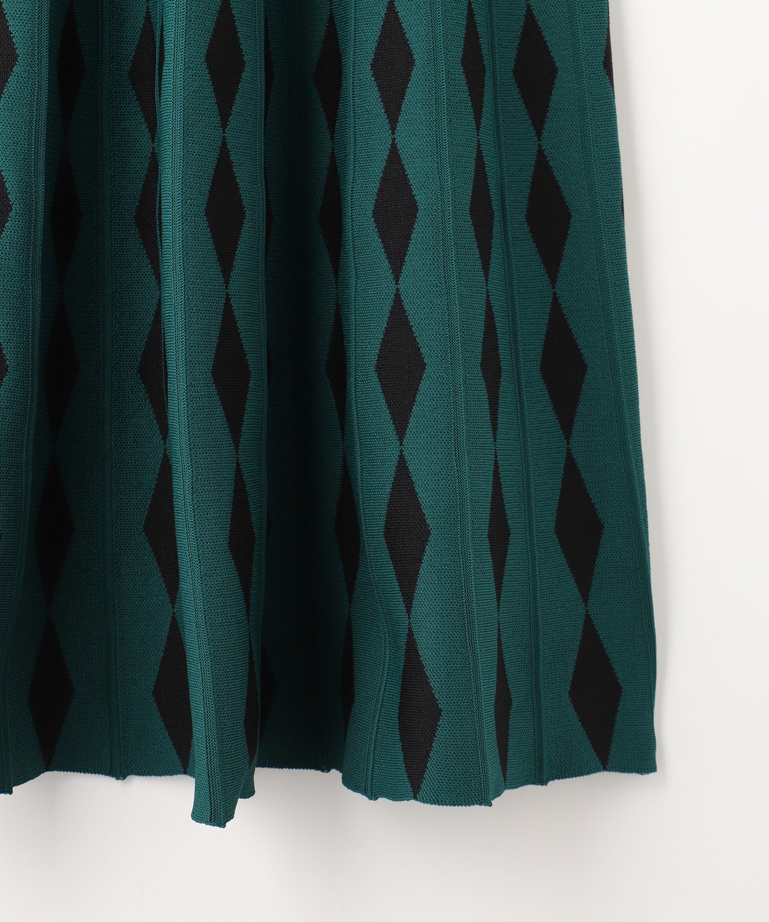 ダイヤ柄をグラデーションのように変化させたジャガード編みのニットスカート。